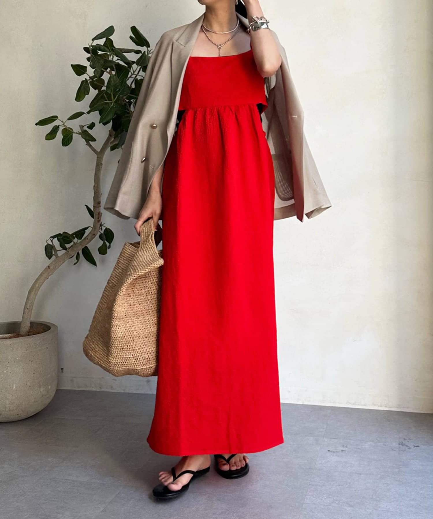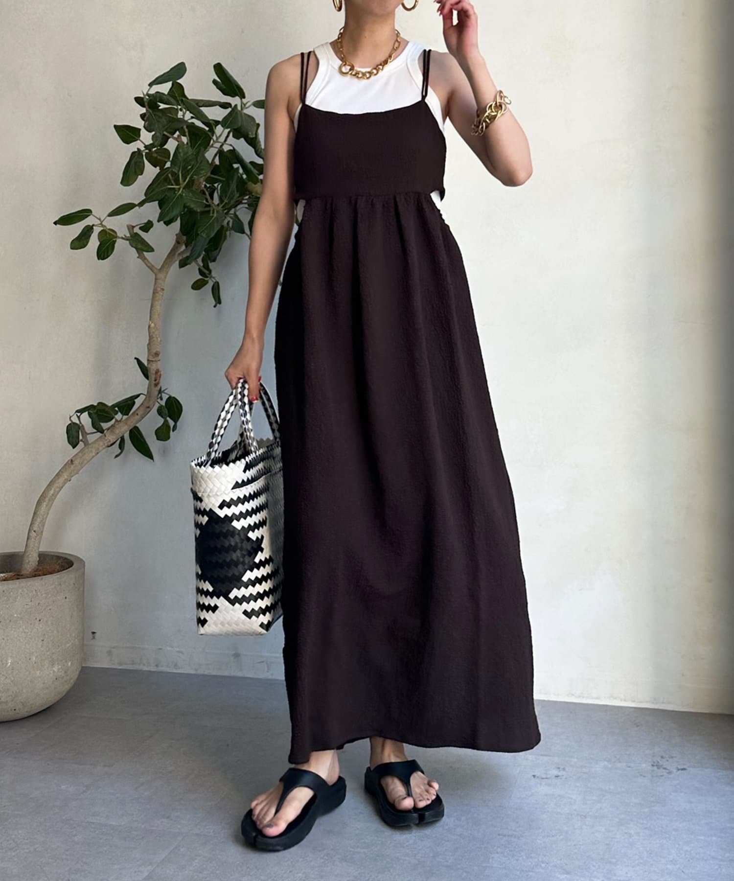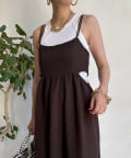 肩紐で長さ調節も可能なので、お好みの丈感で着用していただけますよ!