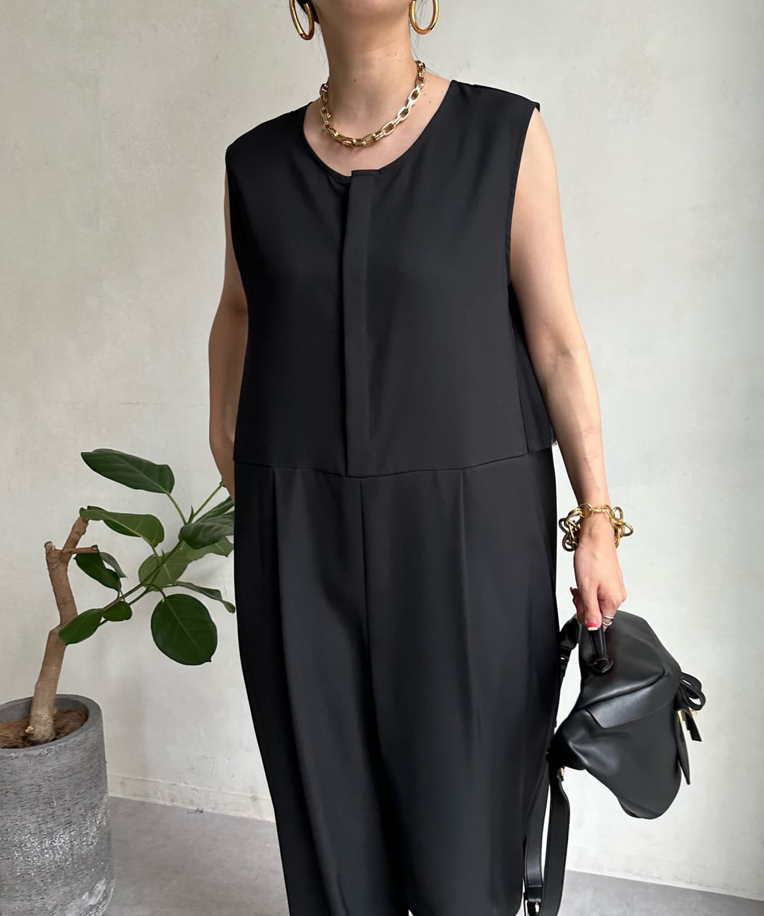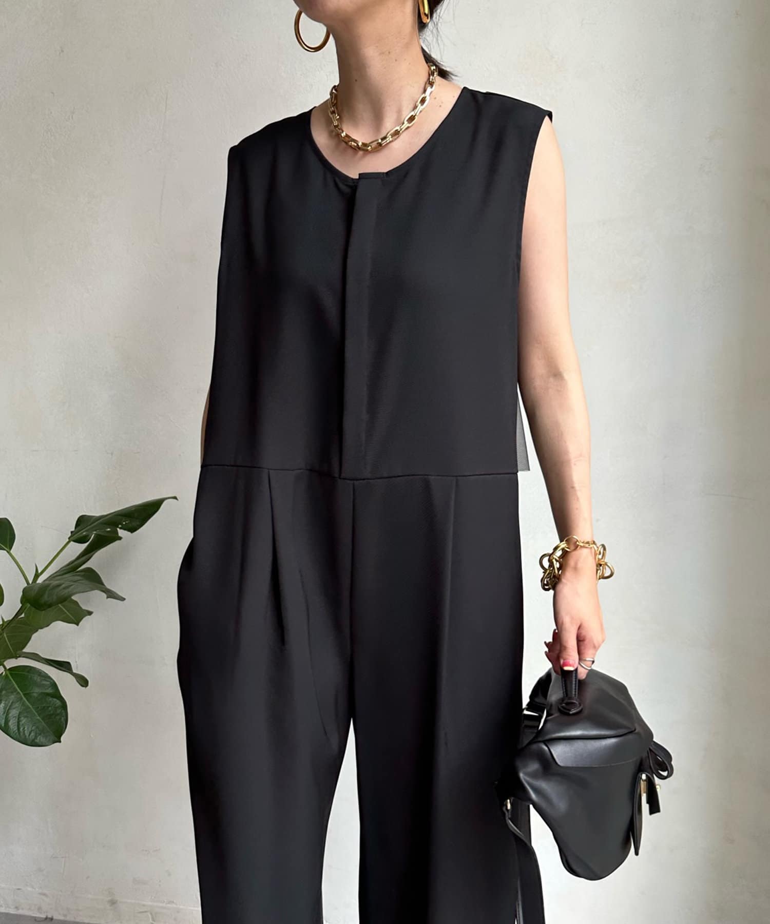 ゆったりとしたシルエットが特徴のオールインワン。