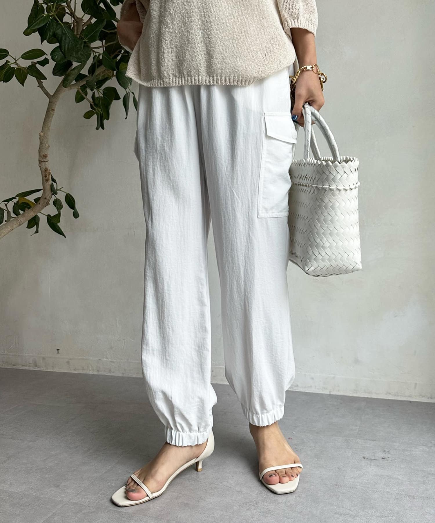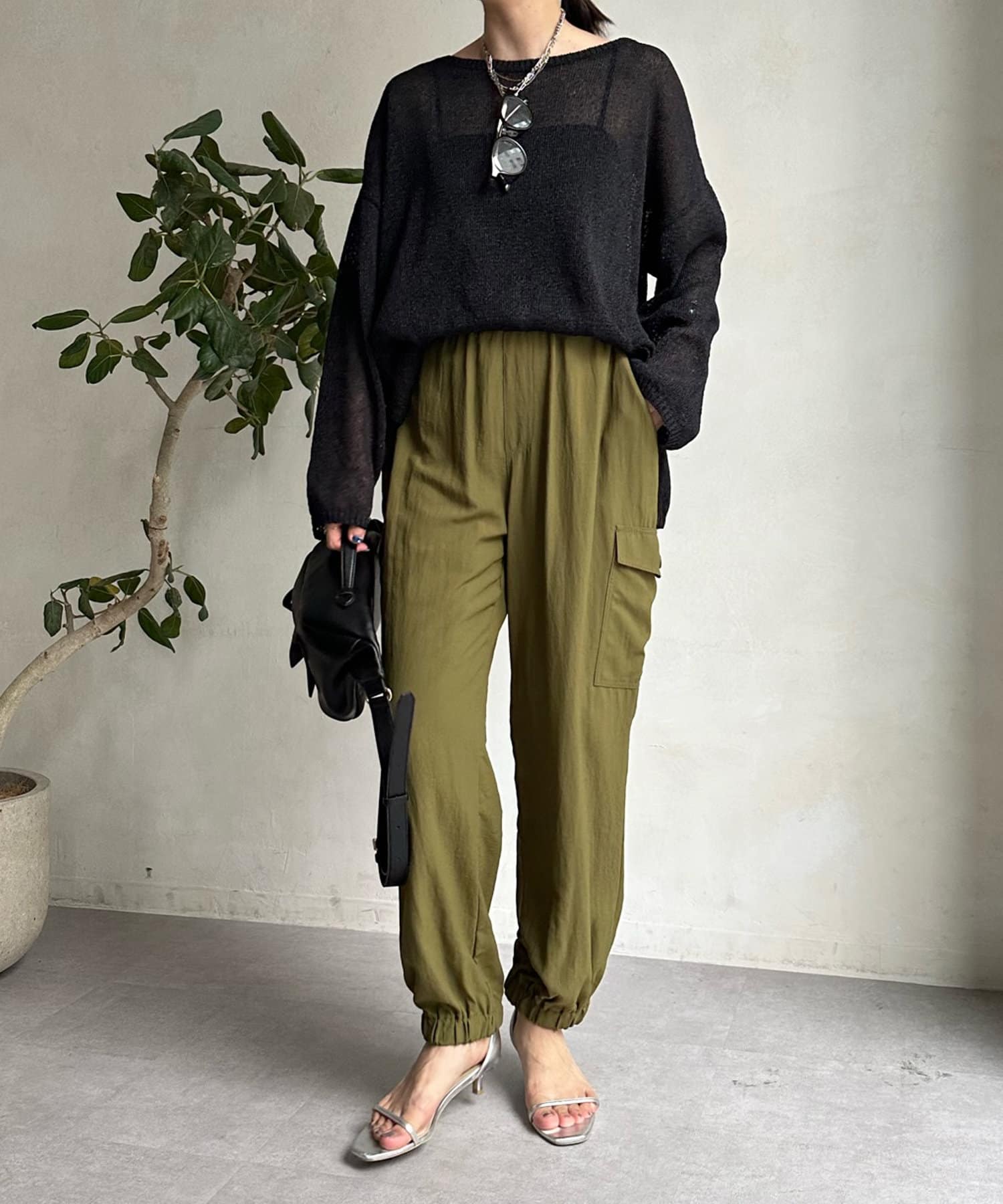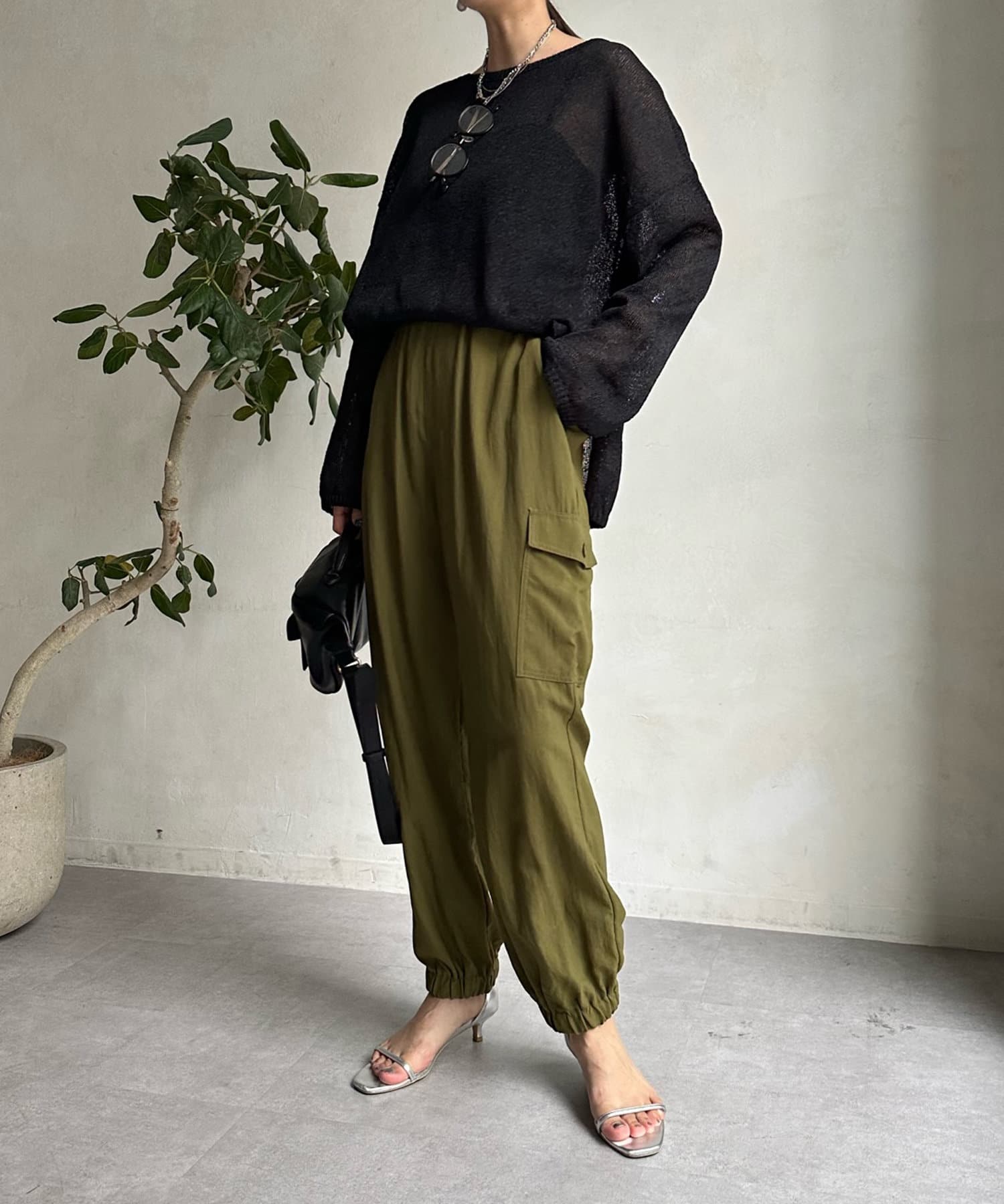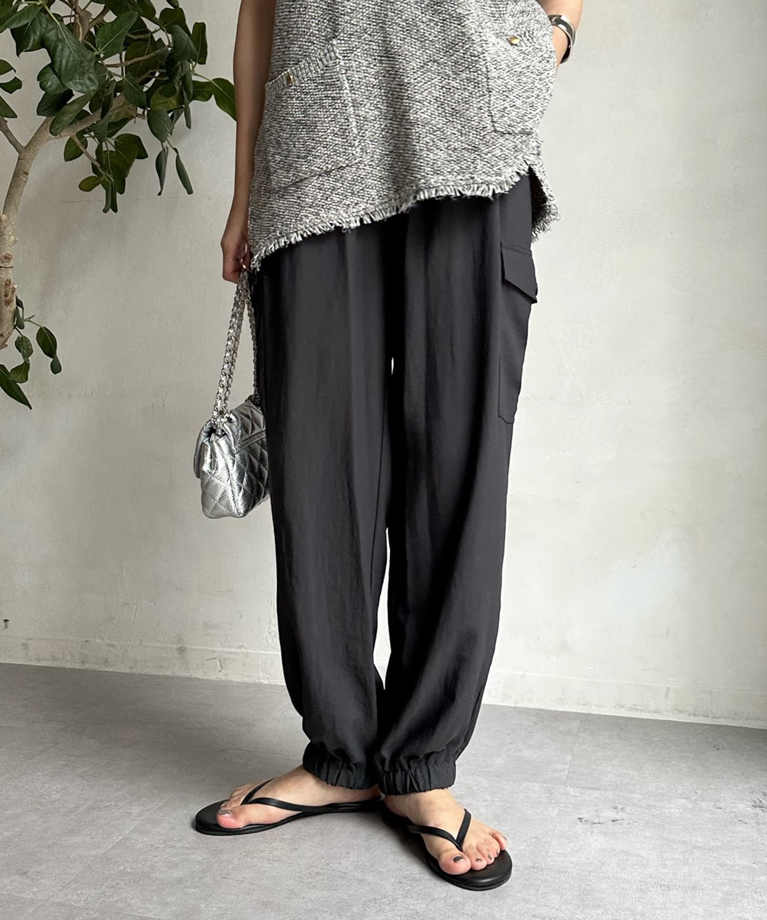 裾に向かってテーパード掛かったデザインは、足首をきゅっと細く見せ、脚のラインを綺麗に見せてくれます。