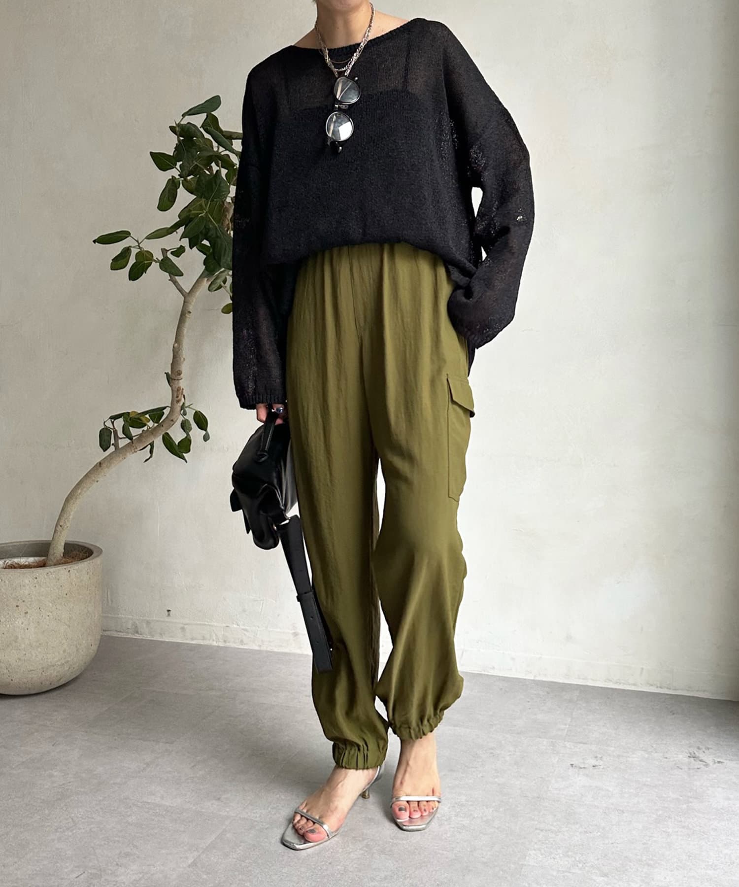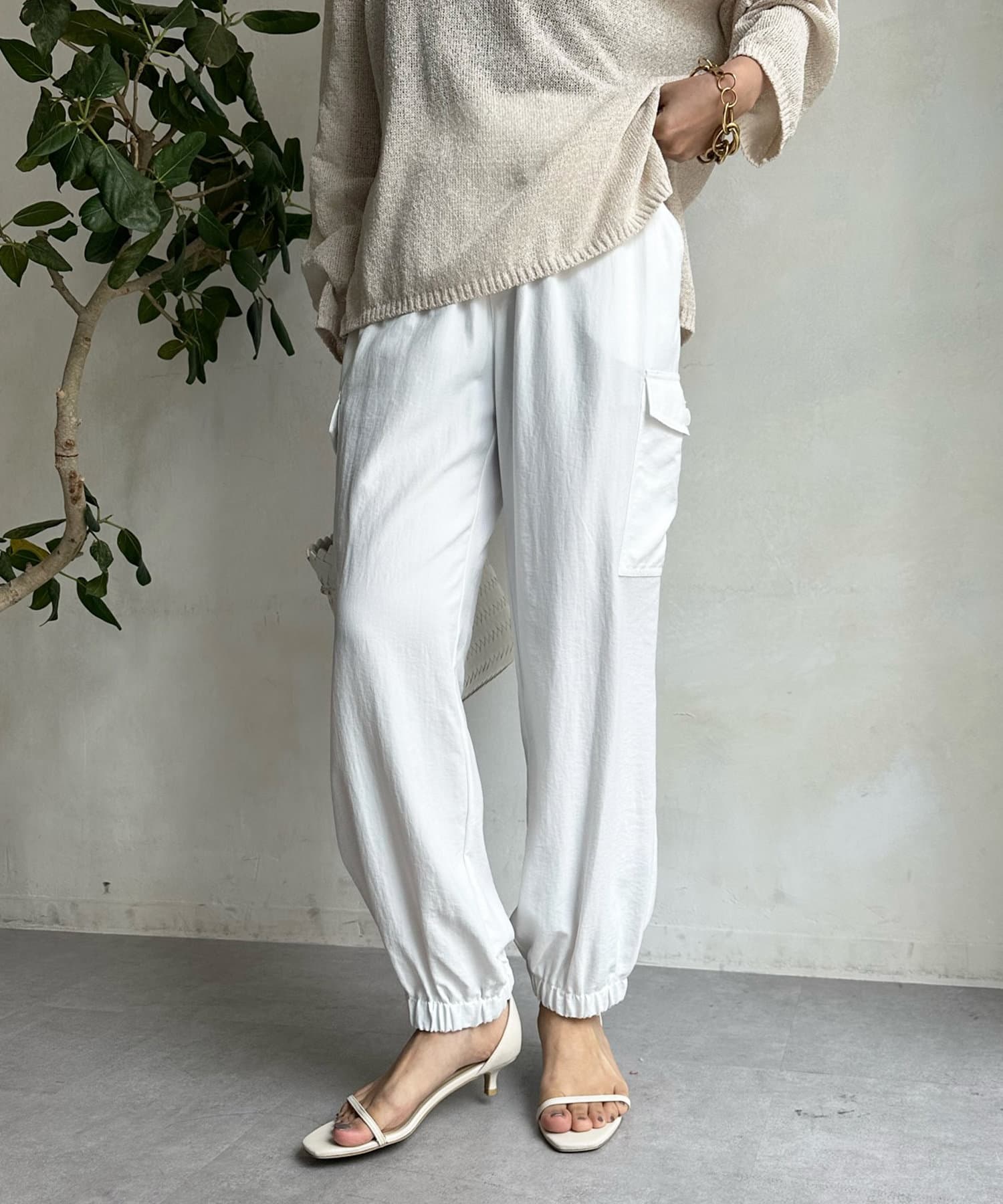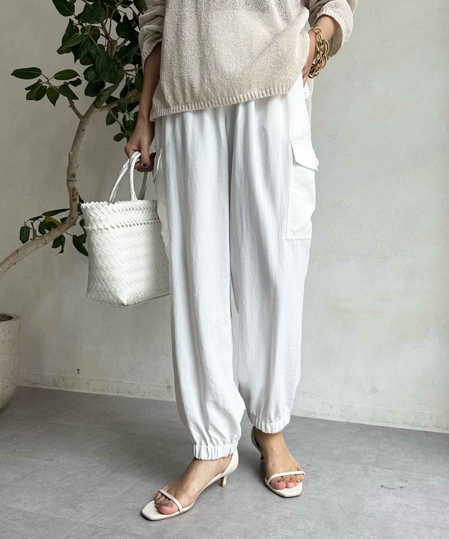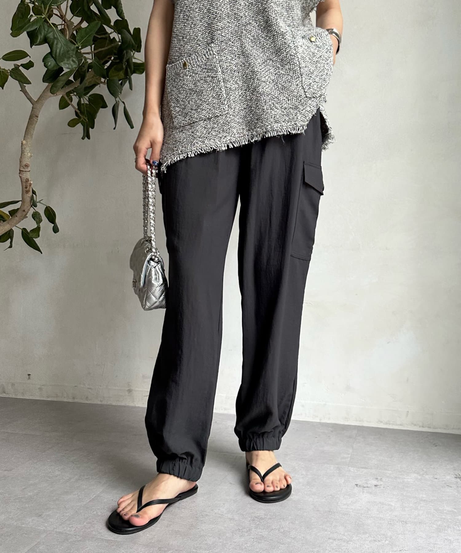 裾に向かってテーパード掛かったデザインは、足首をきゅっと細く見せ、脚のラインを綺麗に見せてくれます。