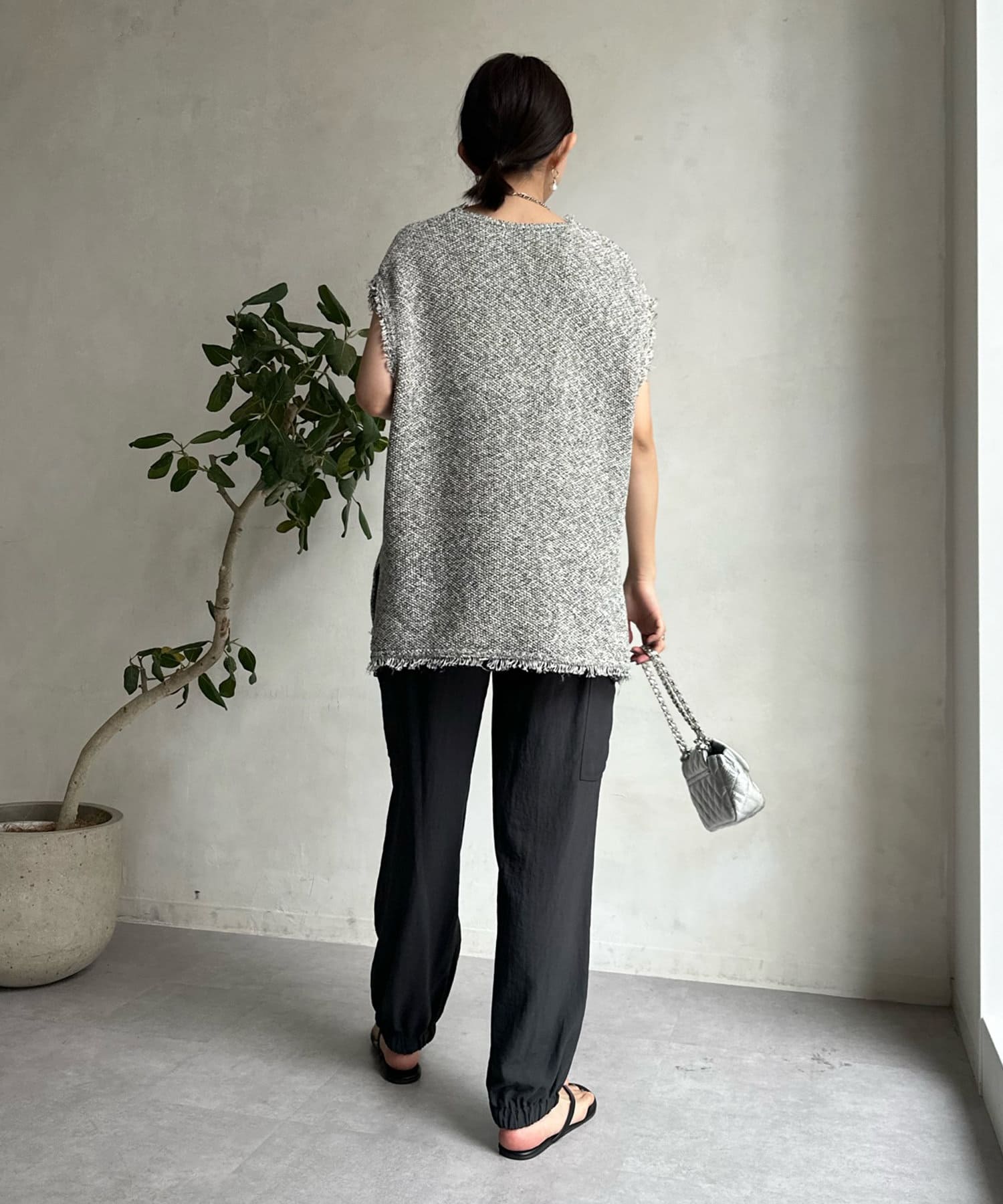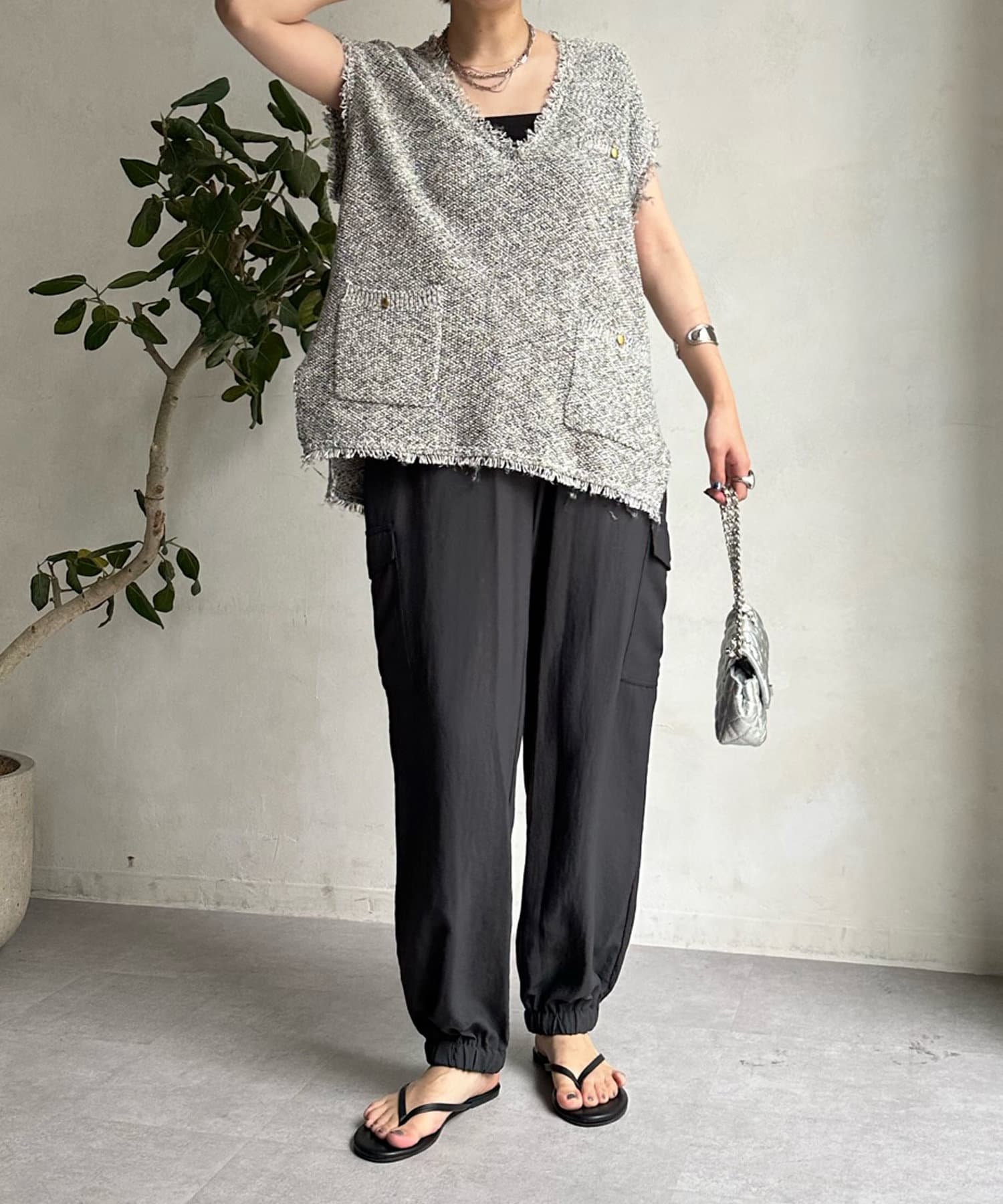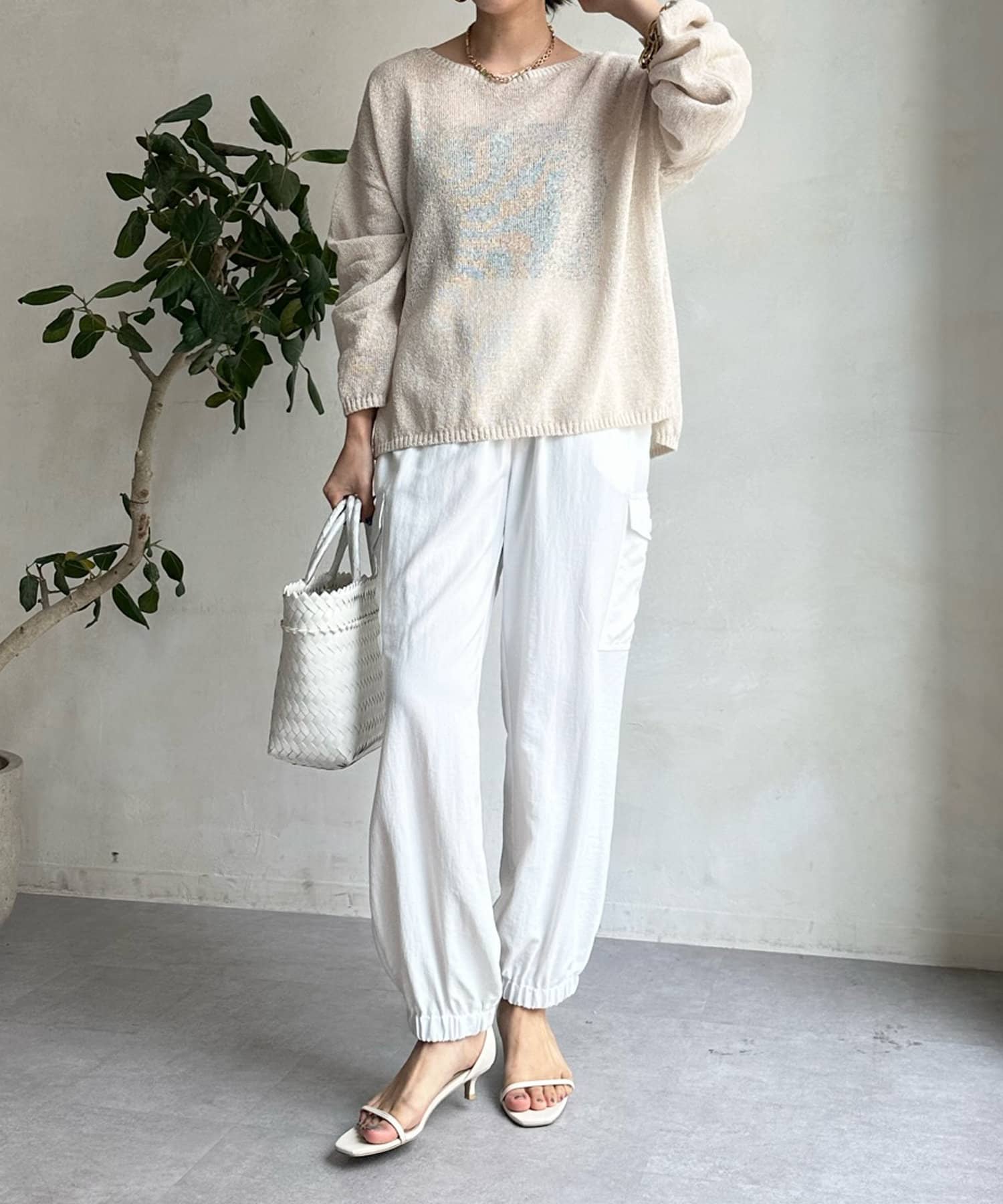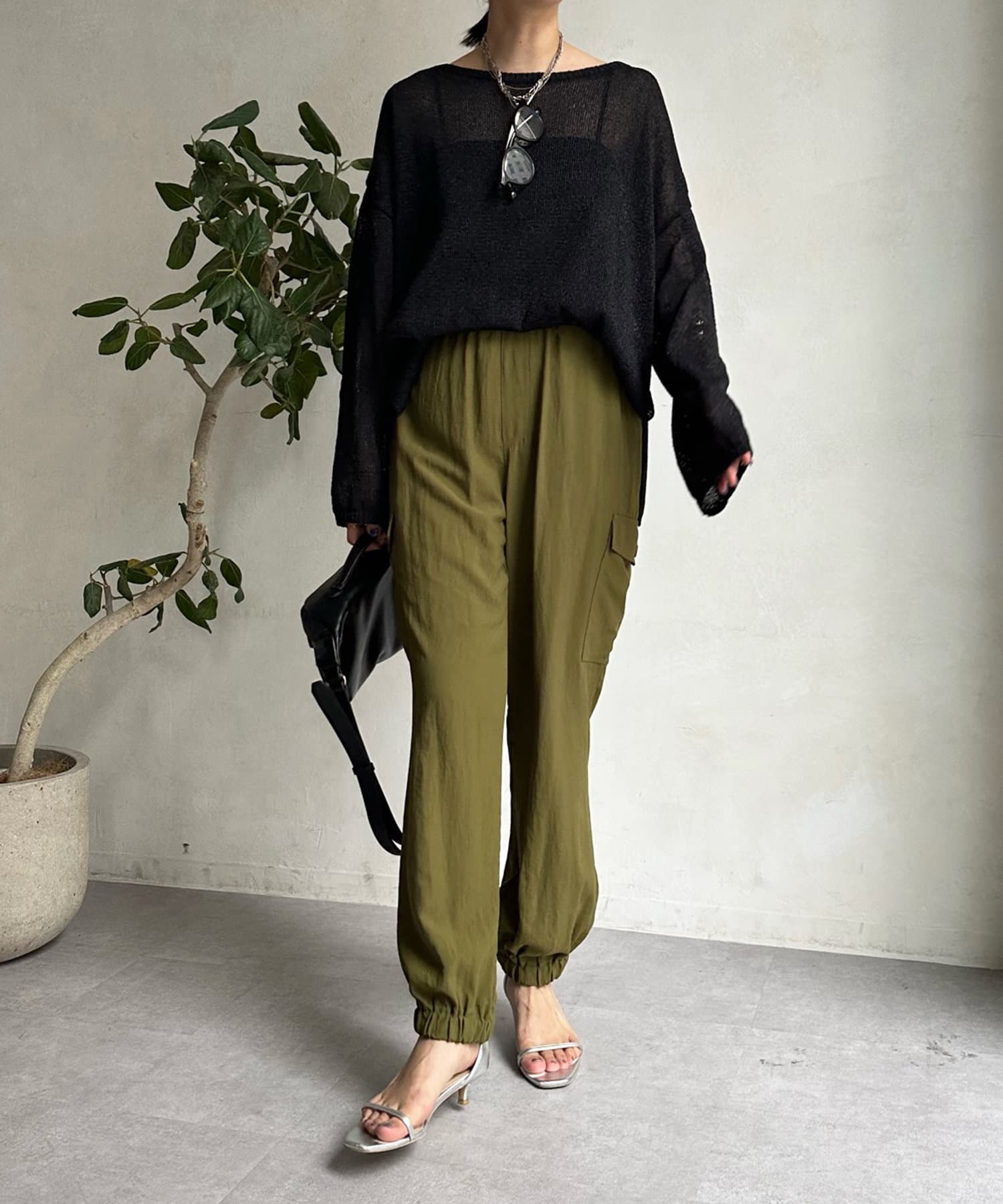 裾に向かってテーパード掛かったデザインは、足首をきゅっと細く見せ、脚のラインを綺麗に見せてくれます。