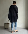裾の折り返し風のデザインは前後で高さを少し違えることで