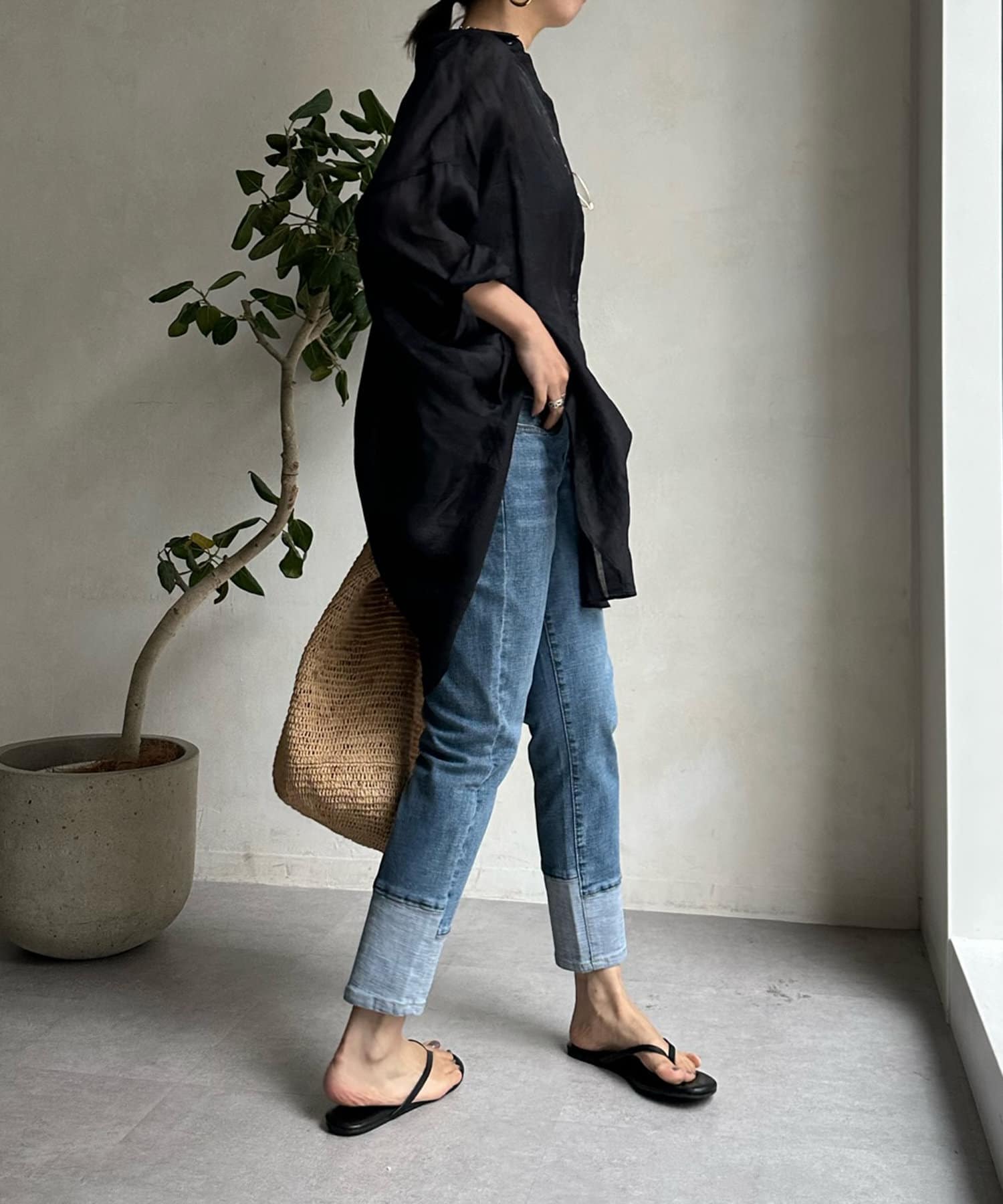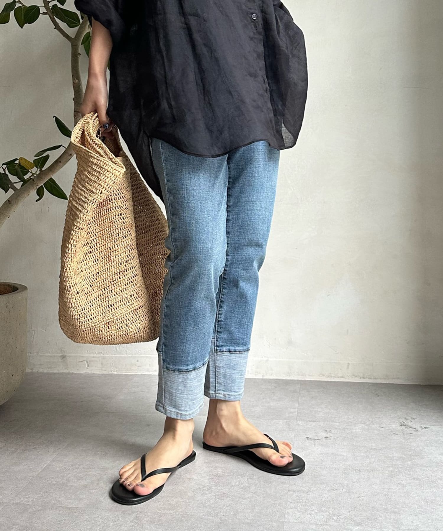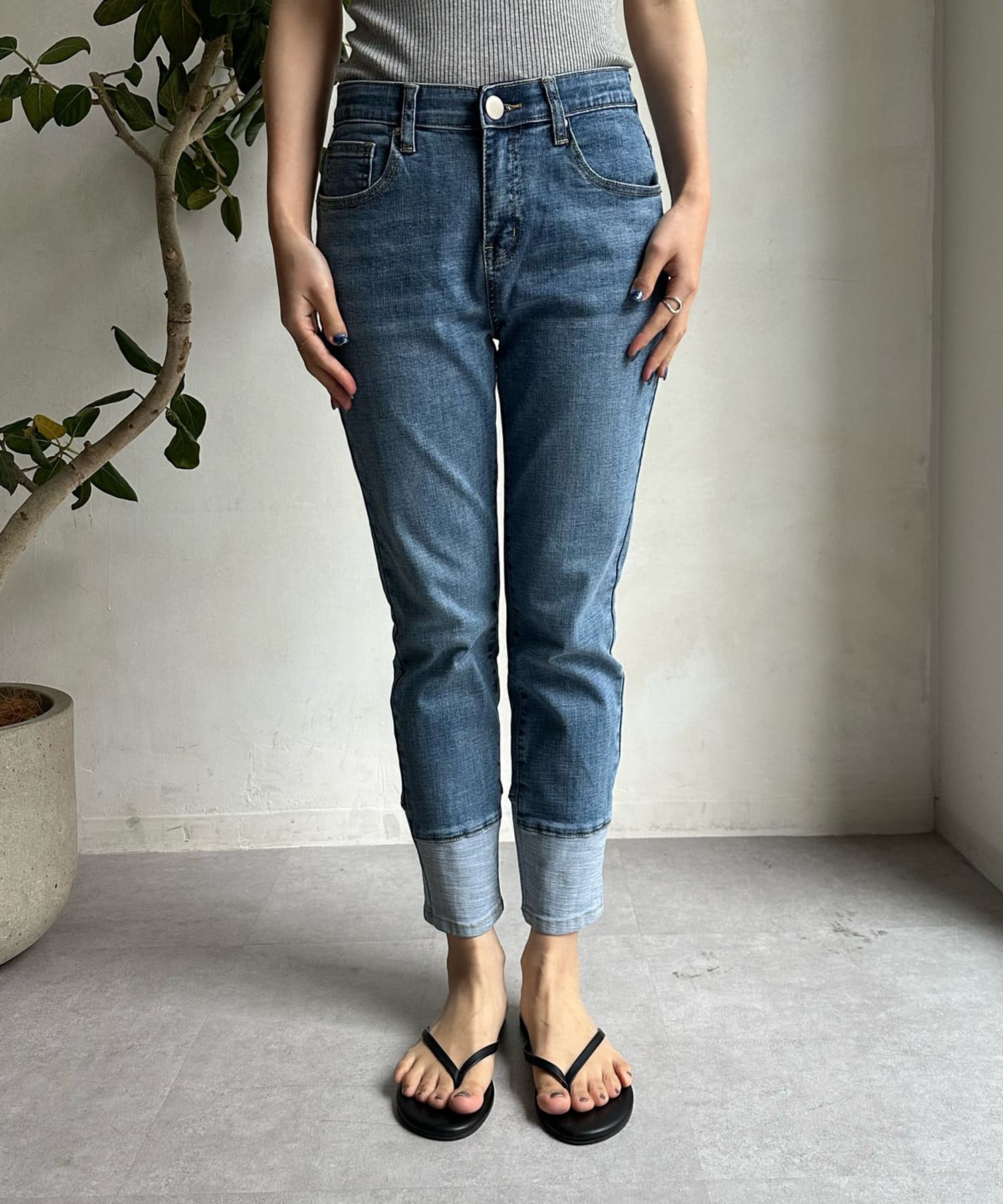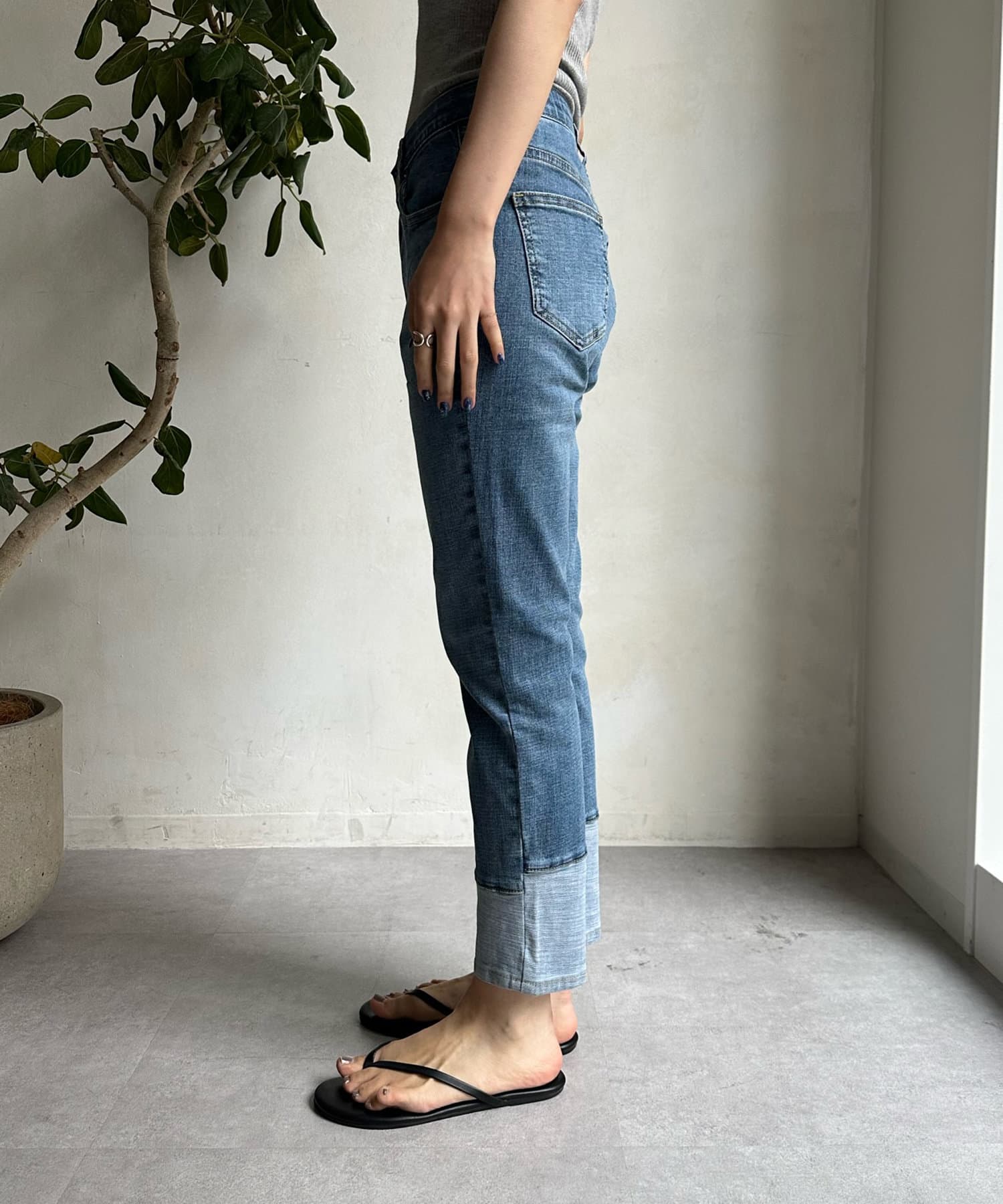 【INDIMARK】【WEB限定】折り返し風デザインボーイフレンドデニム