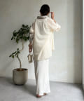 切り替えた素材感や、サイドのスリット、シルバーのボタンなどディティールにもこだわった1着です。