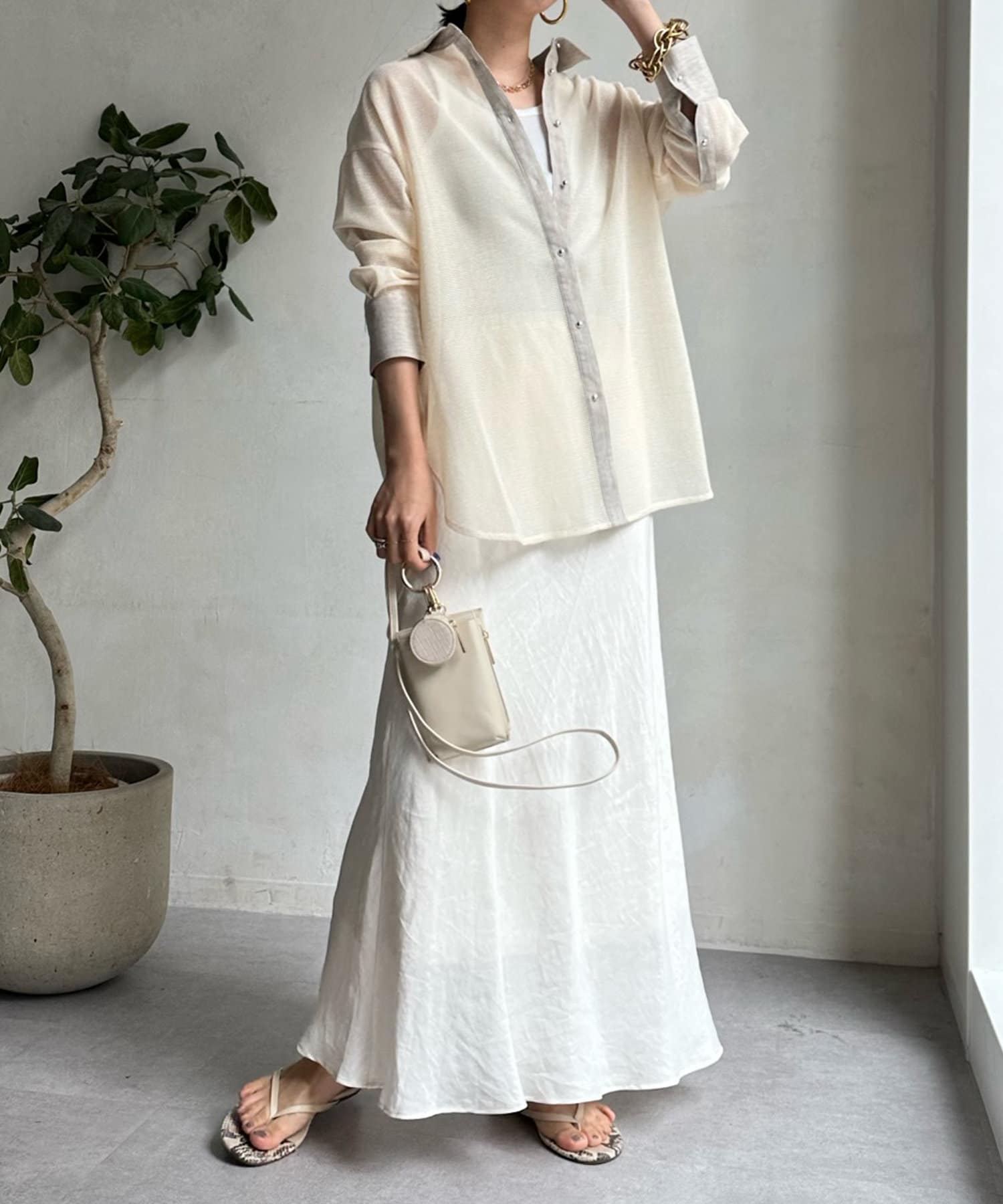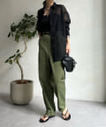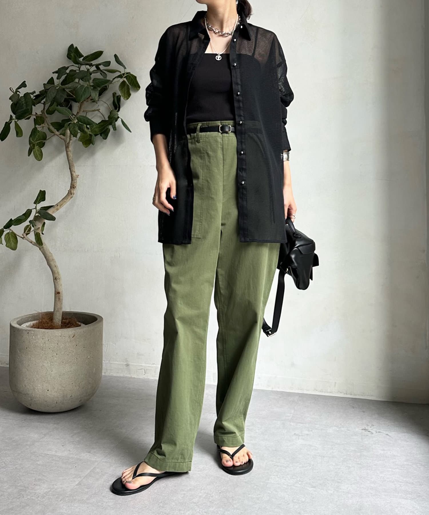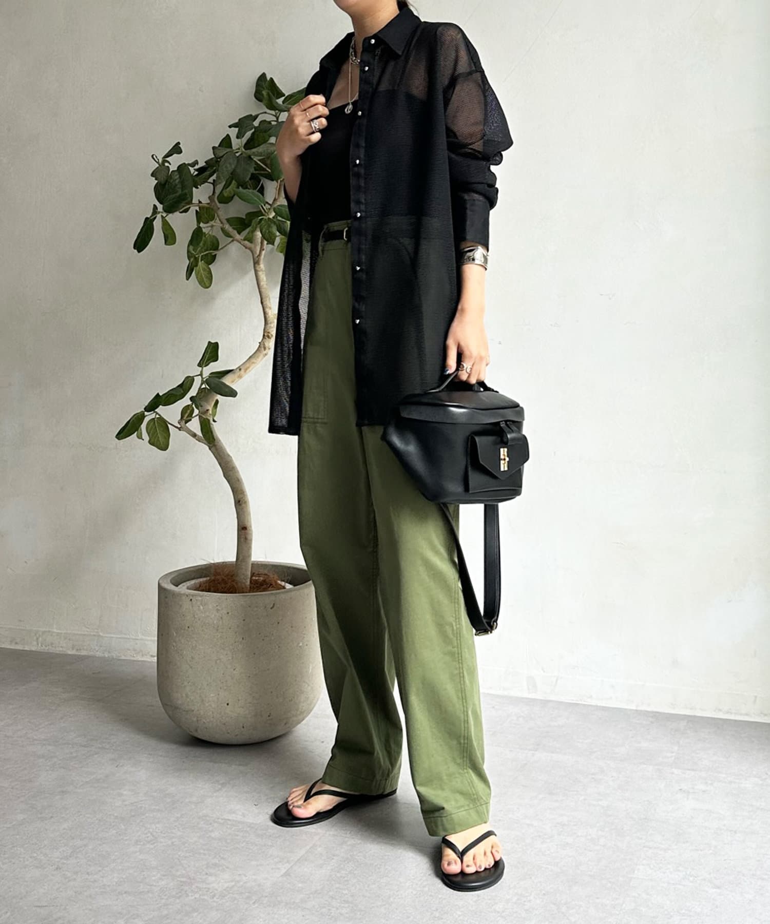 カラーボトムや柄物とも相性抜群。スタイリングにプラスするだけで、トレンド感がぐっとアップしますよ!