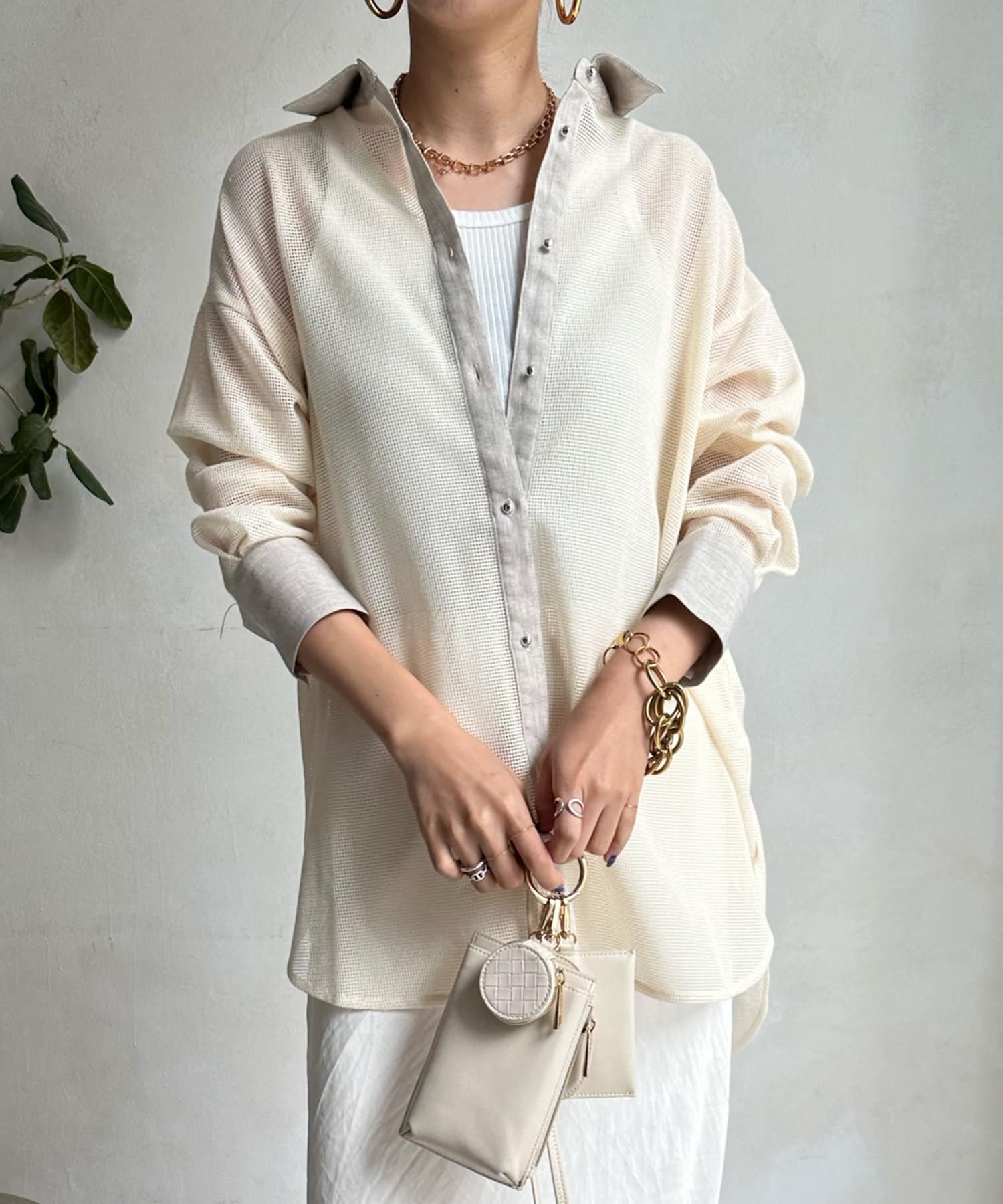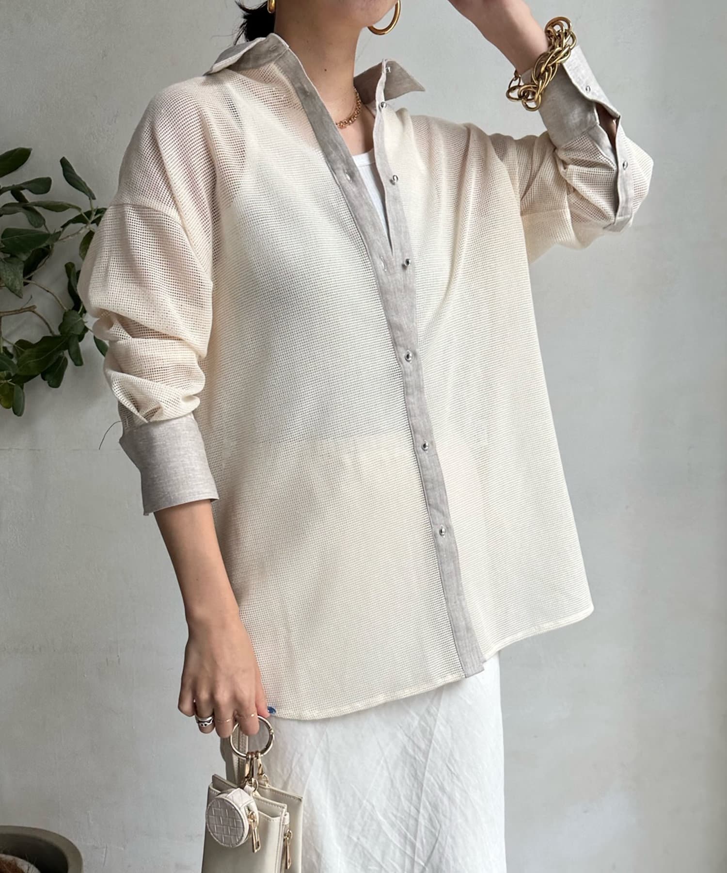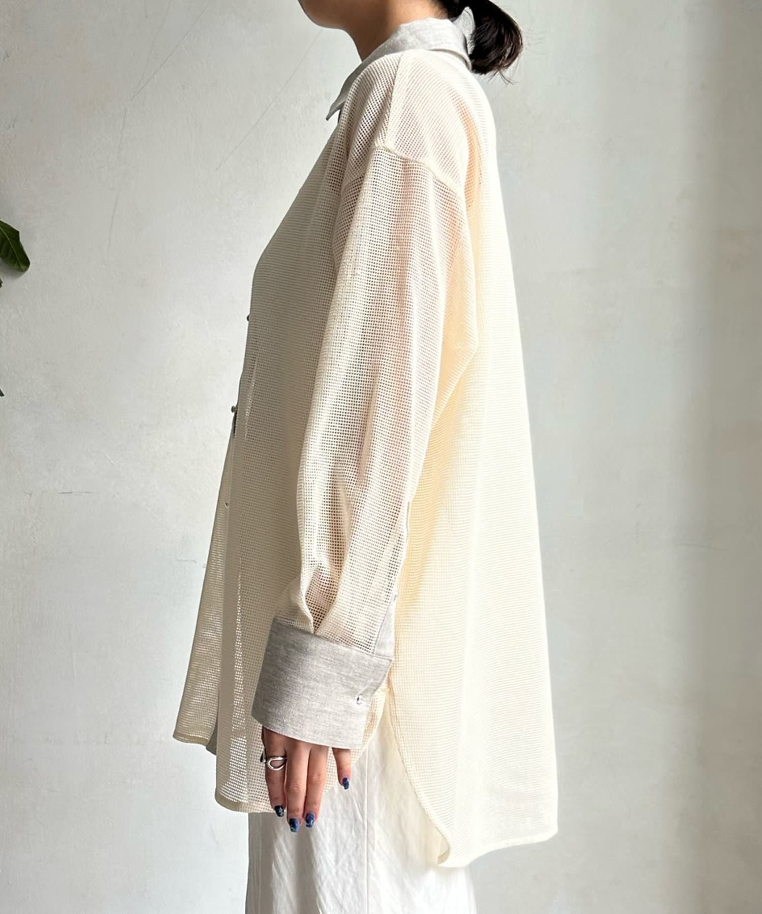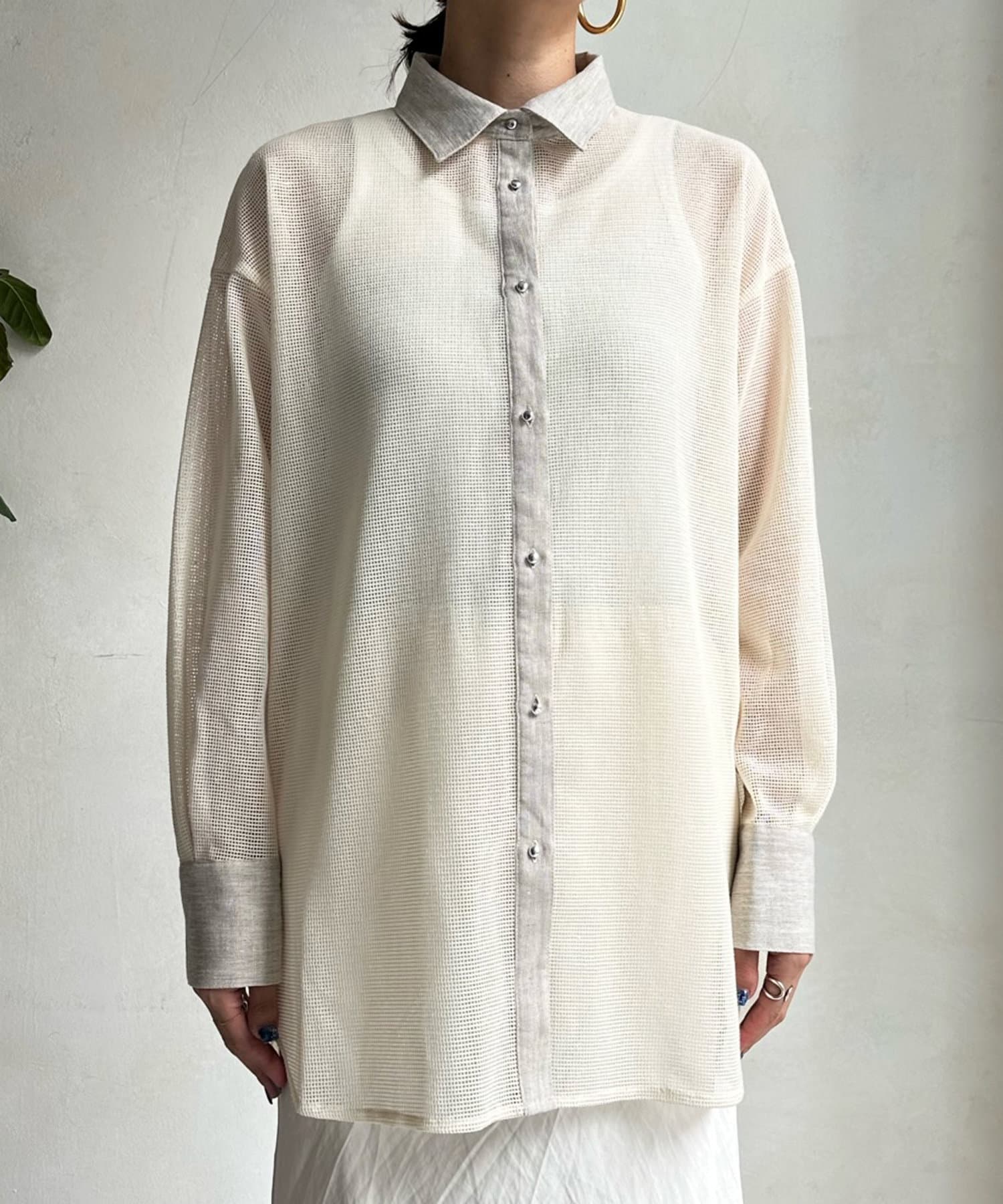 ゆったりと余裕感のあるサイジングでスタイリングに抜け感を出してくれるメッシュシャツ。