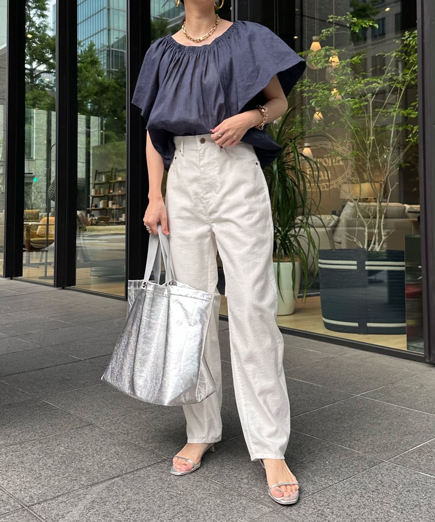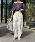 リネンとコットンの素材感が真夏も快適で涼しげな印象に仕上げます。