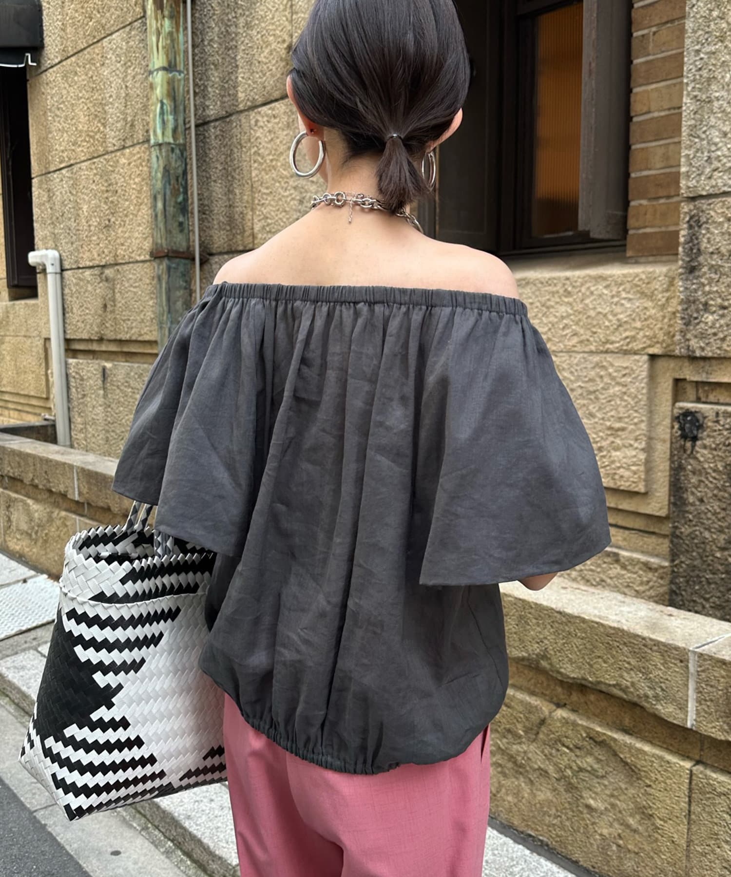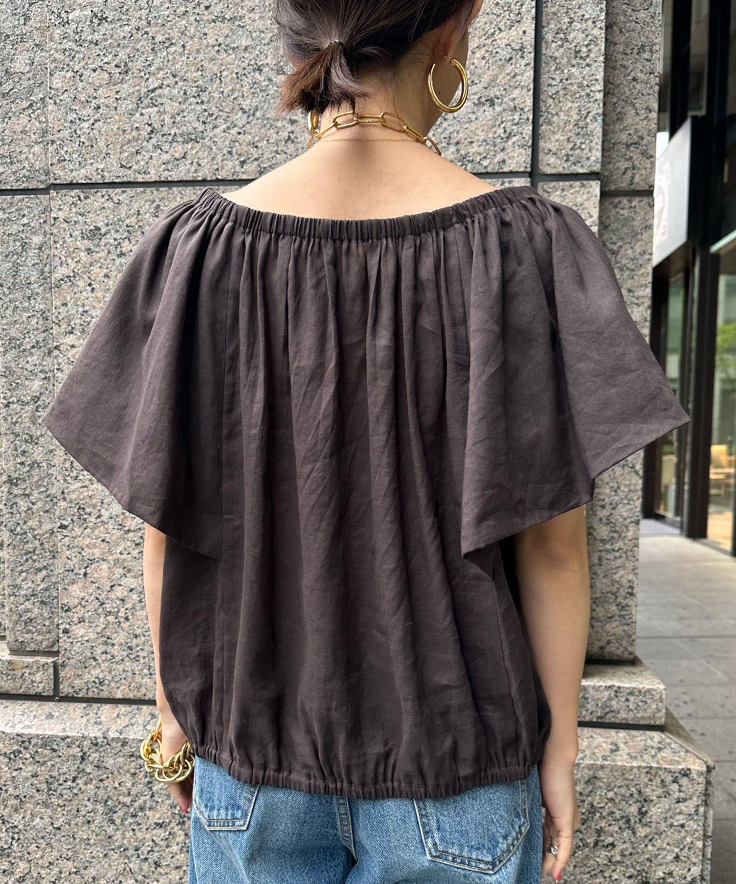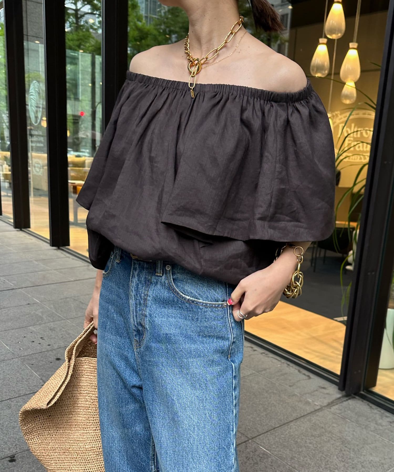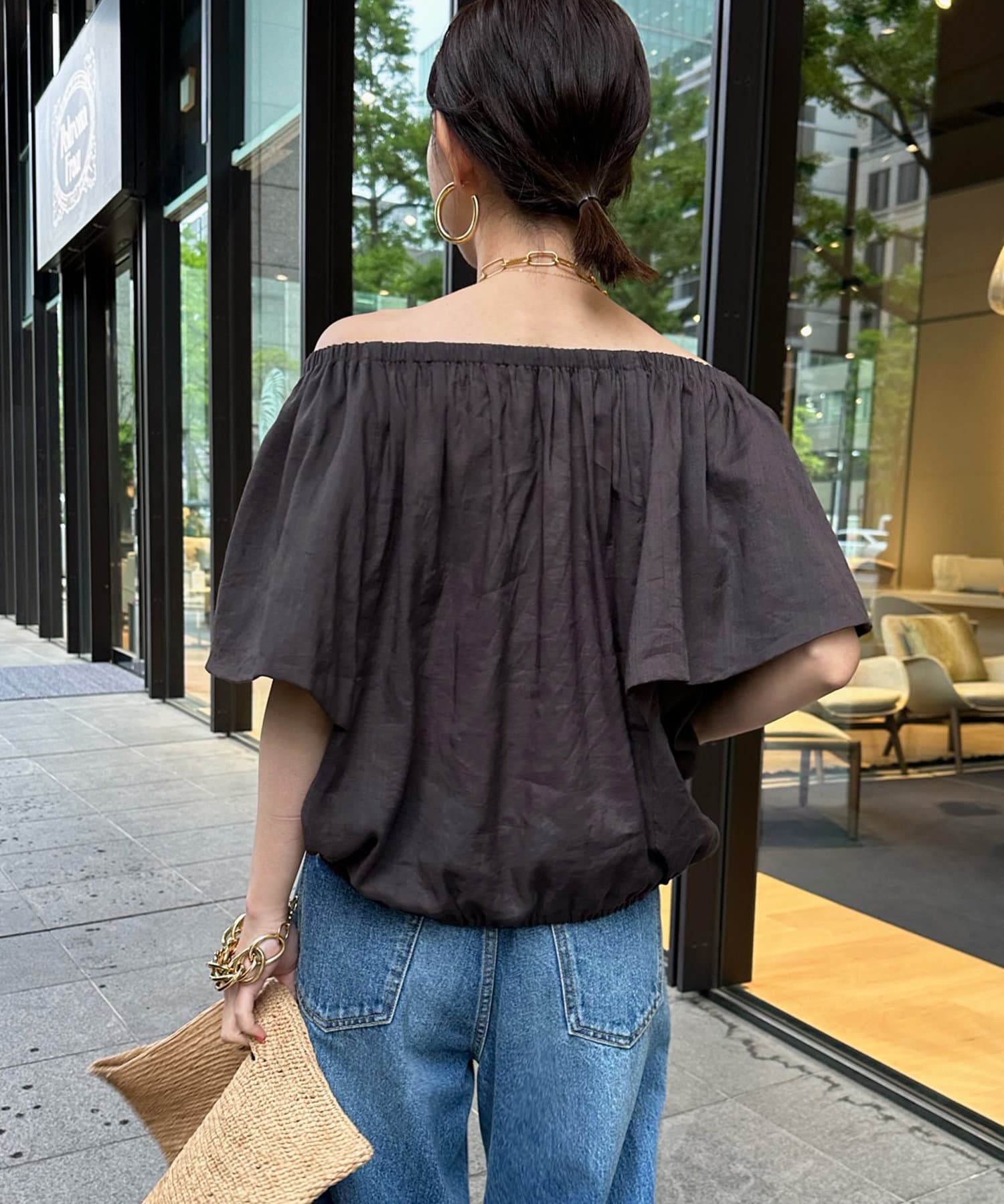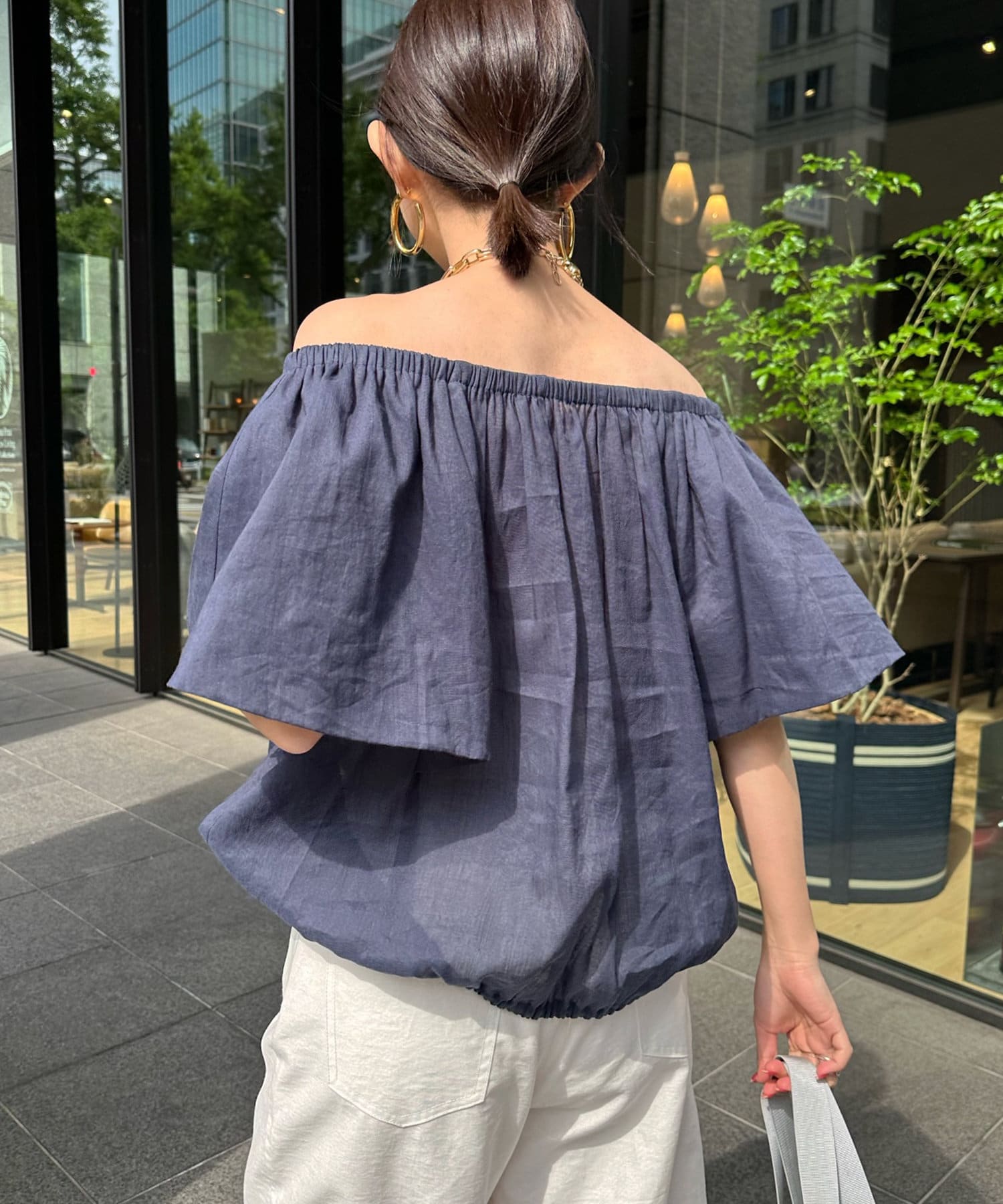 • DOUDOU(ドゥドゥ) リネンフリルオフショルブラウス