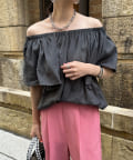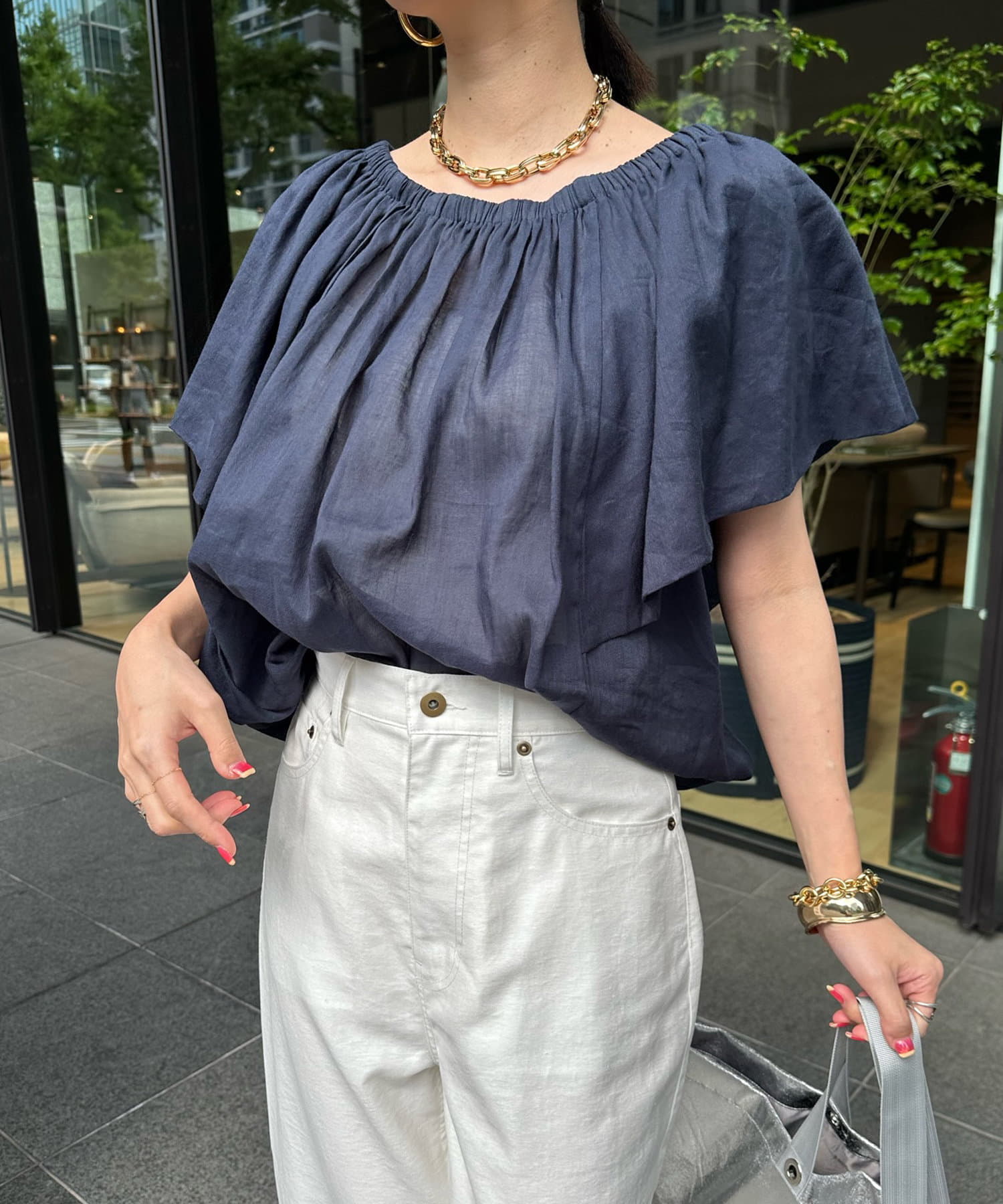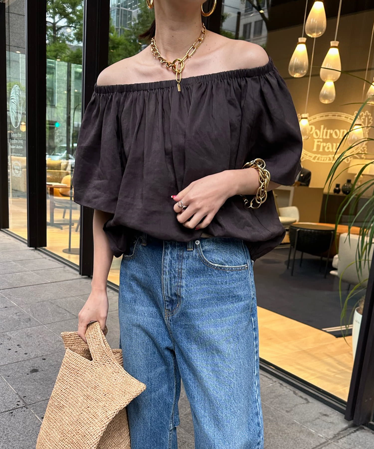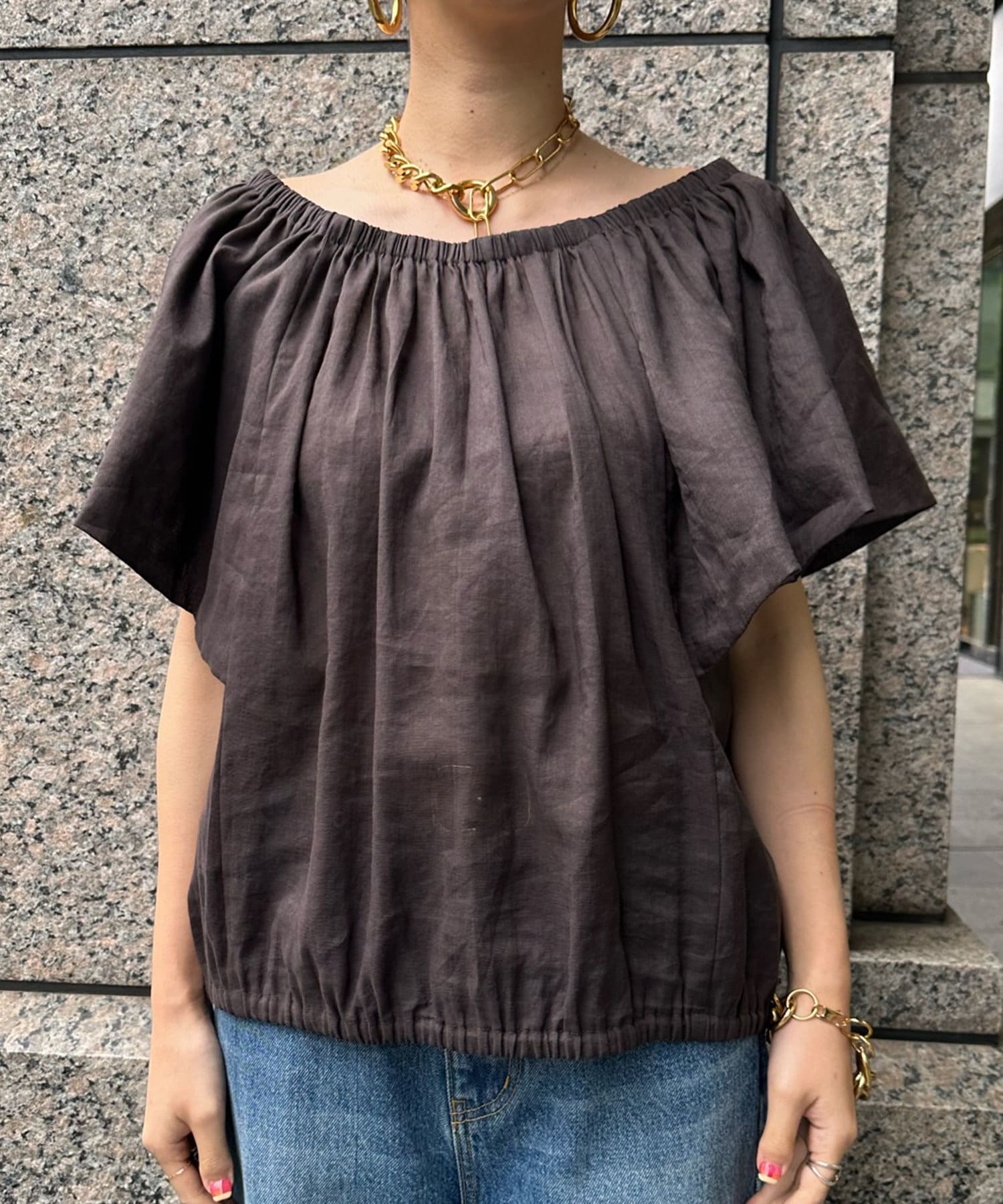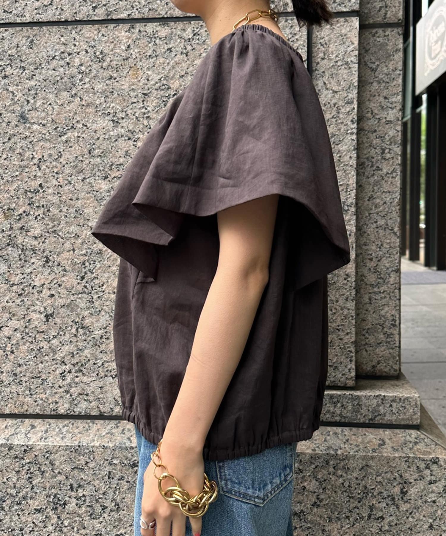 • DOUDOU(ドゥドゥ) リネンフリルオフショルブラウス