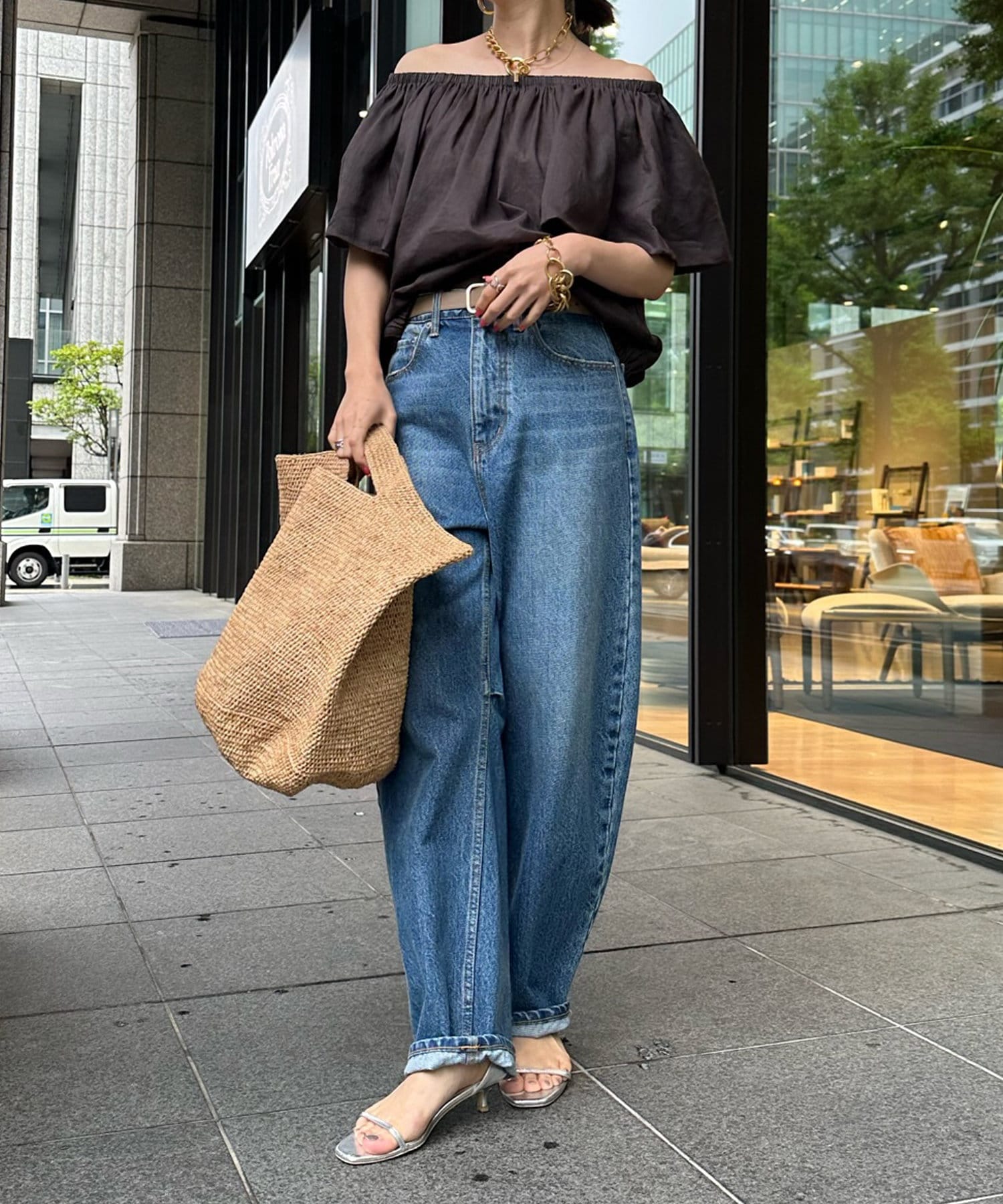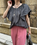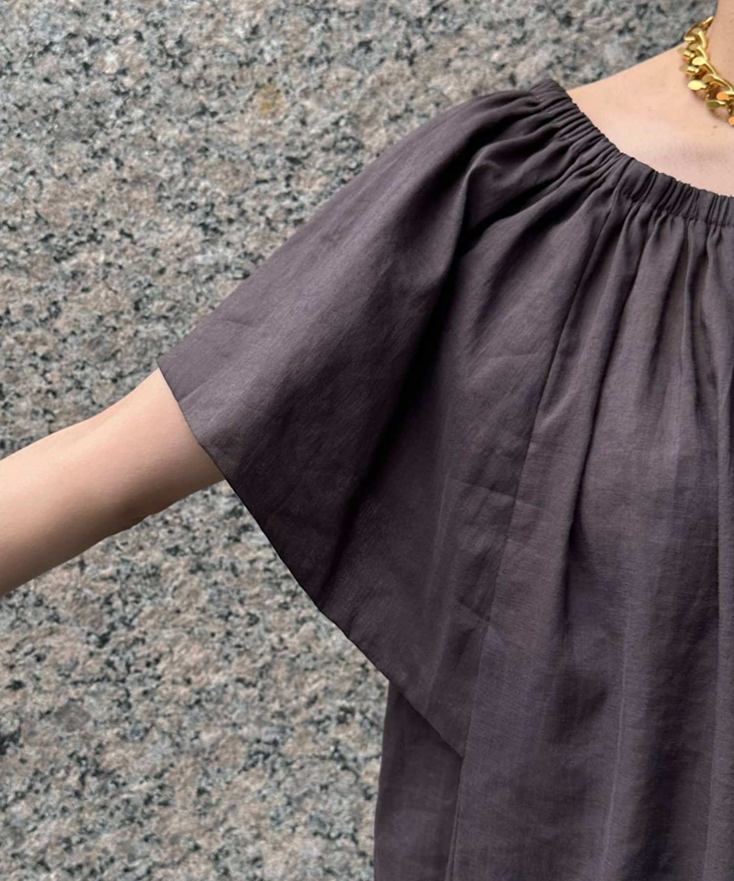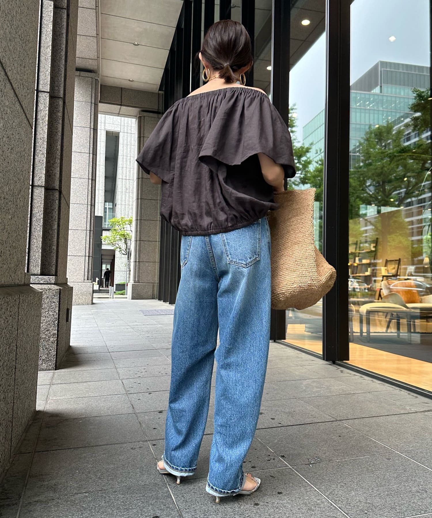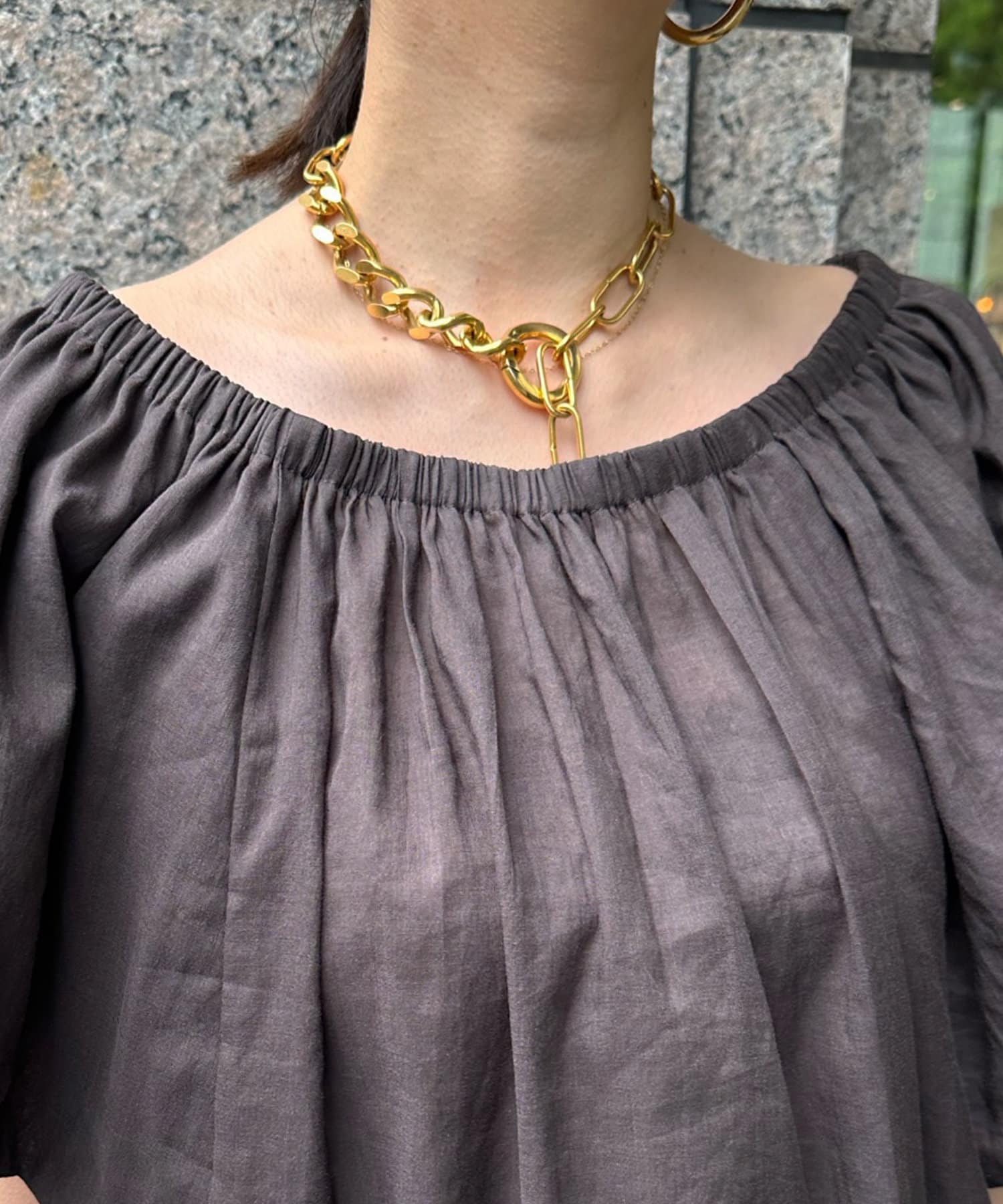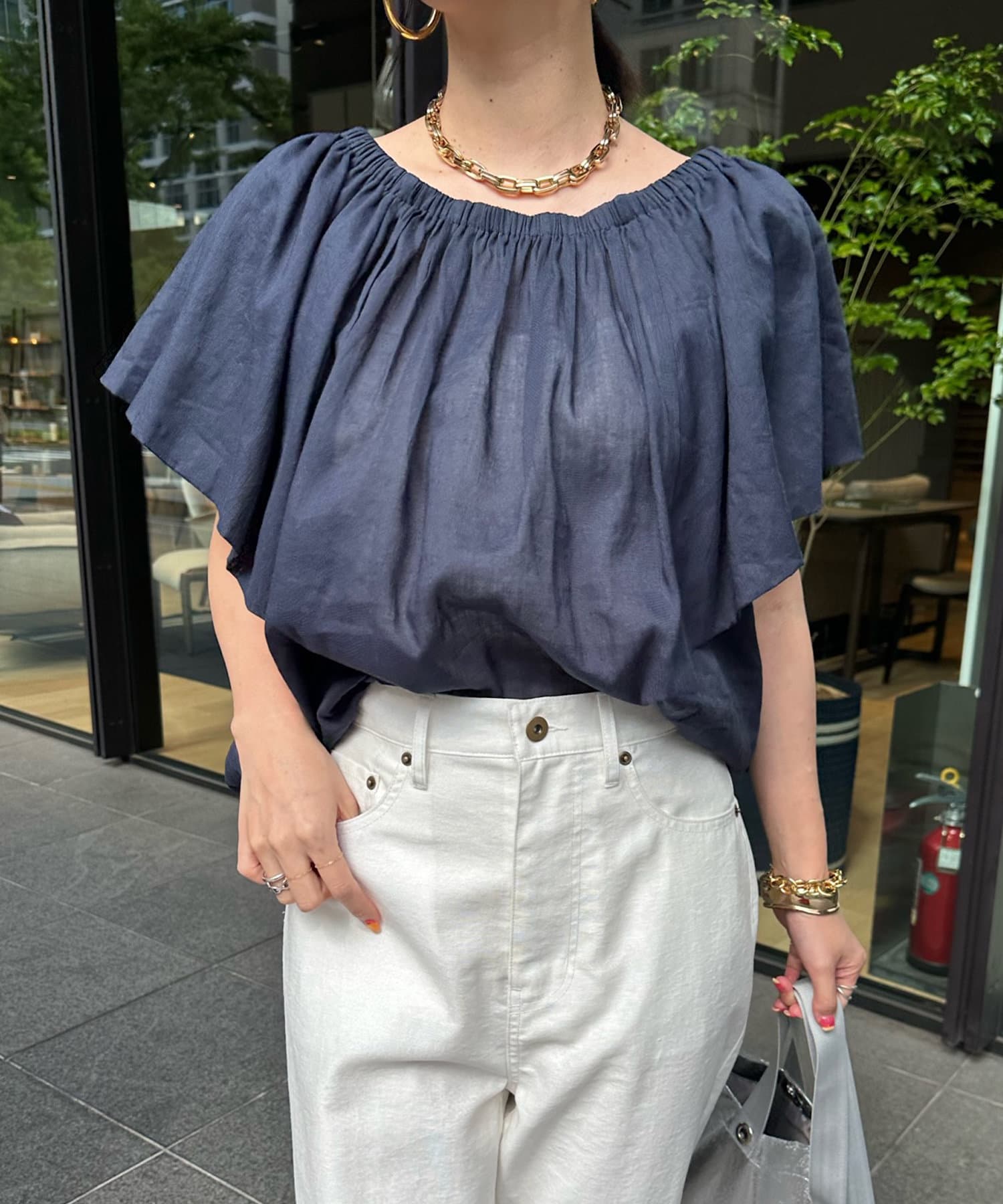• DOUDOU(ドゥドゥ) リネンフリルオフショルブラウス