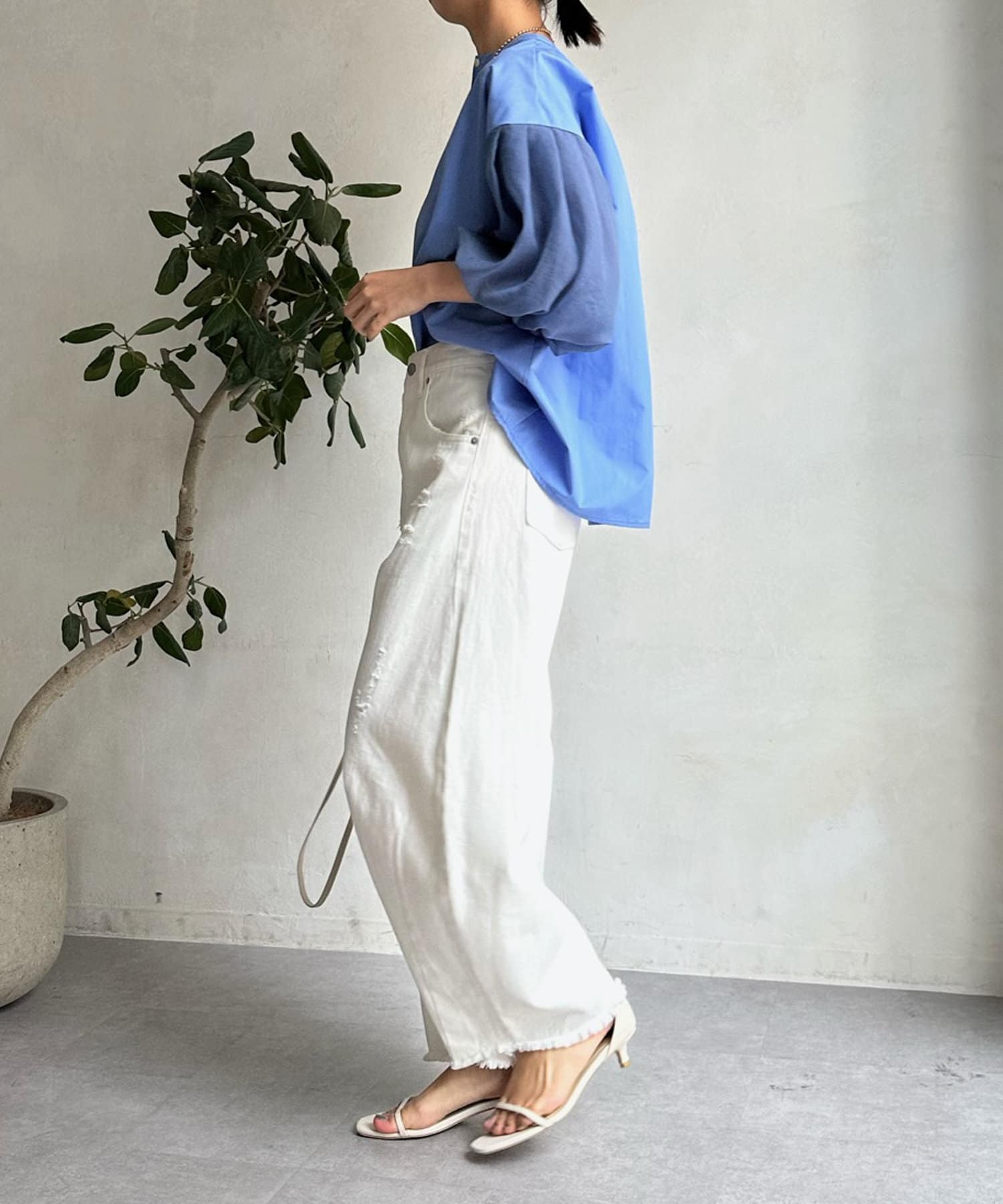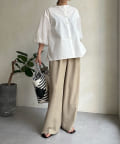 また、ネックラインのデザインが異なる前後2way仕様のため、着方次第で新鮮な印象にチェンジして着ていただけます。