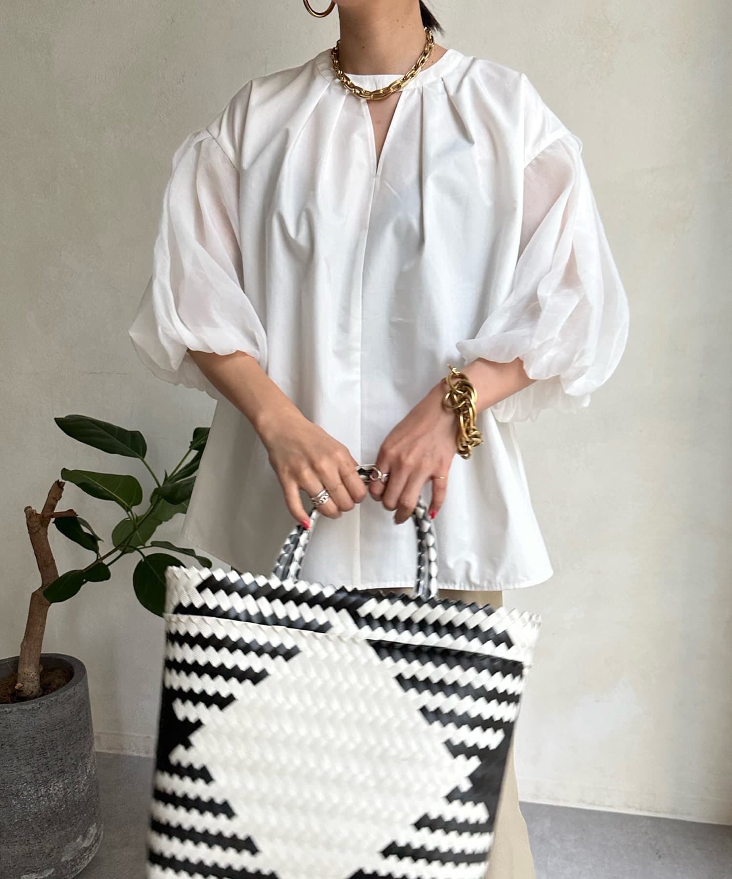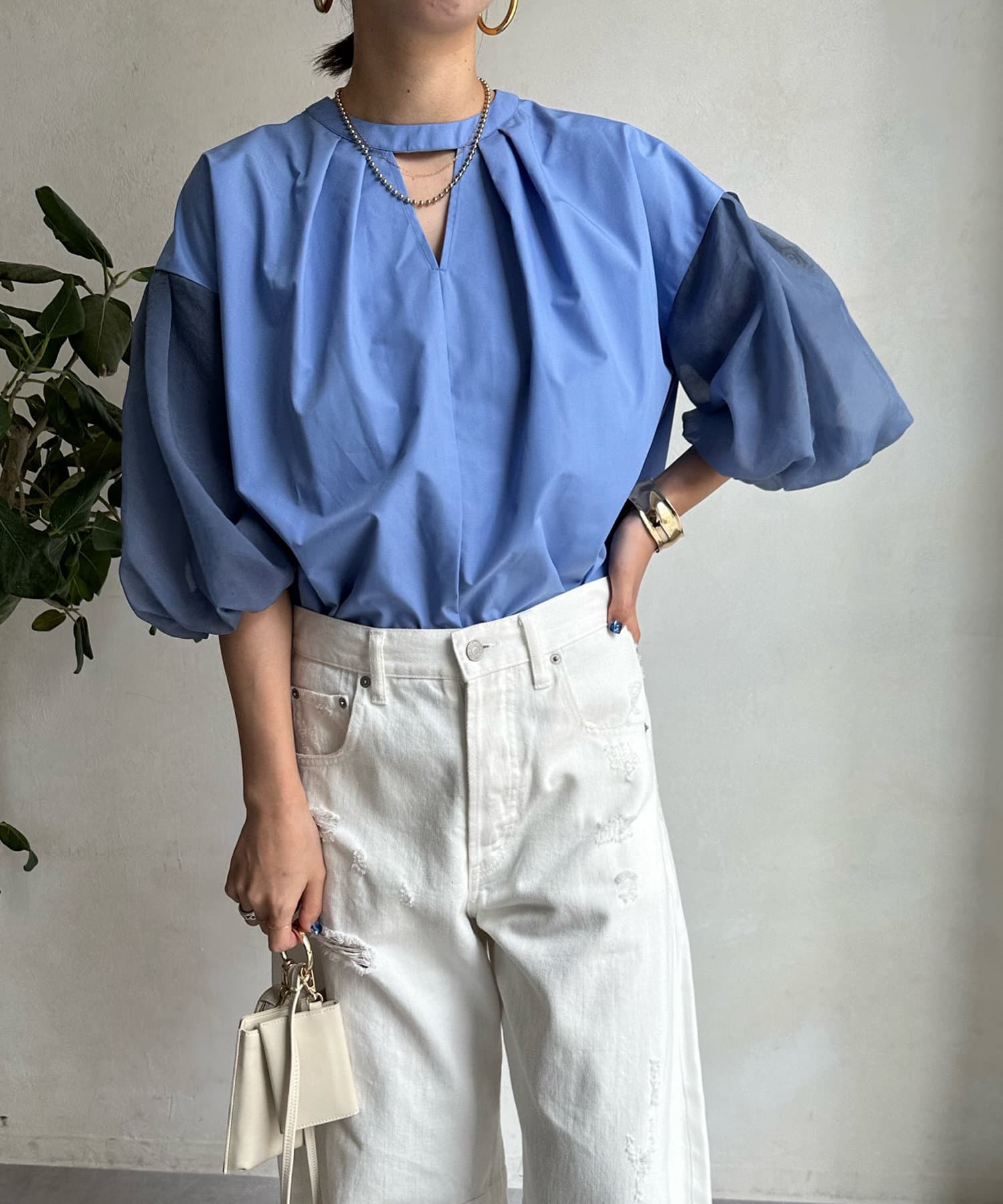 バルーンスリーブのふんわりとしたお袖が印象的なブラウス。