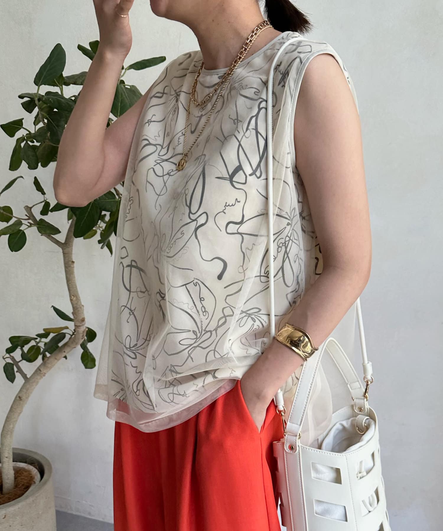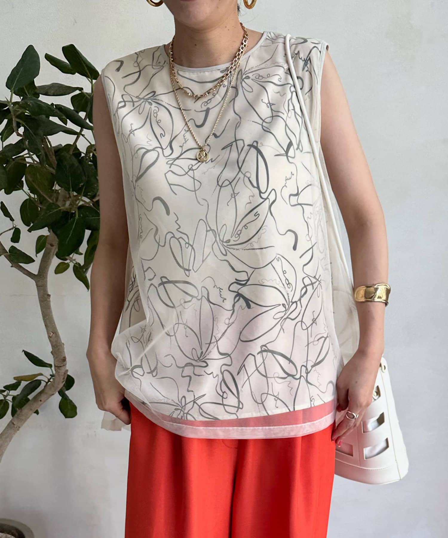 レイヤードされたトレンド感満載のチュールブラウスが登場。