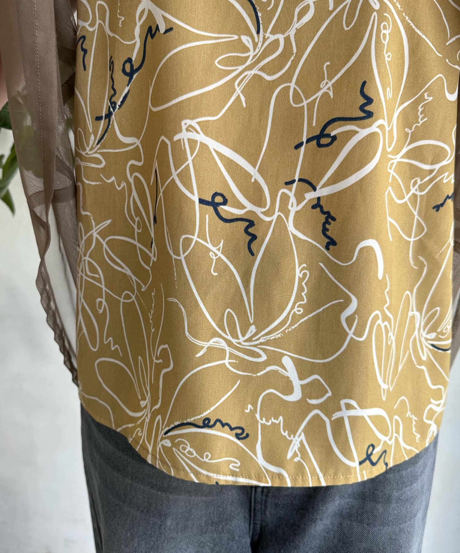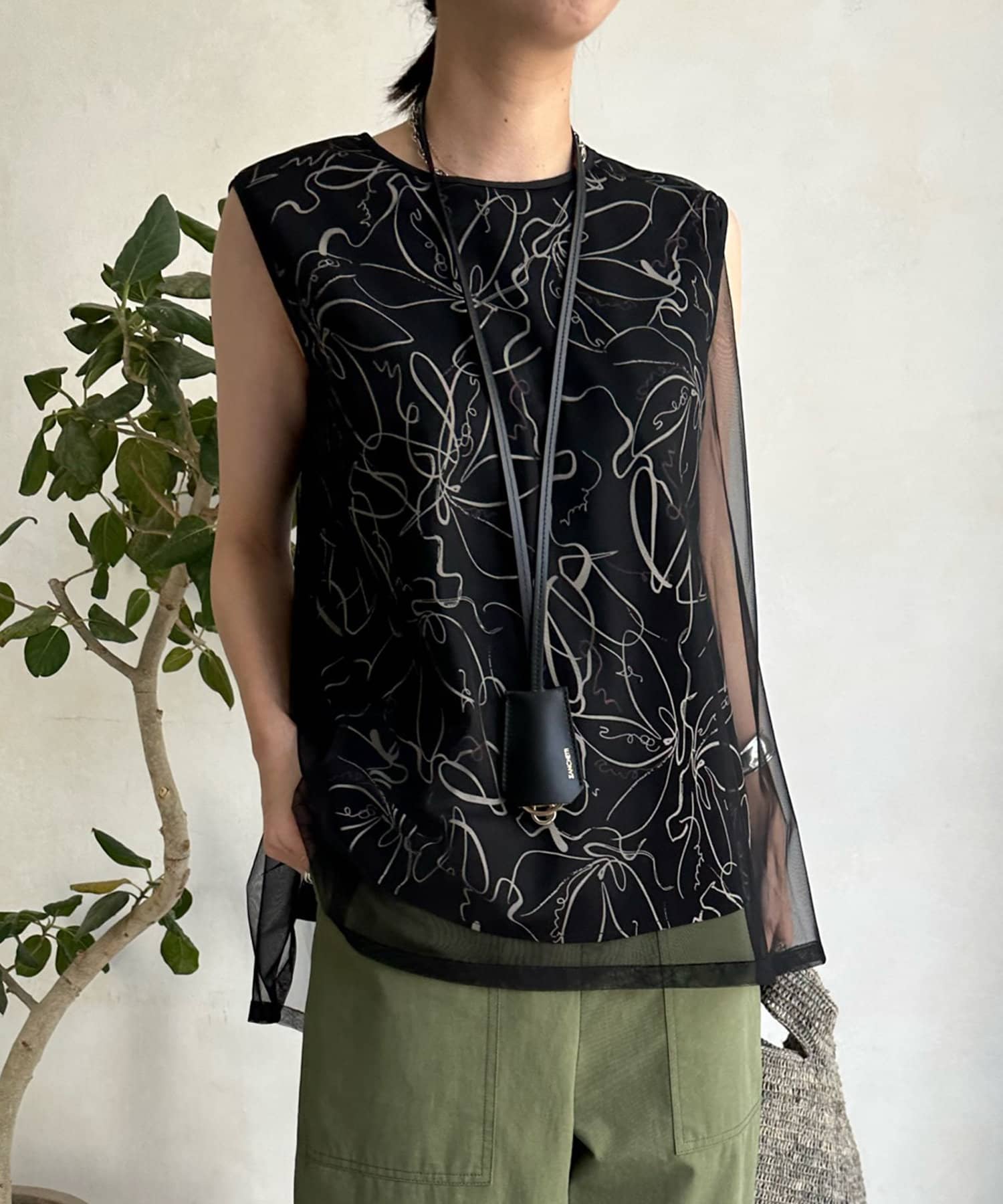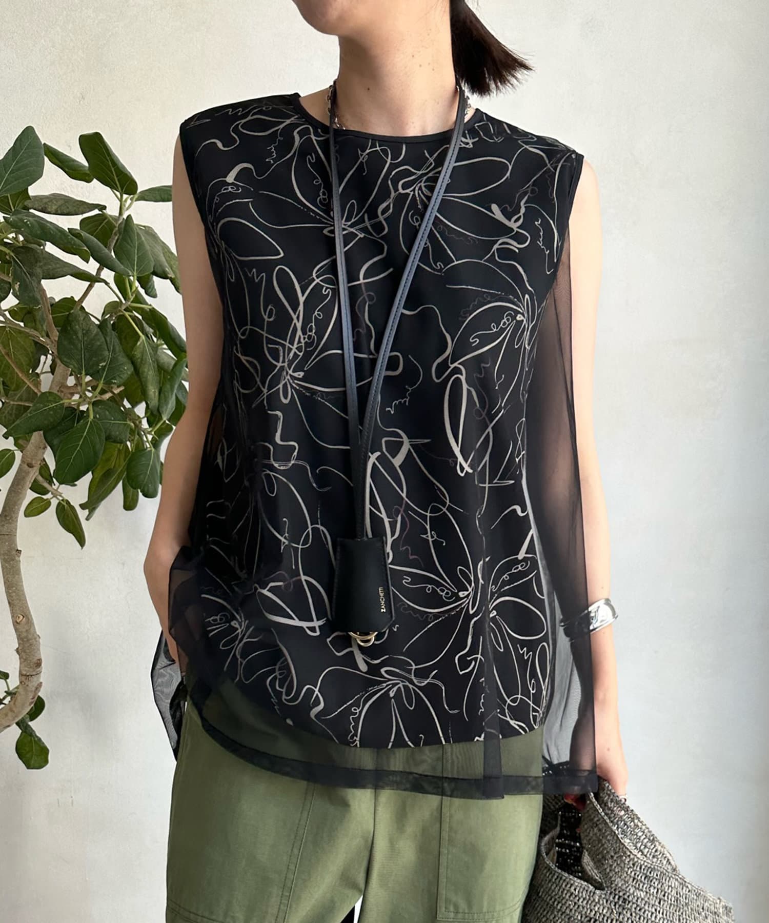 シアー感のあるチュールを使用し、お洒落なプリントが存在感ばっちり〇