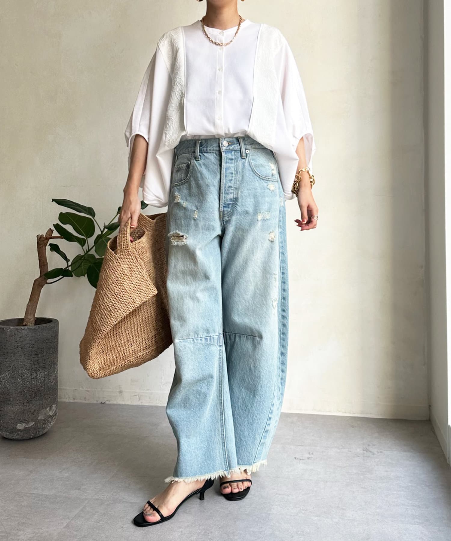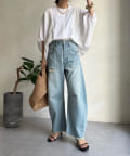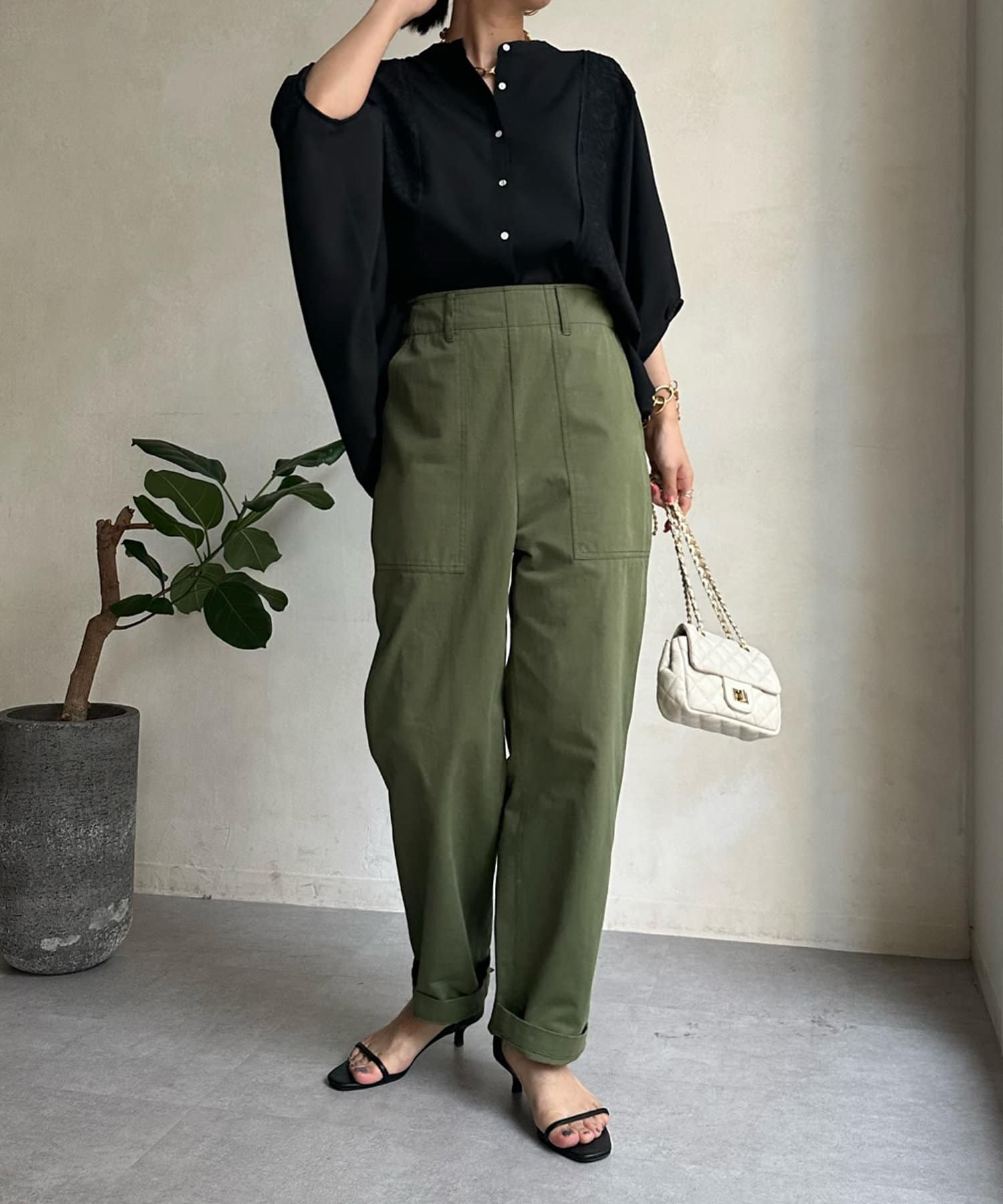 ふんわりと身体のラインをカバーし、余裕感のあるシルエットに。
