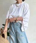 シンプルな中にも華やかさのあるドルマンスリーブトップス。