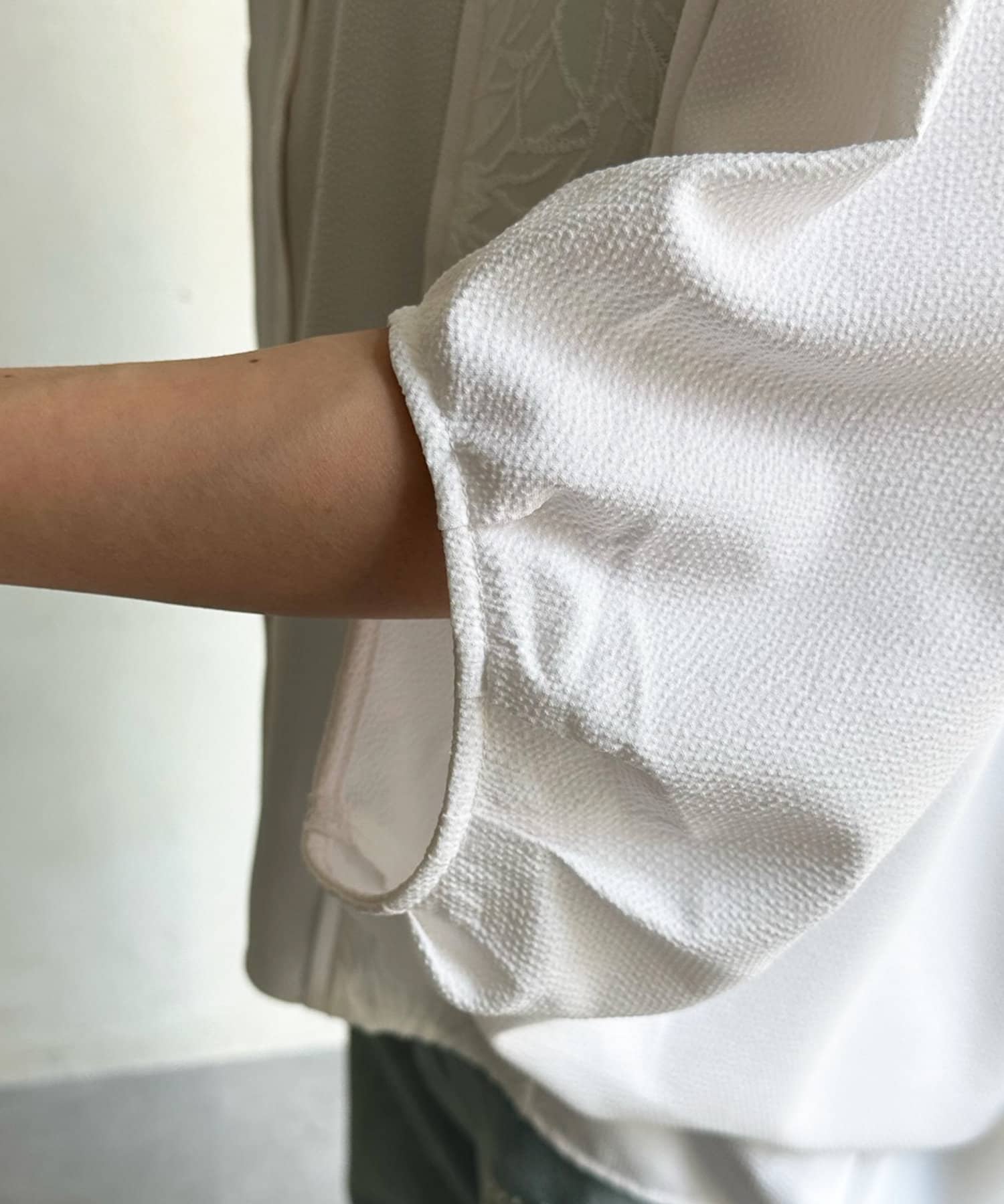 レース切替+ドルマンスリーブでデザイン性抜群の1枚。