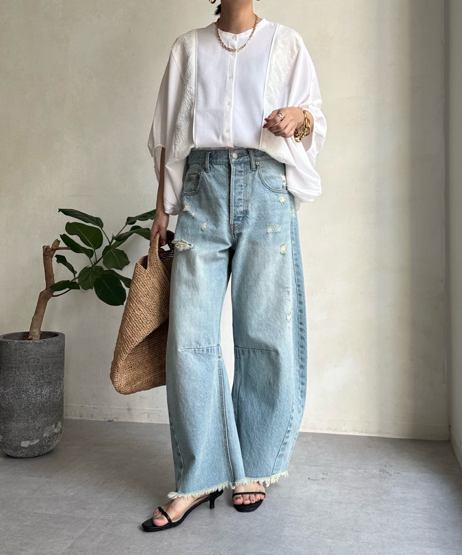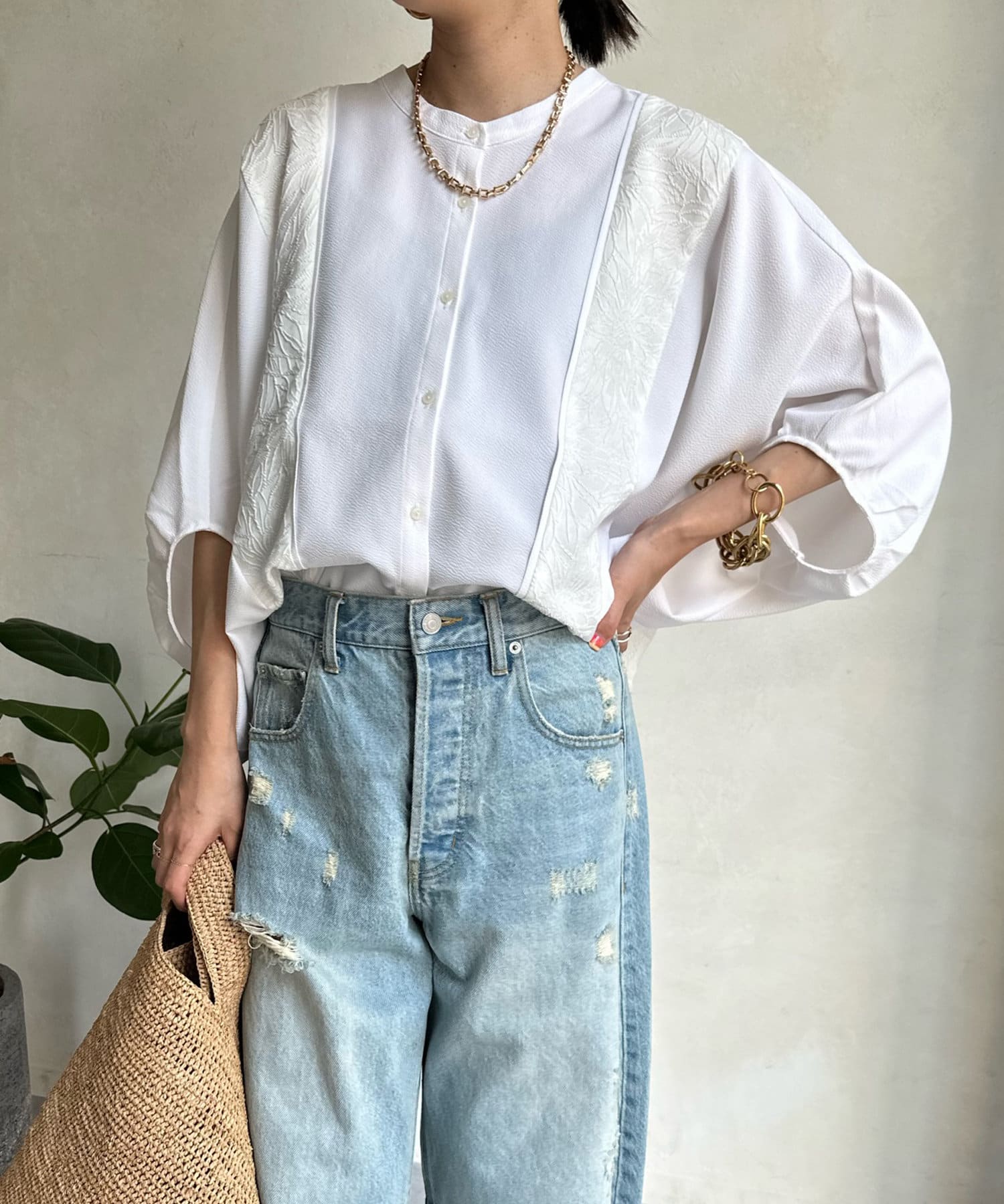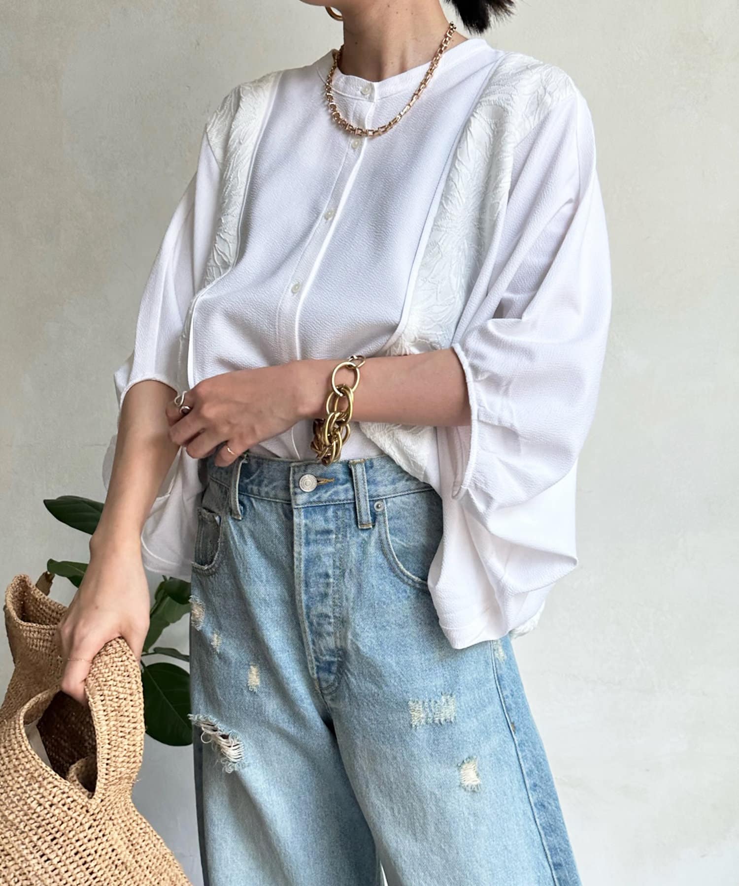 • DOUDOU(ドゥドゥ) 【WEB限定】レース切替ドルマンシャツ