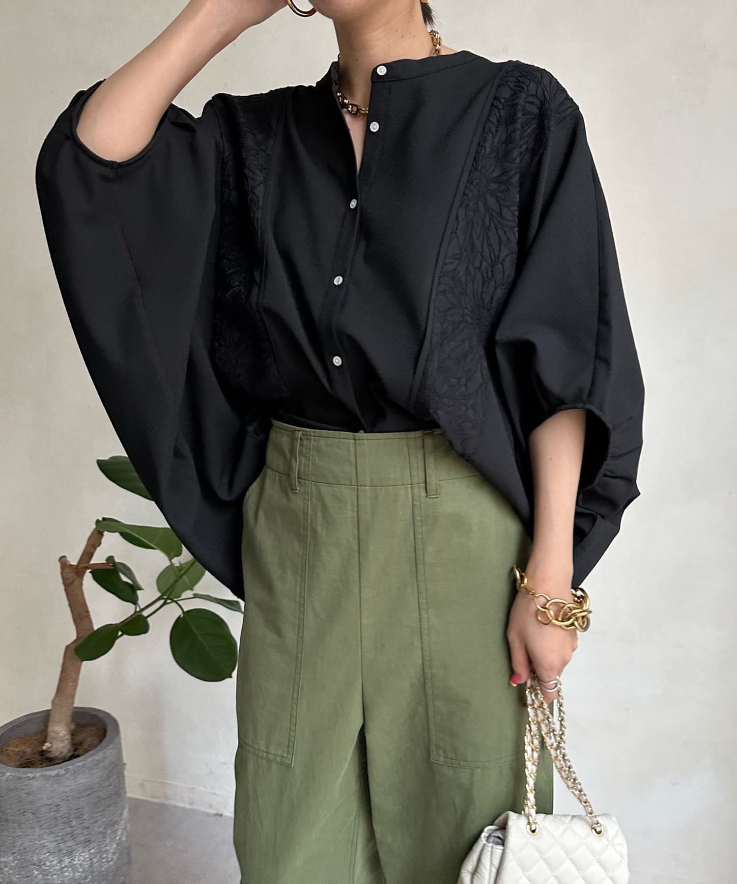 DOUDOU(ドゥドゥ) 【WEB限定】レース切替ドルマンシャツ
