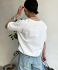 ラグランスリーブに仕上げることで肩のラインをカバーしながら、ラフさをプラス。