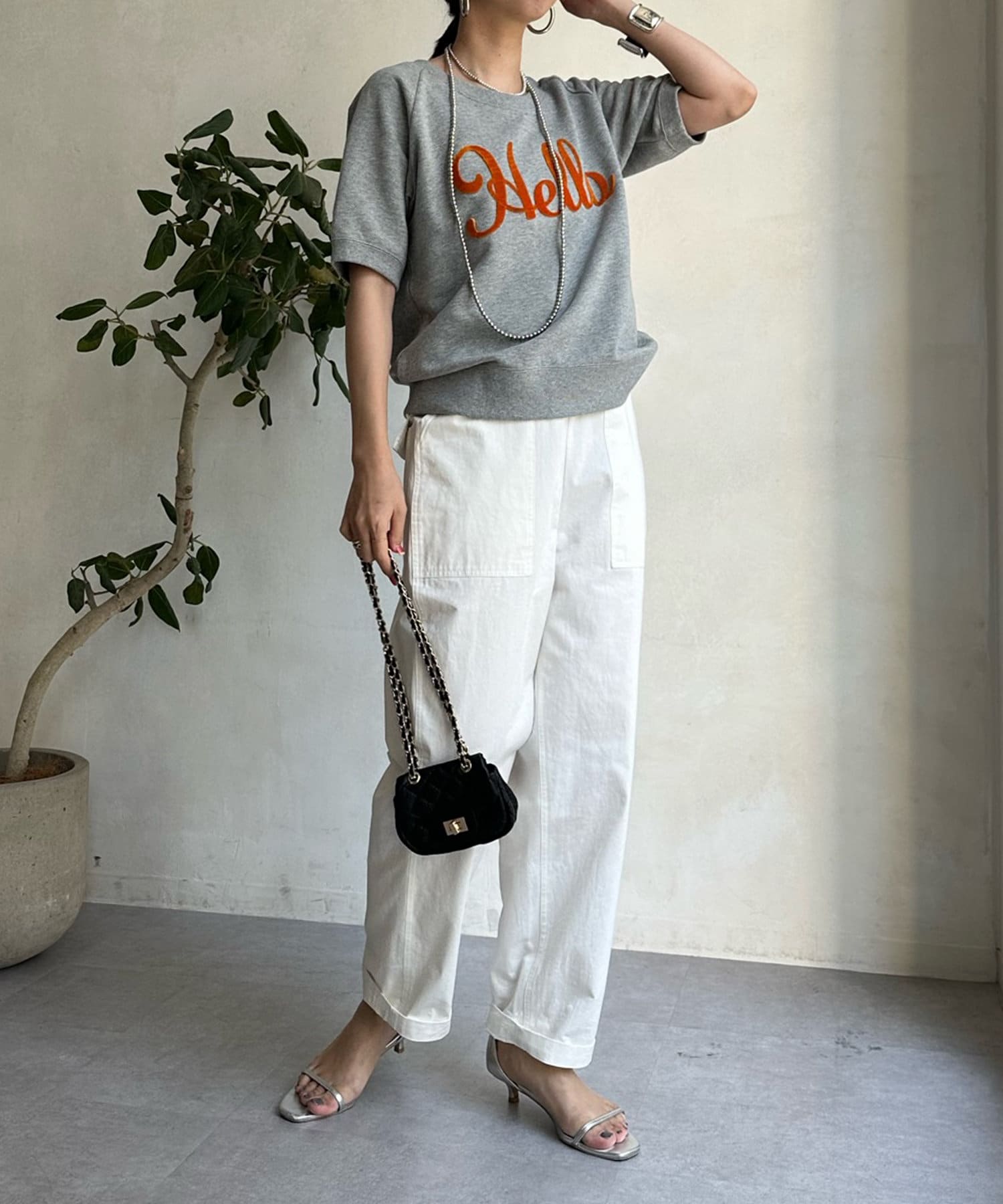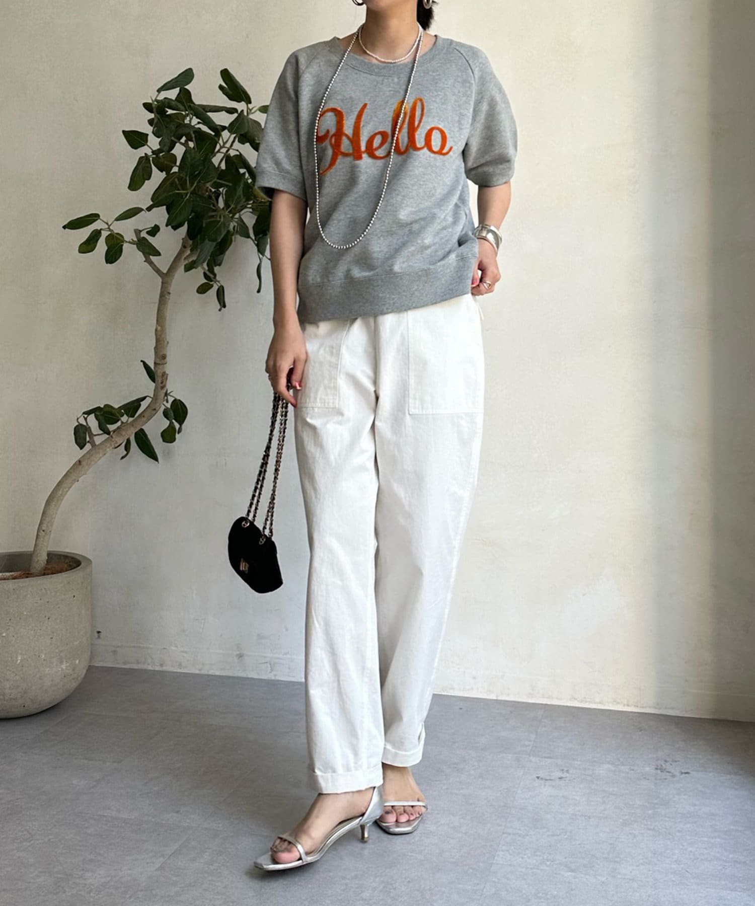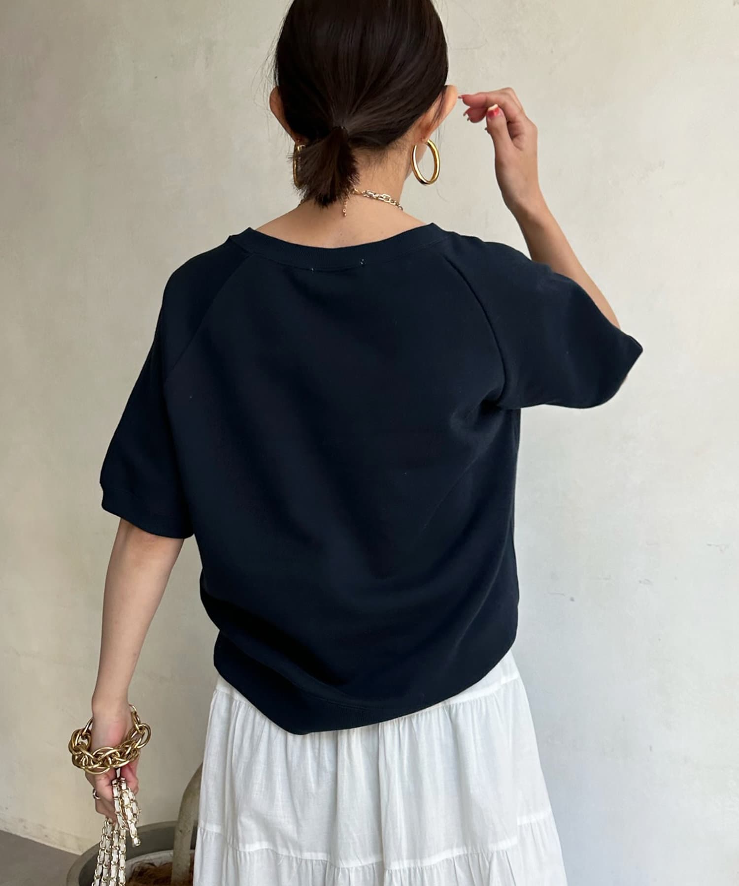 Tシャツよりもカジュアルになりすぎず、デイリーに着まわしやすいハーフスリーブのスウェット。
