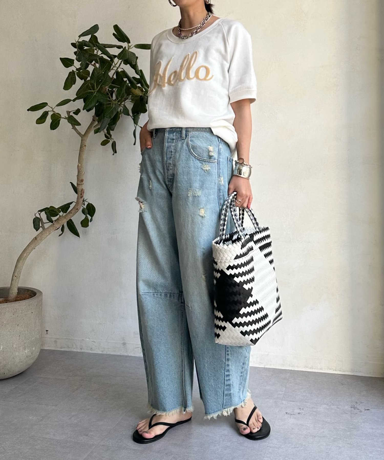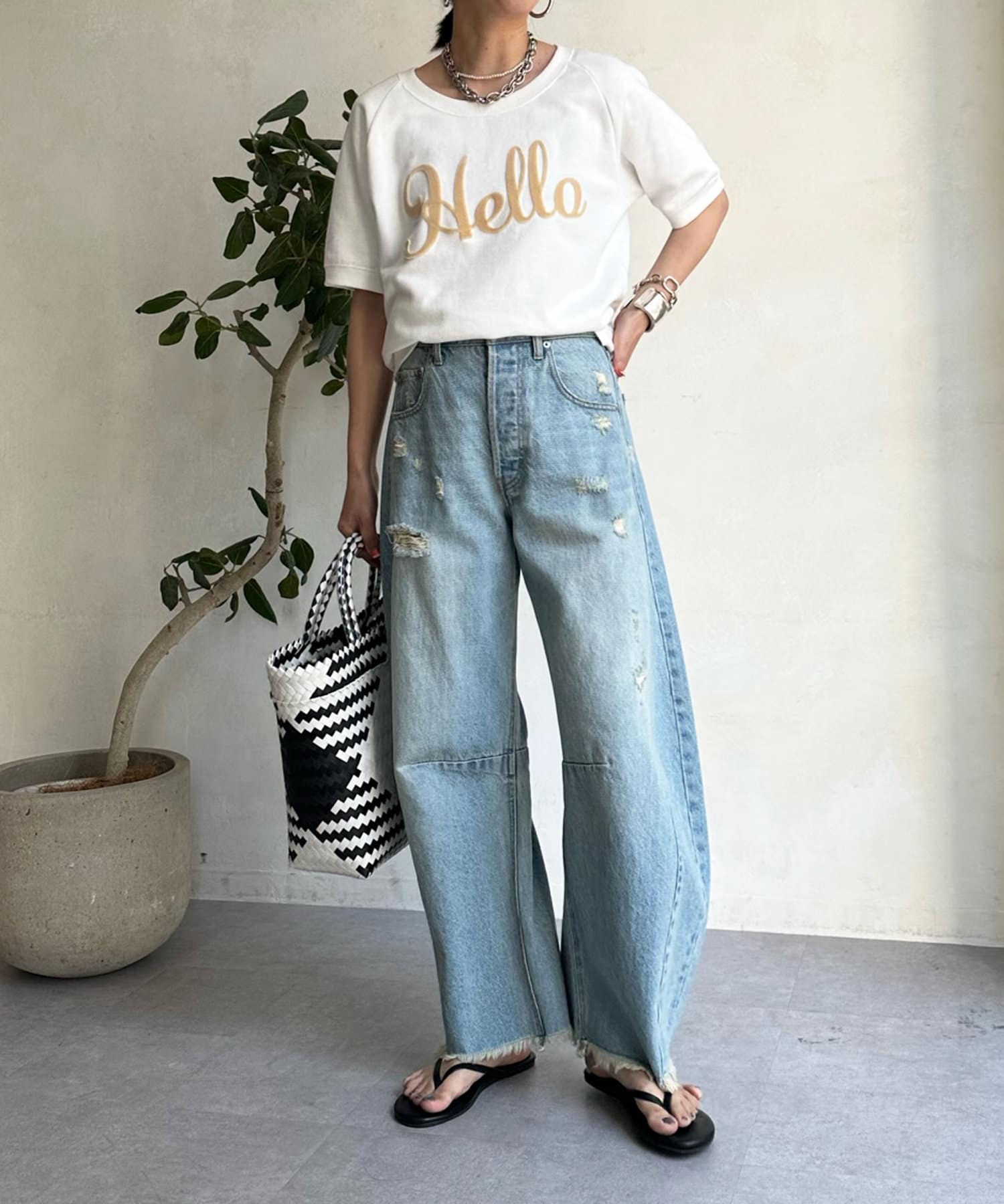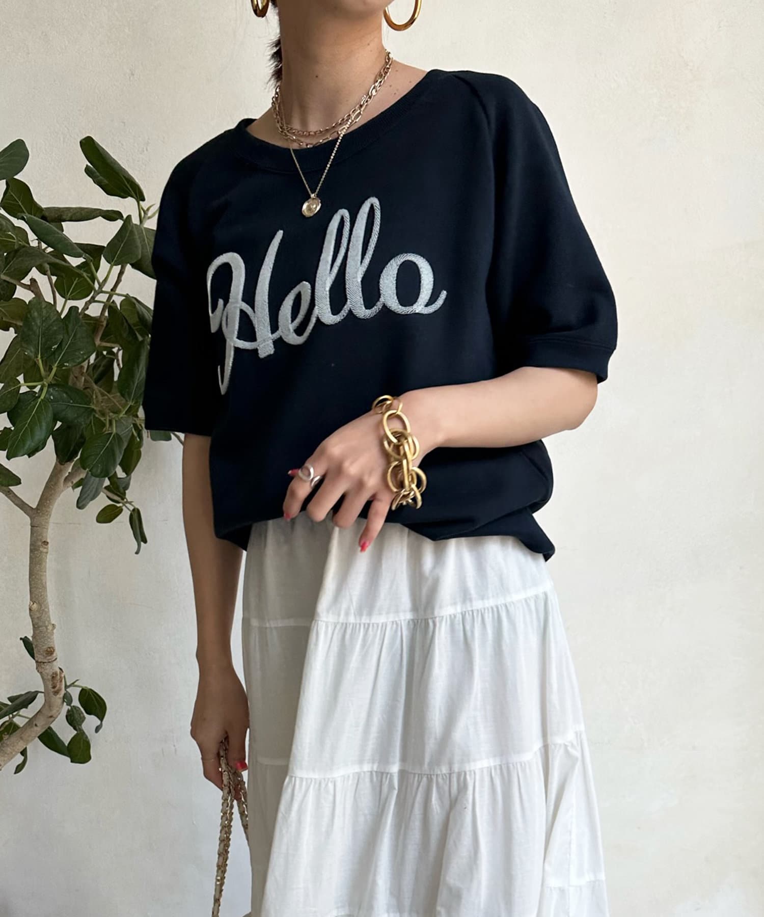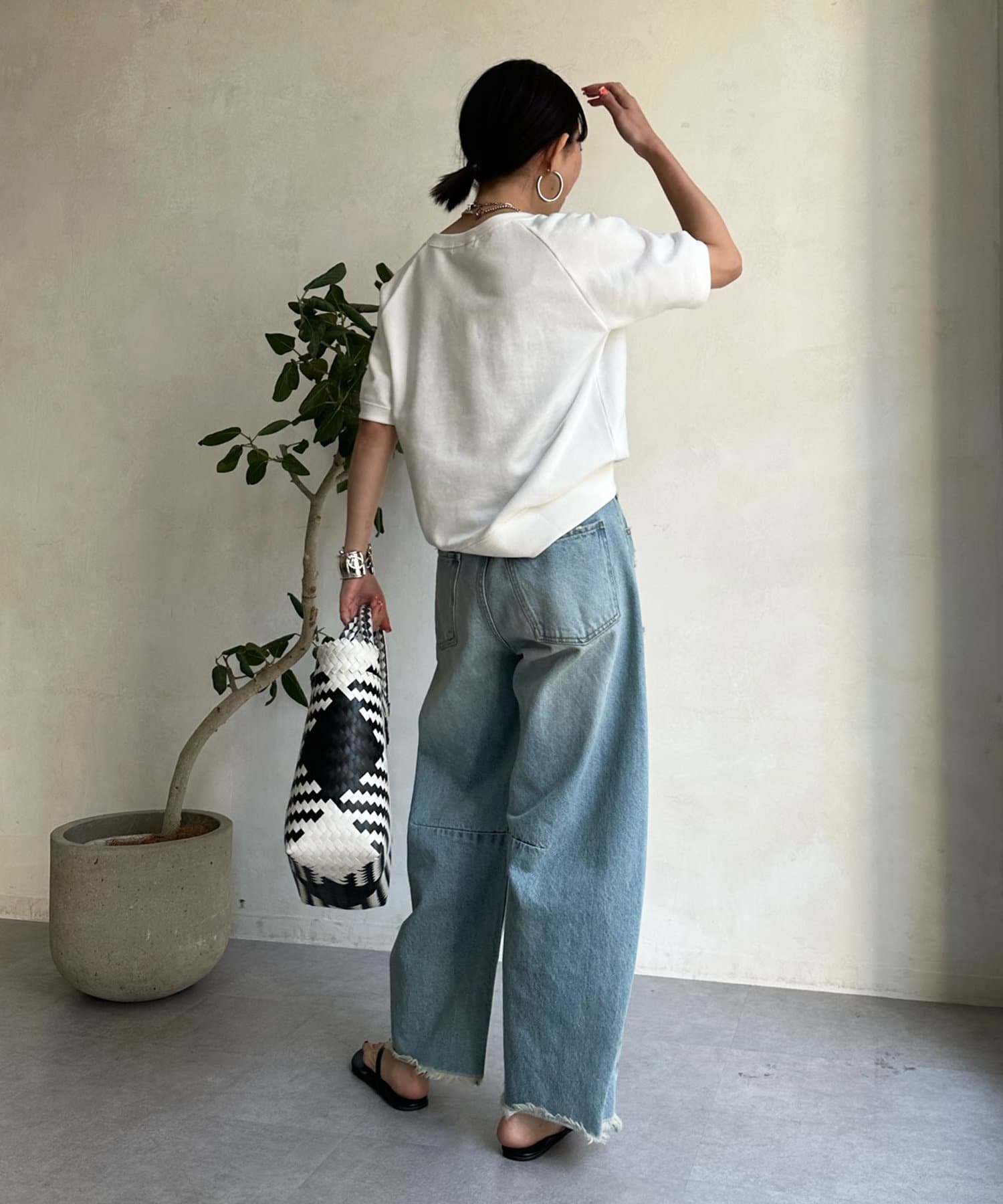 Tシャツよりもカジュアルになりすぎず、デイリーに着まわしやすいハーフスリーブのスウェット。