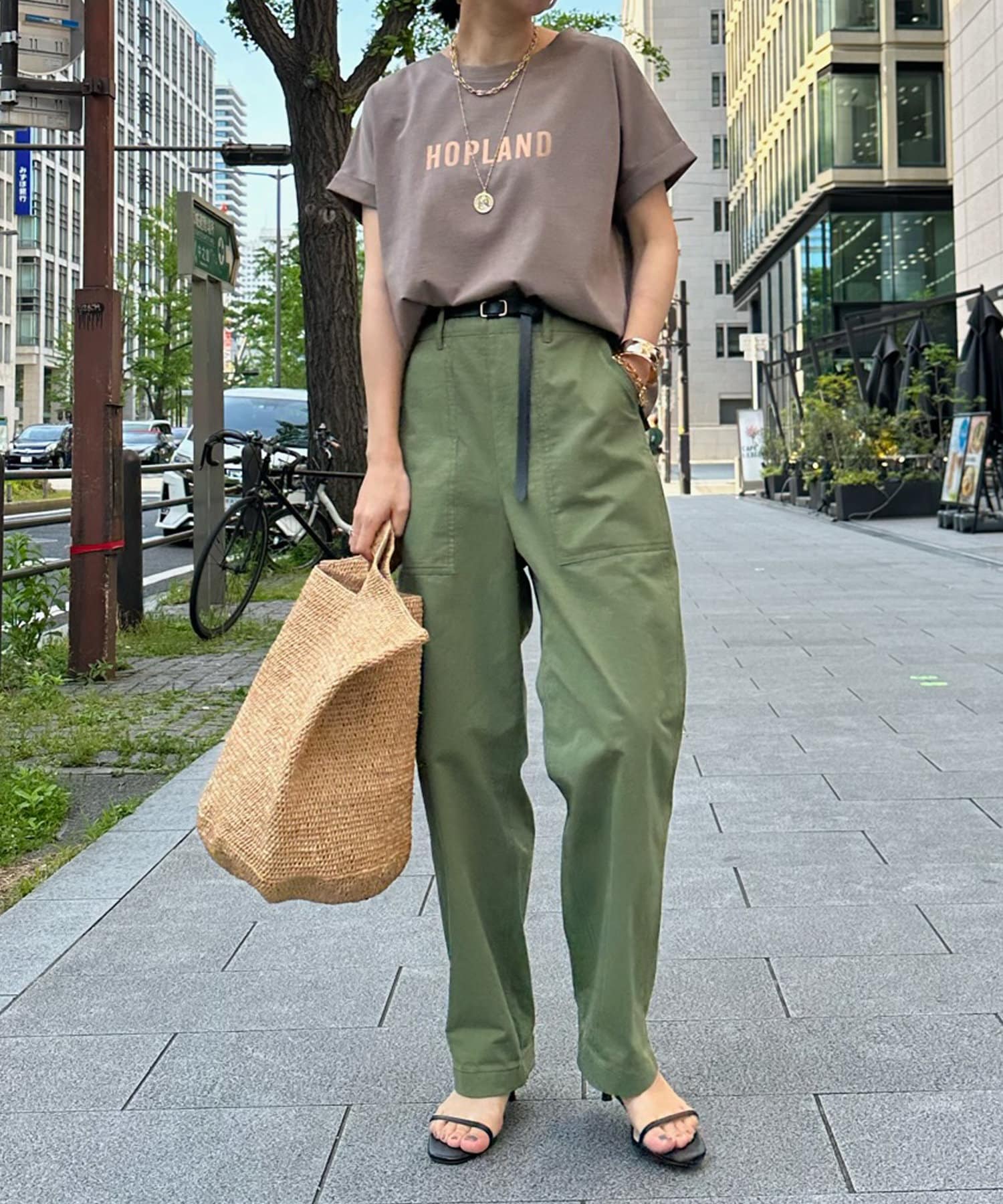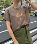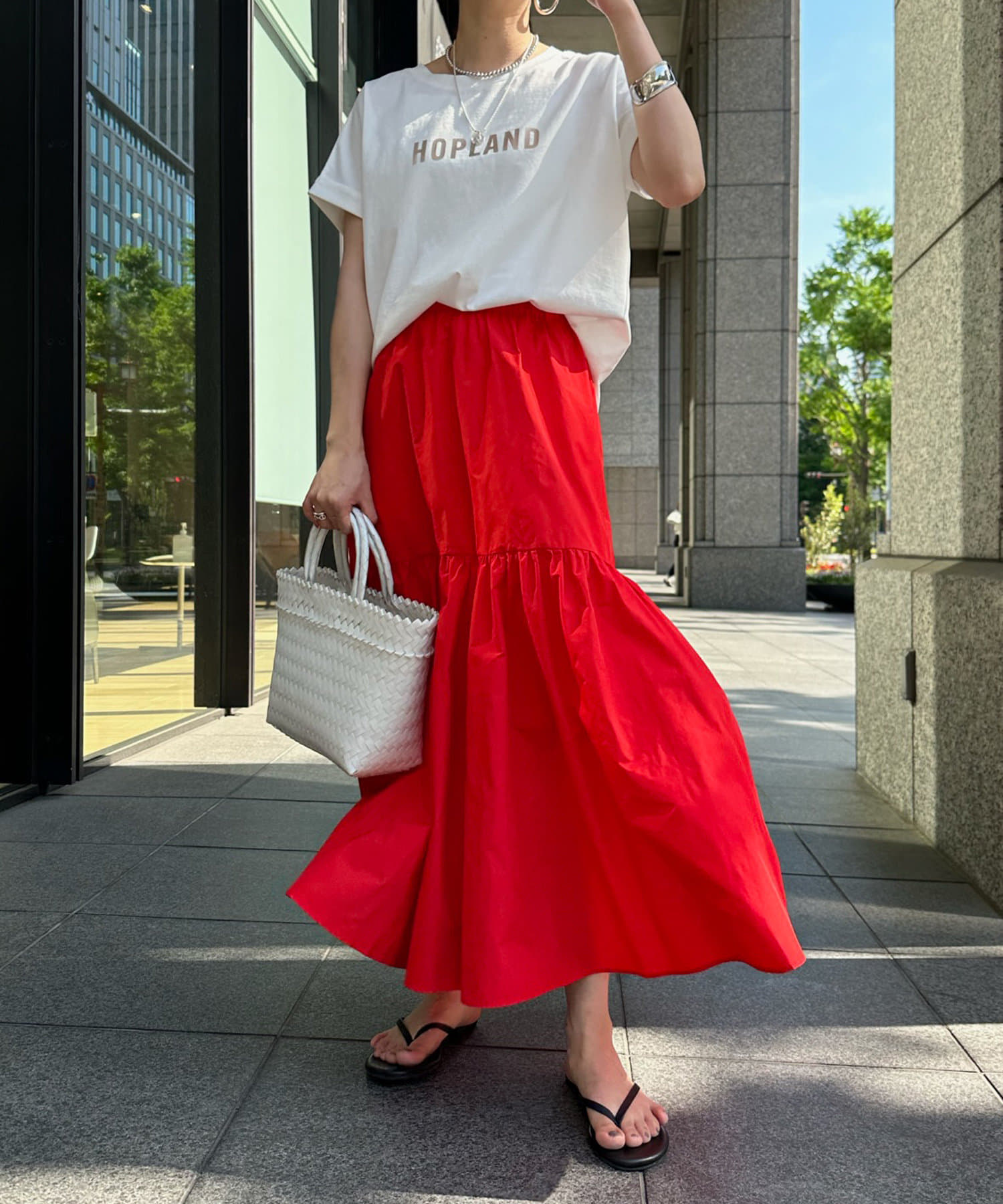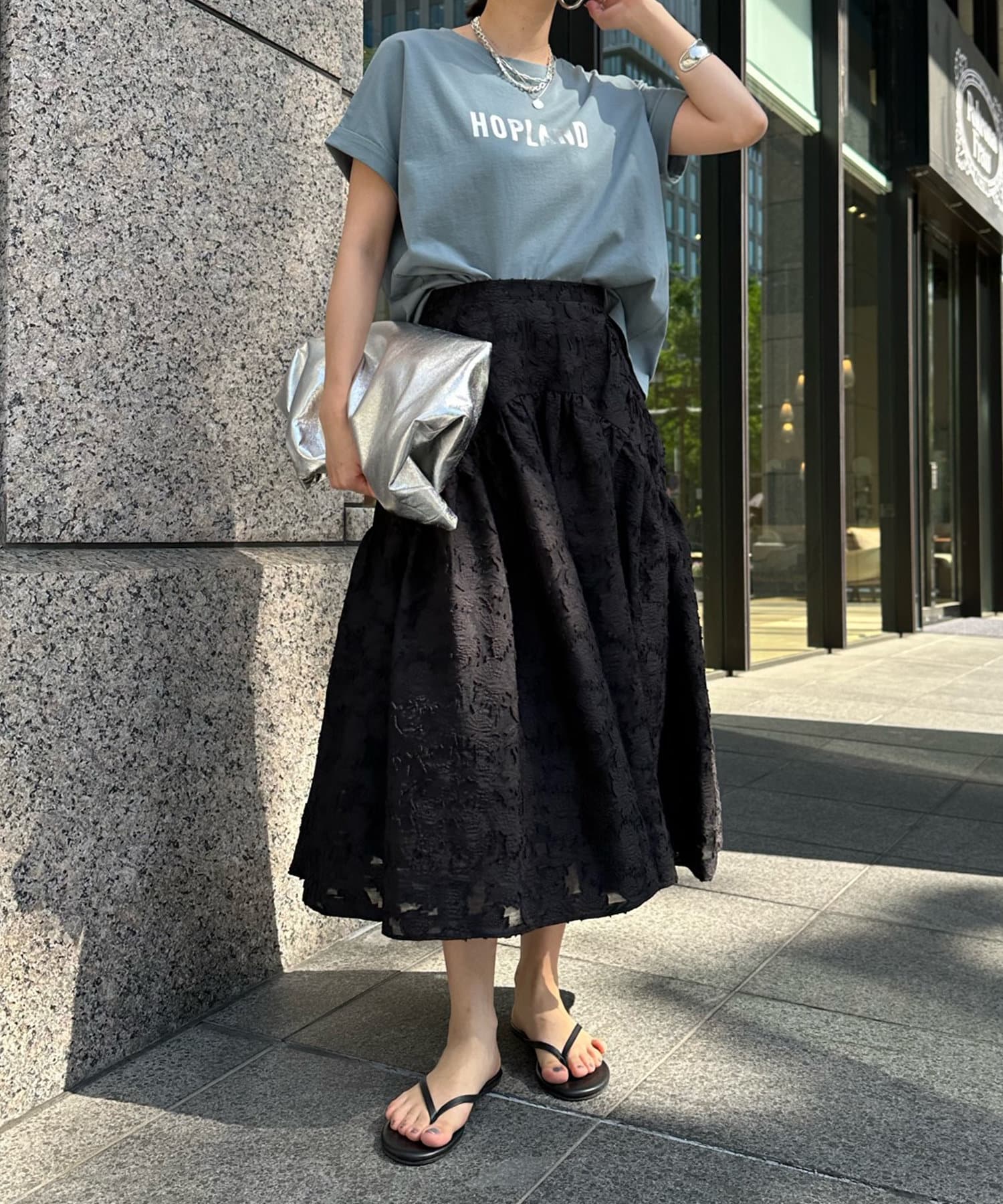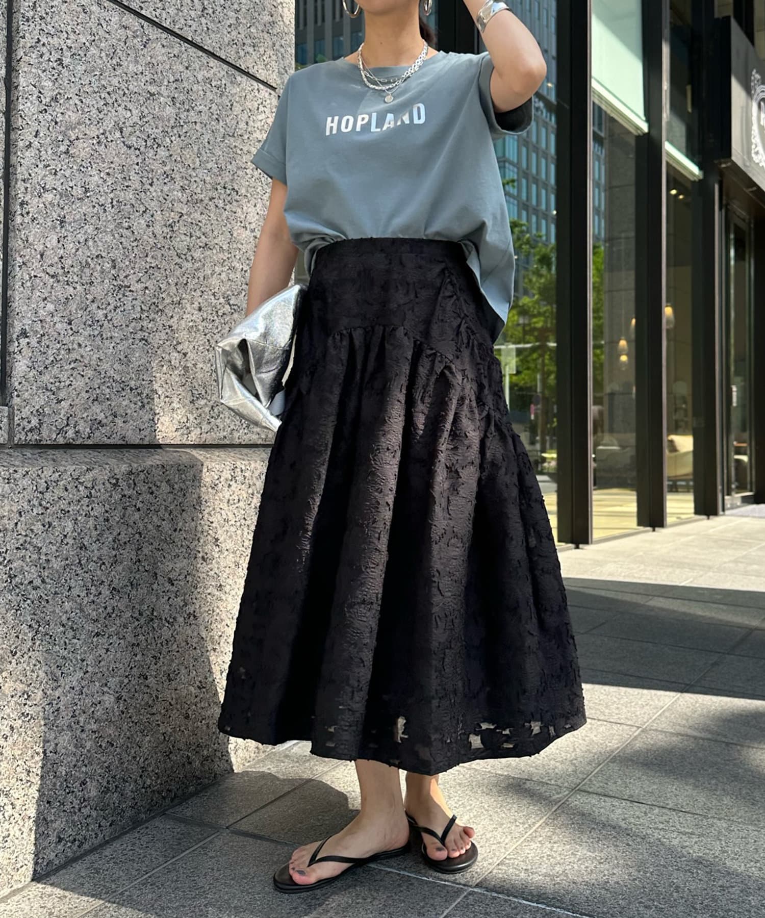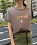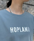 「HOPLAND」の箔プリントが、コーディネートの華やかなポイントとなってくれる1枚。