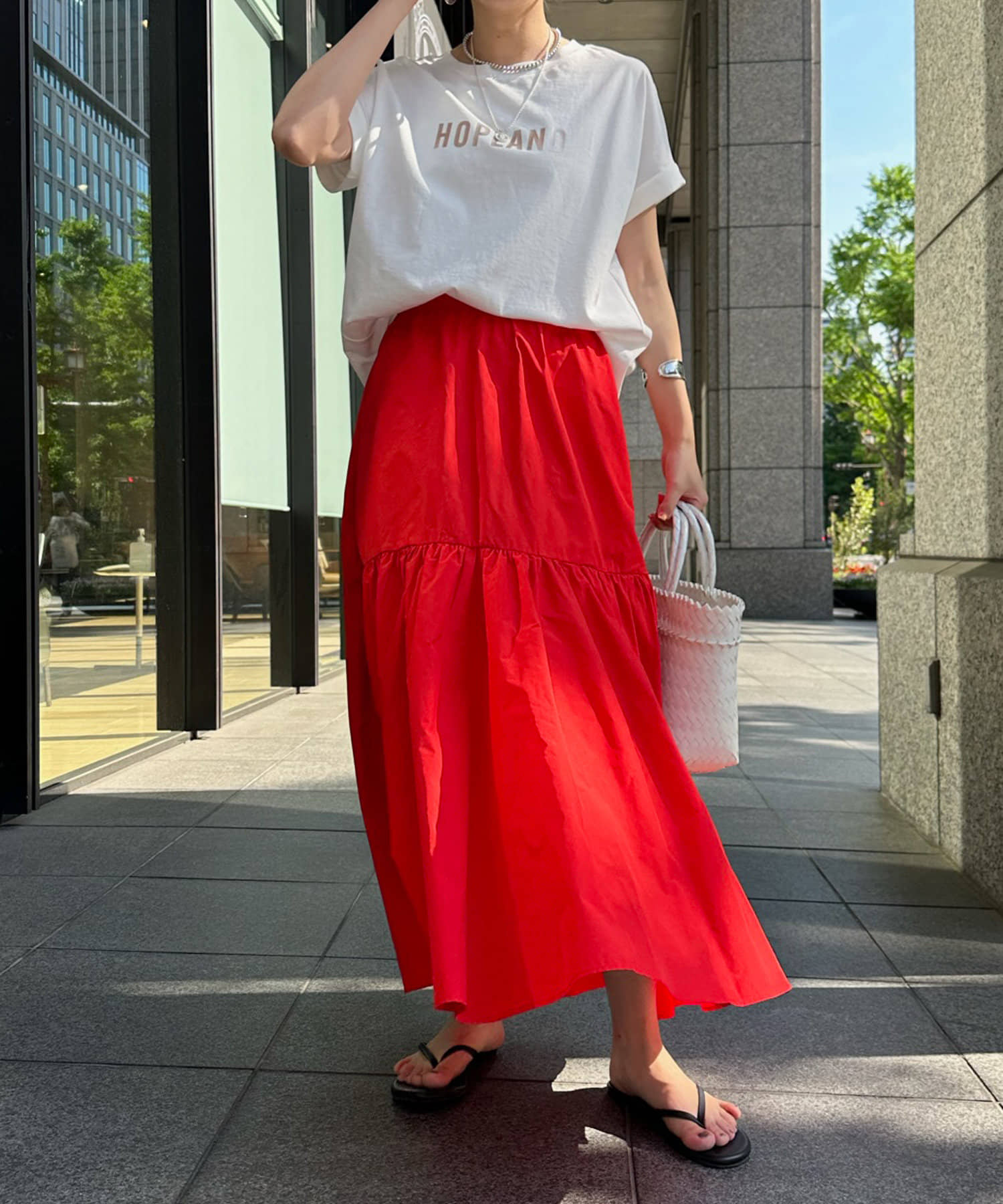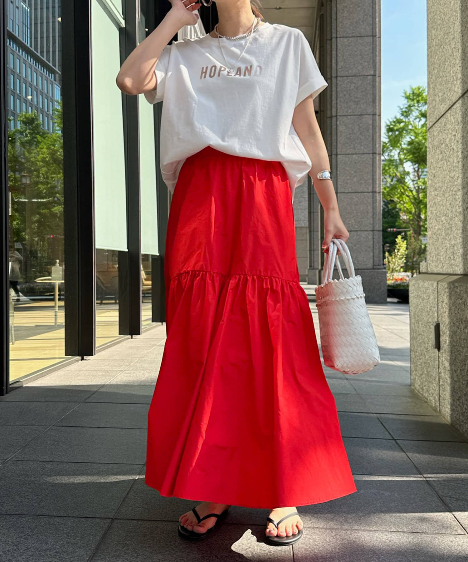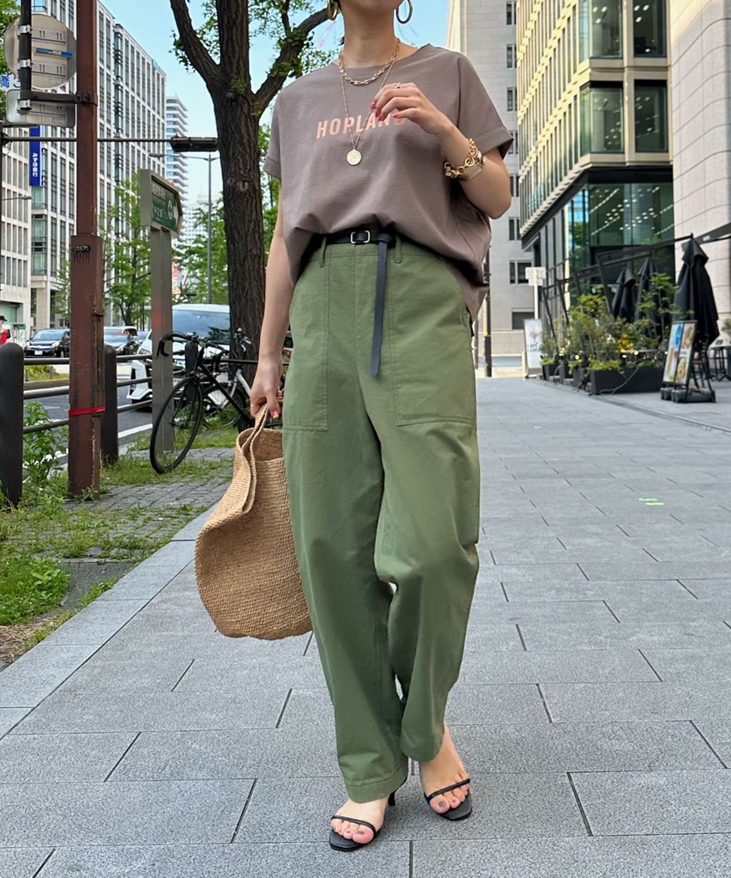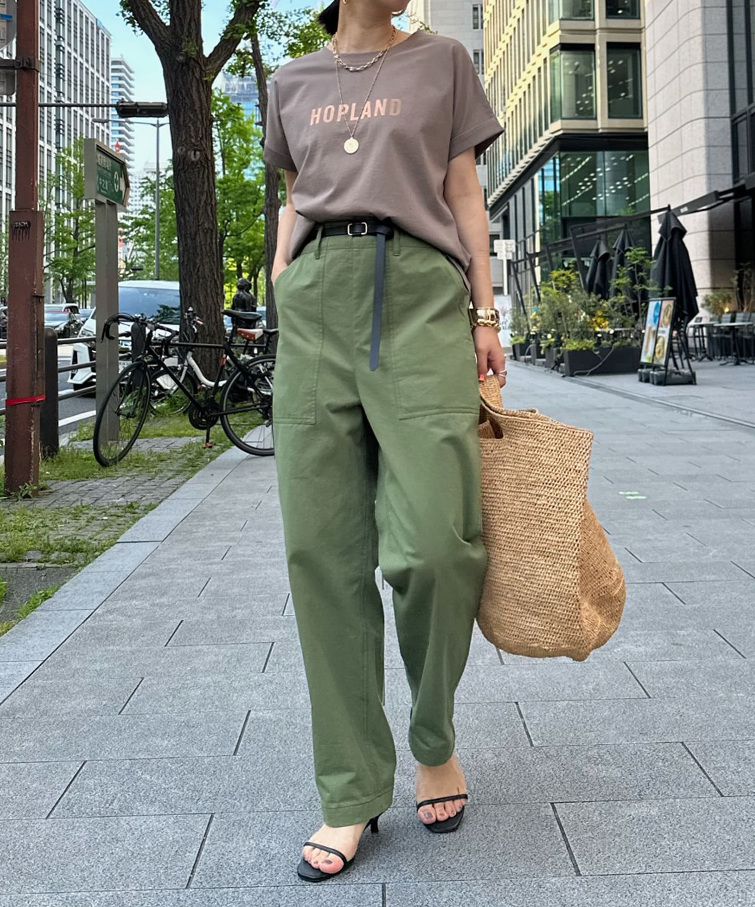「HOPLAND」の箔プリントが、コーディネートの華やかなポイントとなってくれる1枚。