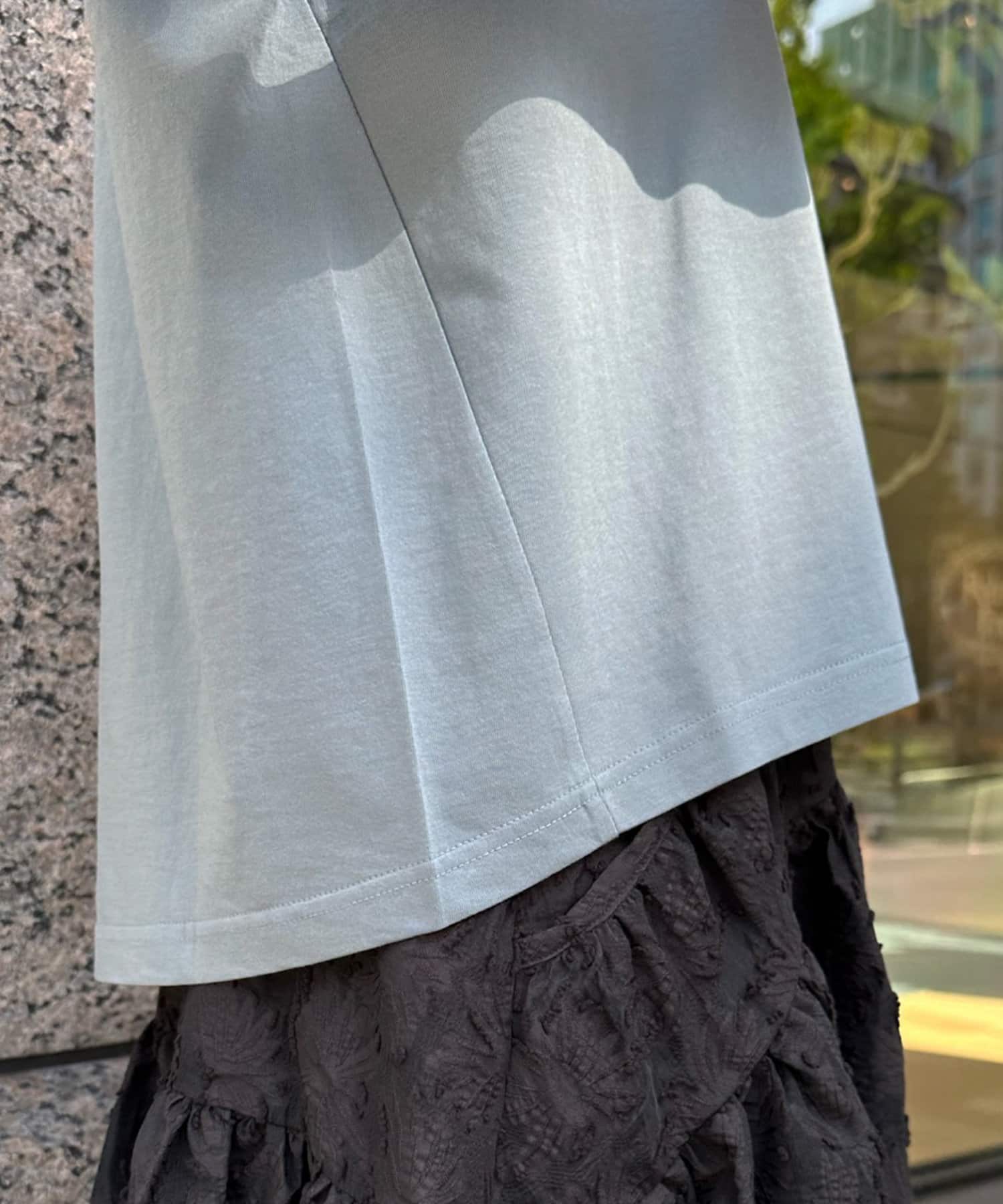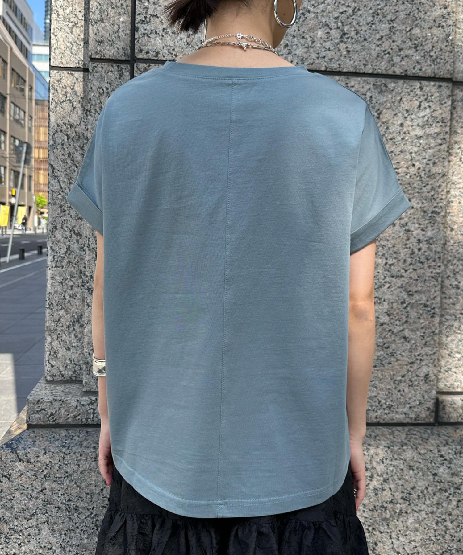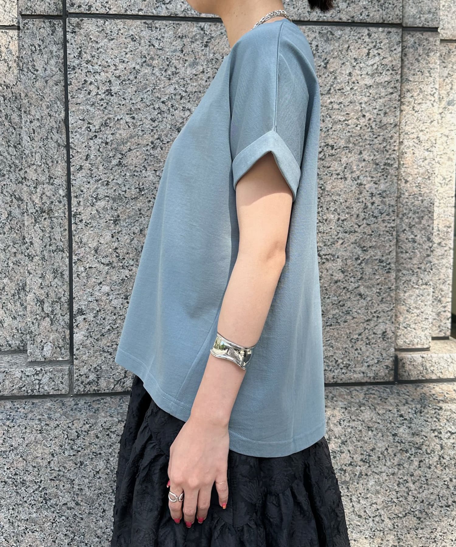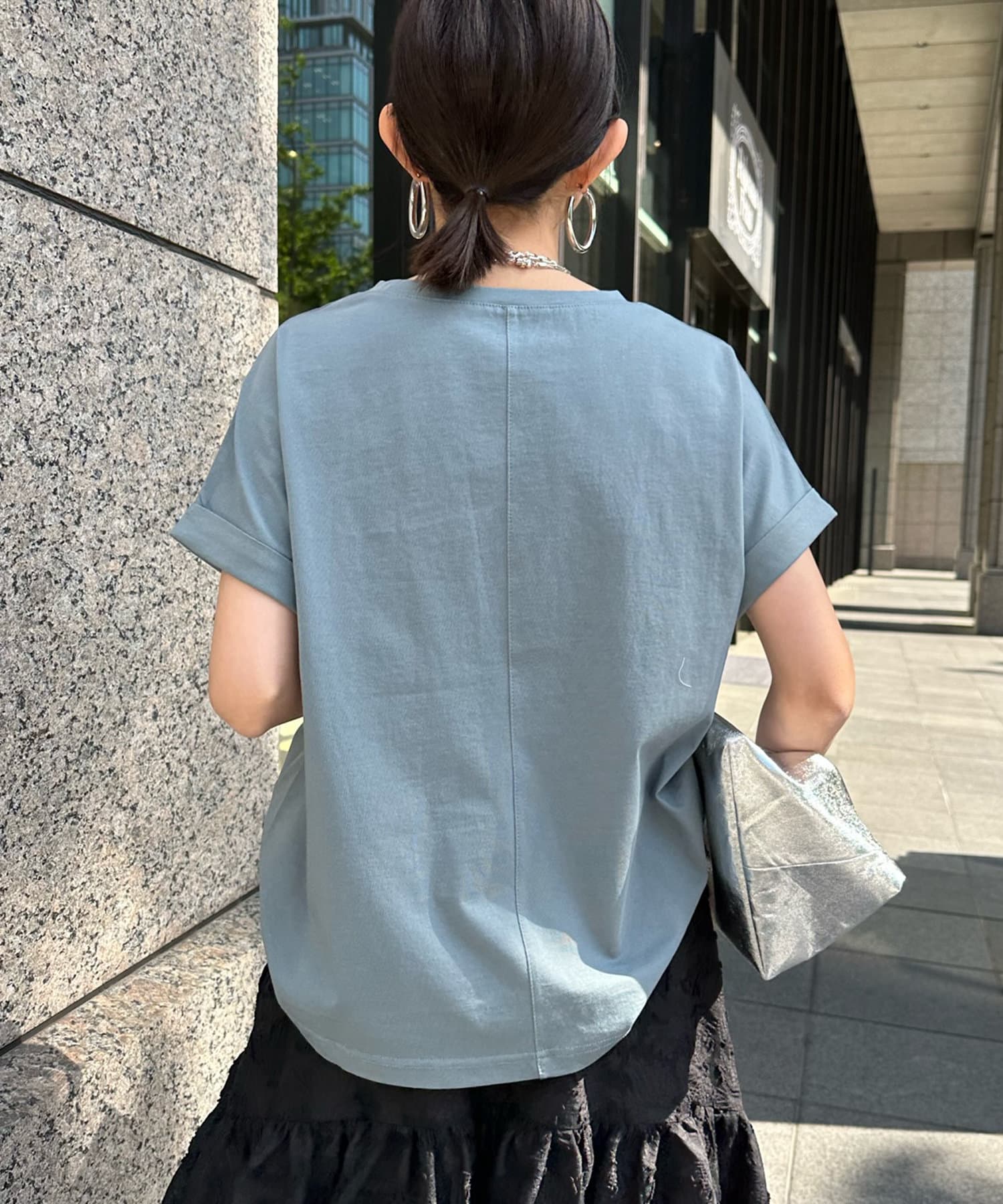 お袖をロールアップしたデザインで腕周りをさり気なくカバーしてくれます。その上、こなれ感をプラス。