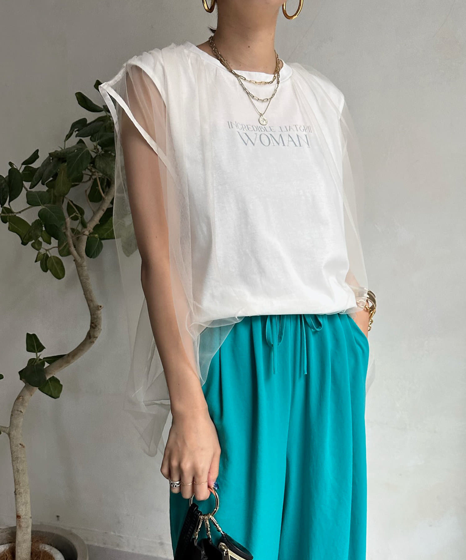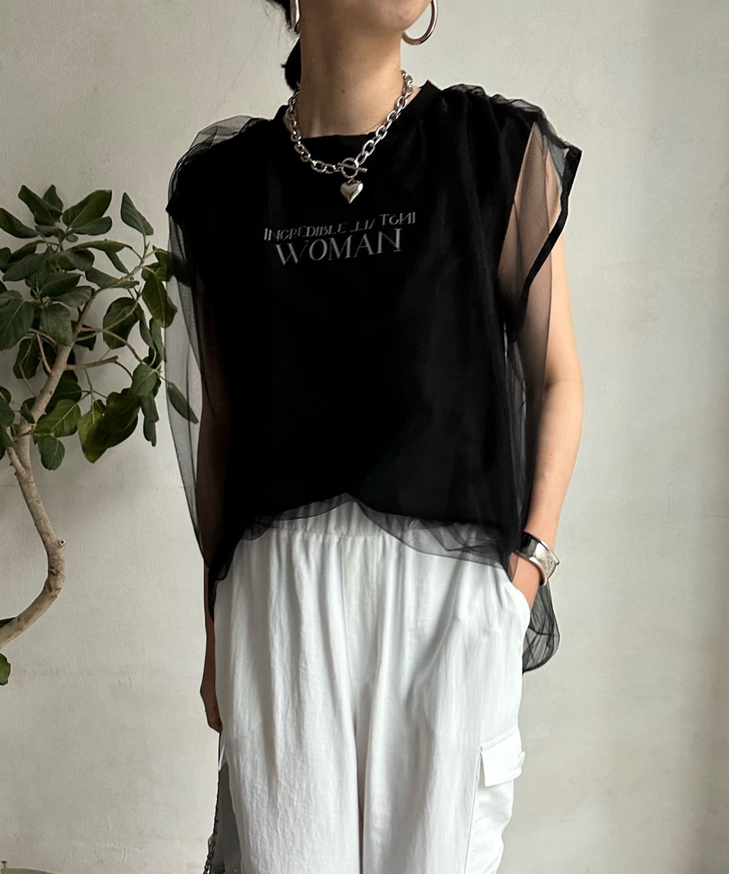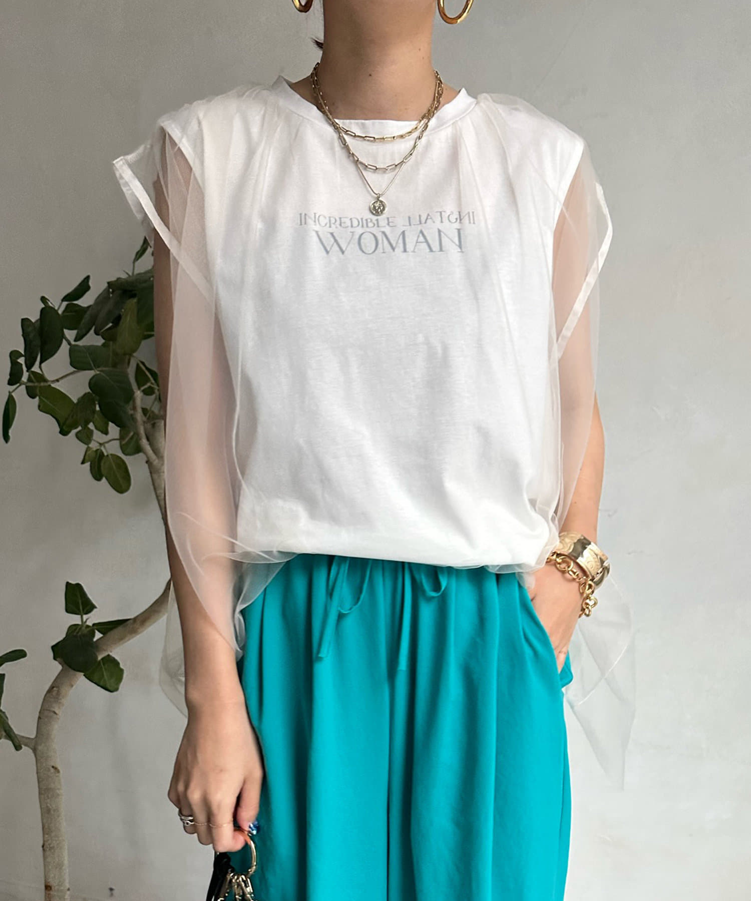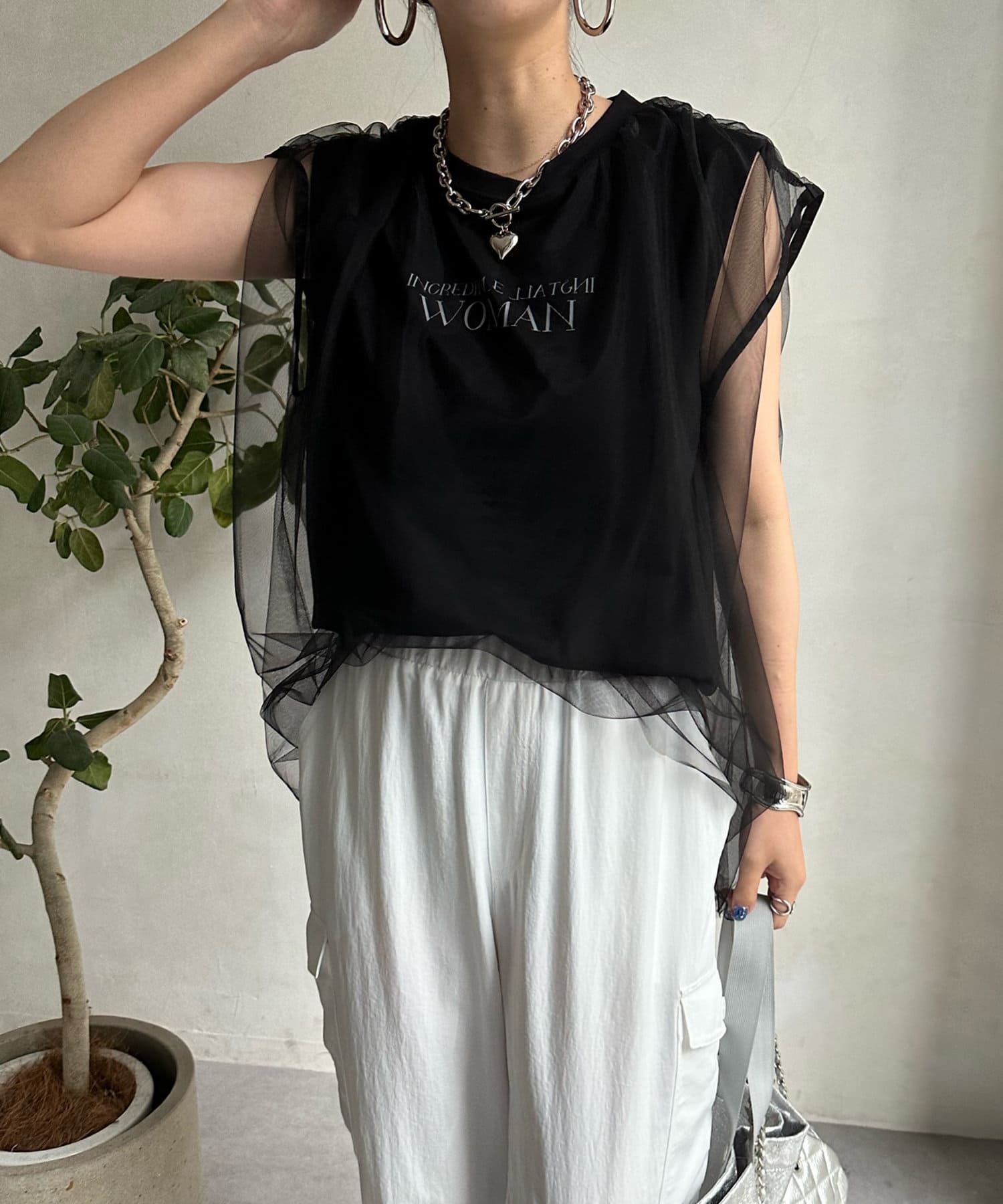 【WEB限定】チュールロゴレイヤーデザインTEE