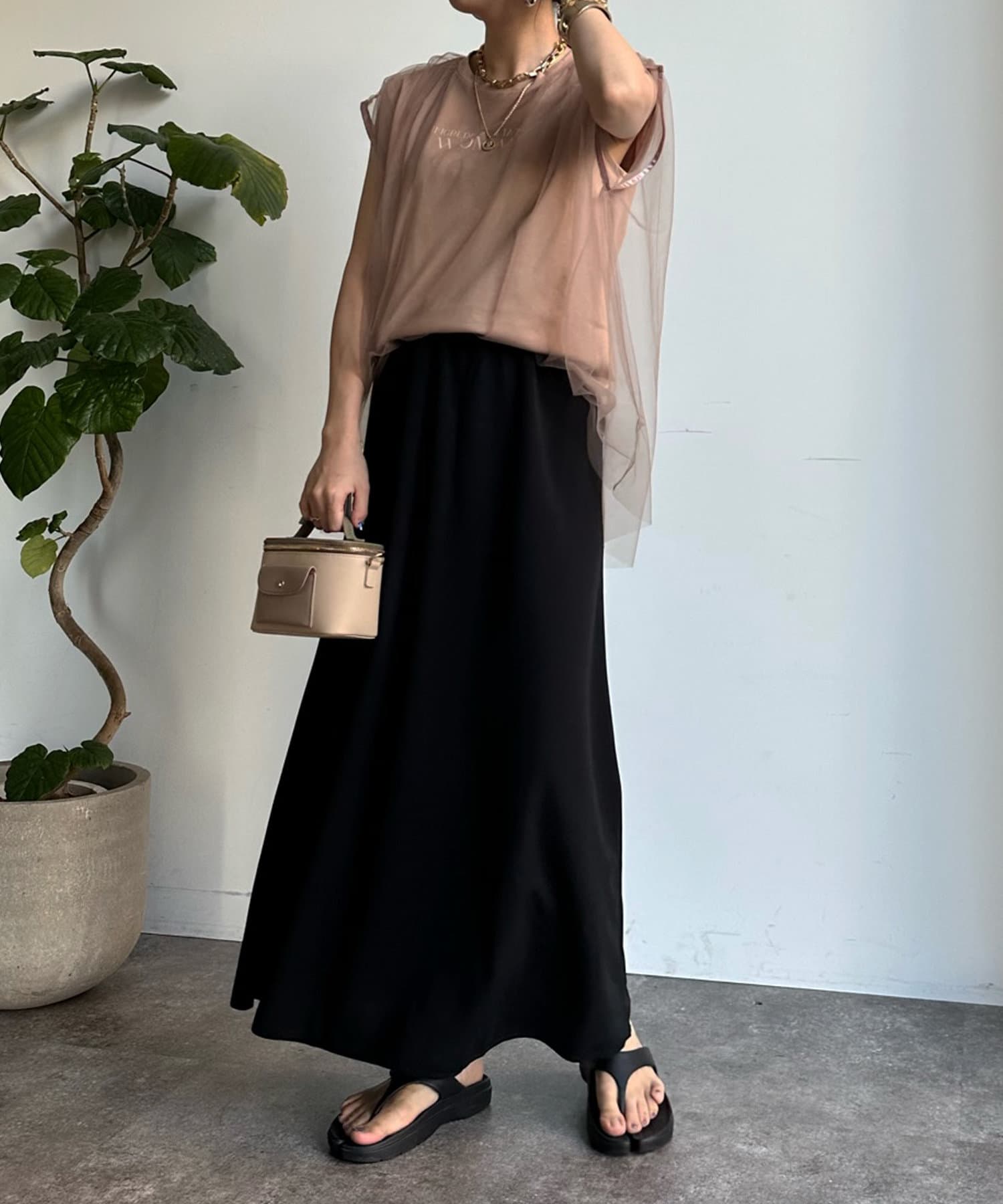 ひらっと軽い印象を与えるチュールデザインは、取り入れるだけで着映えてくれる優秀なポイント。