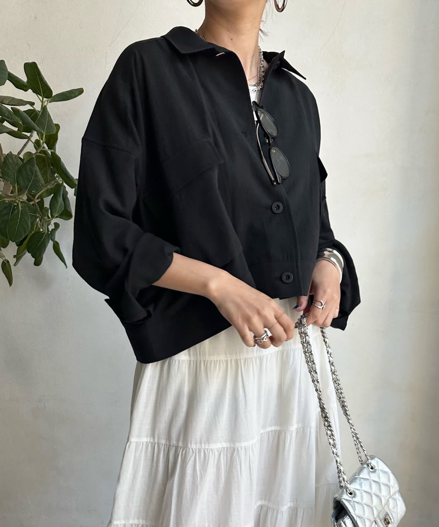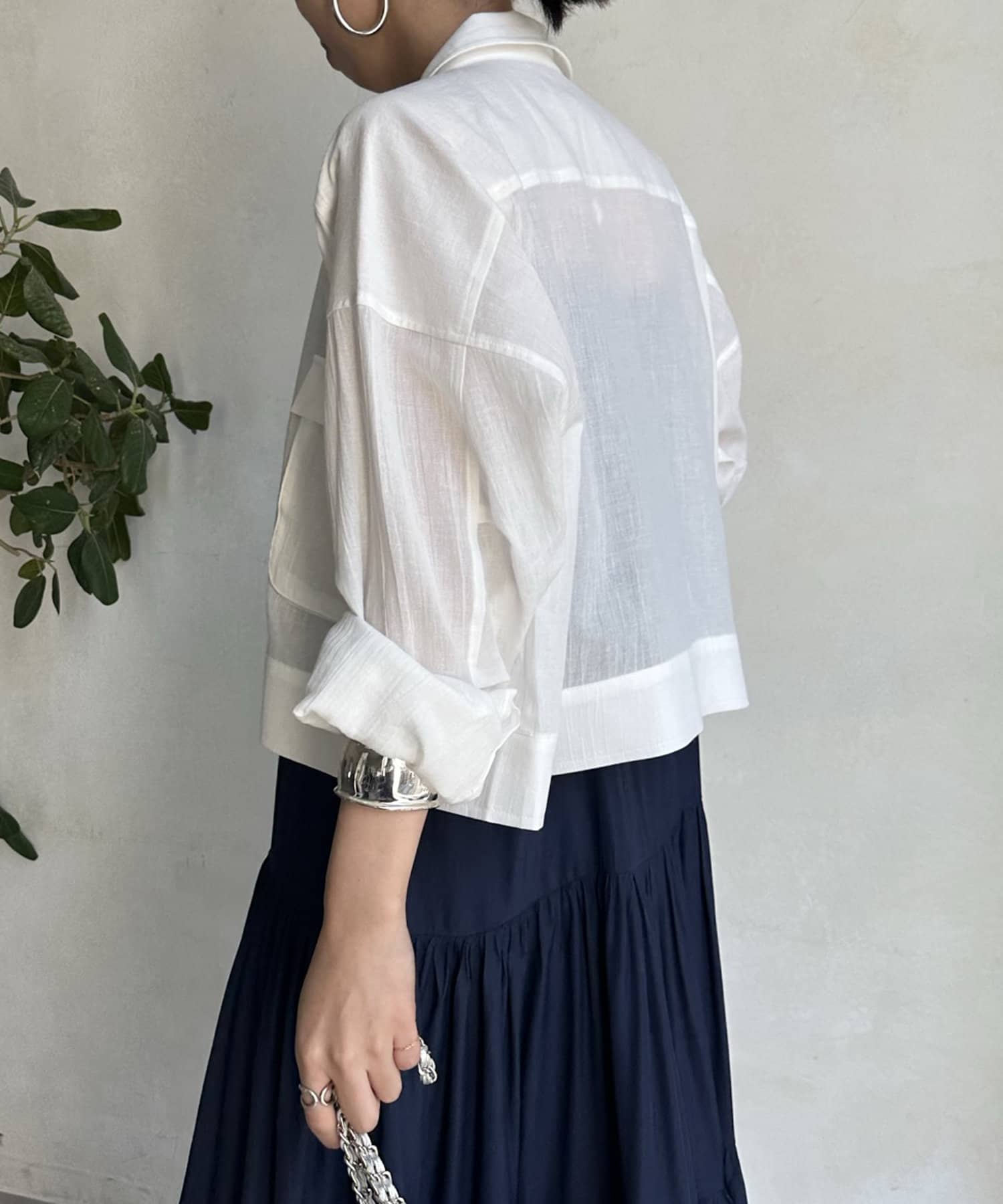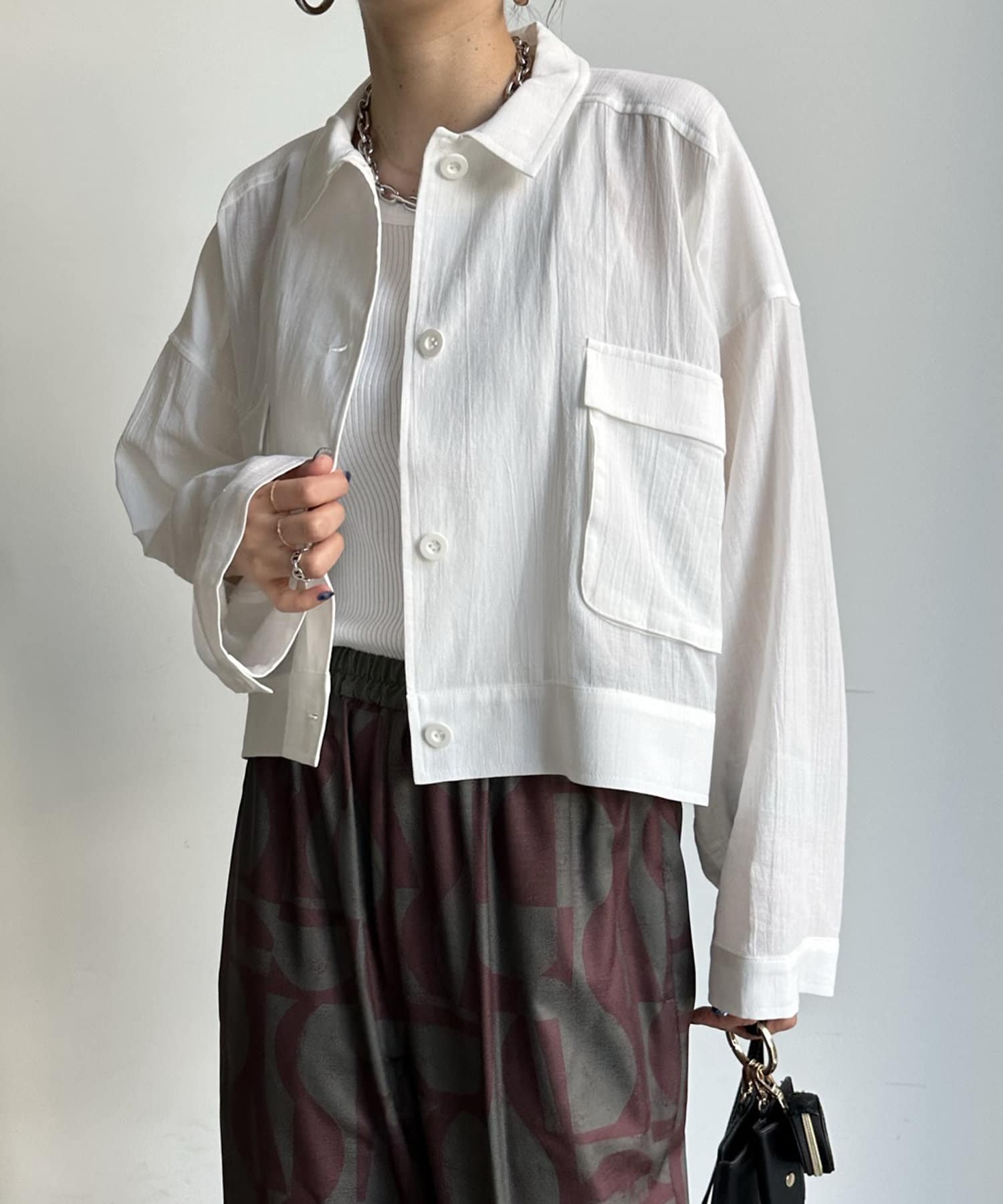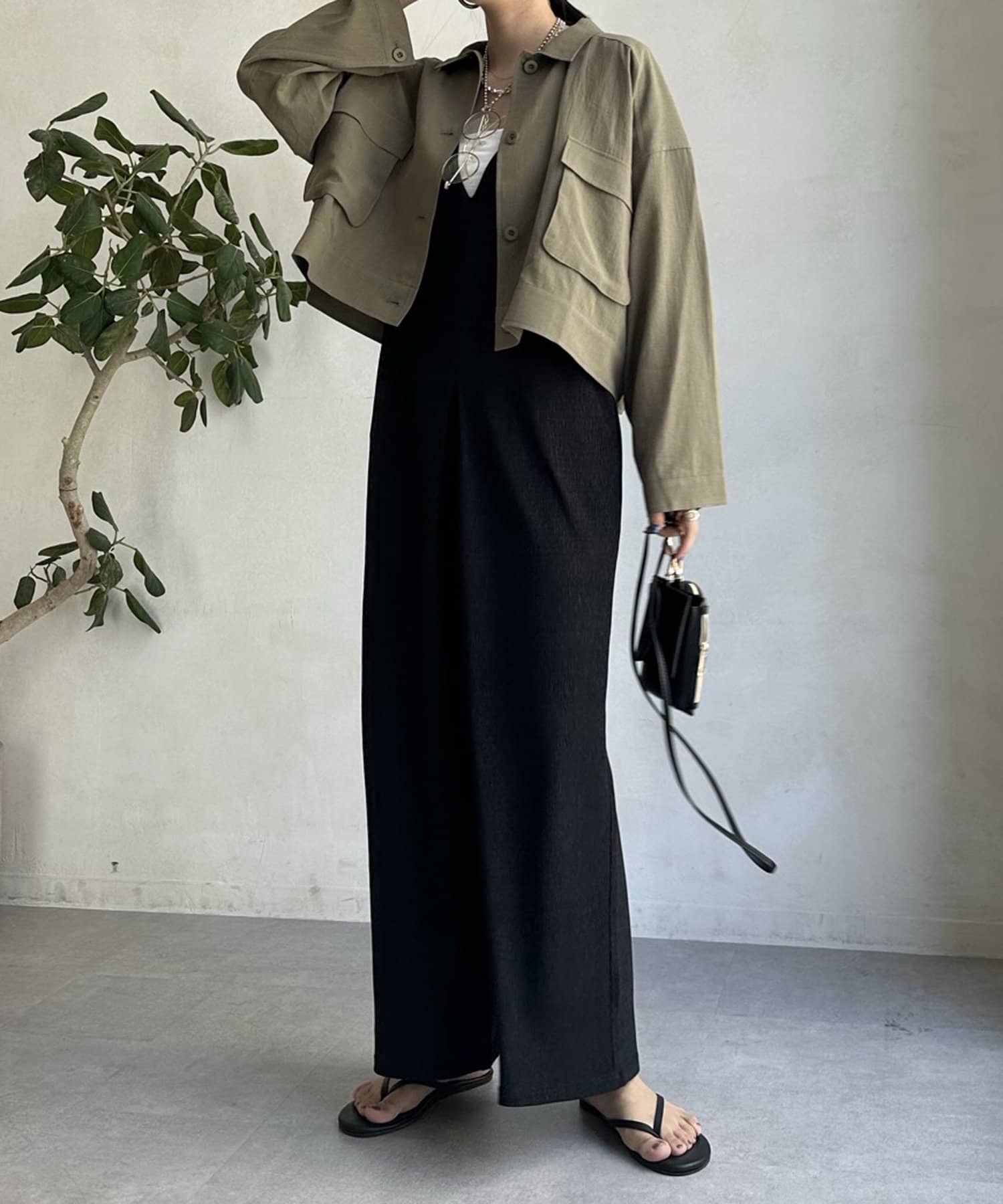 ワンピースの上から羽織ったり、キャミソールの上に羽織ったりするだけで大人カジュアルなスタイリングが完成。