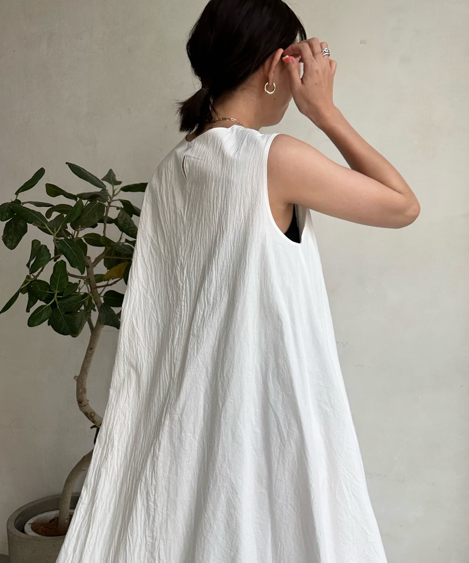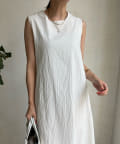 しわ加工を施したフレアシルエットのワンピース。