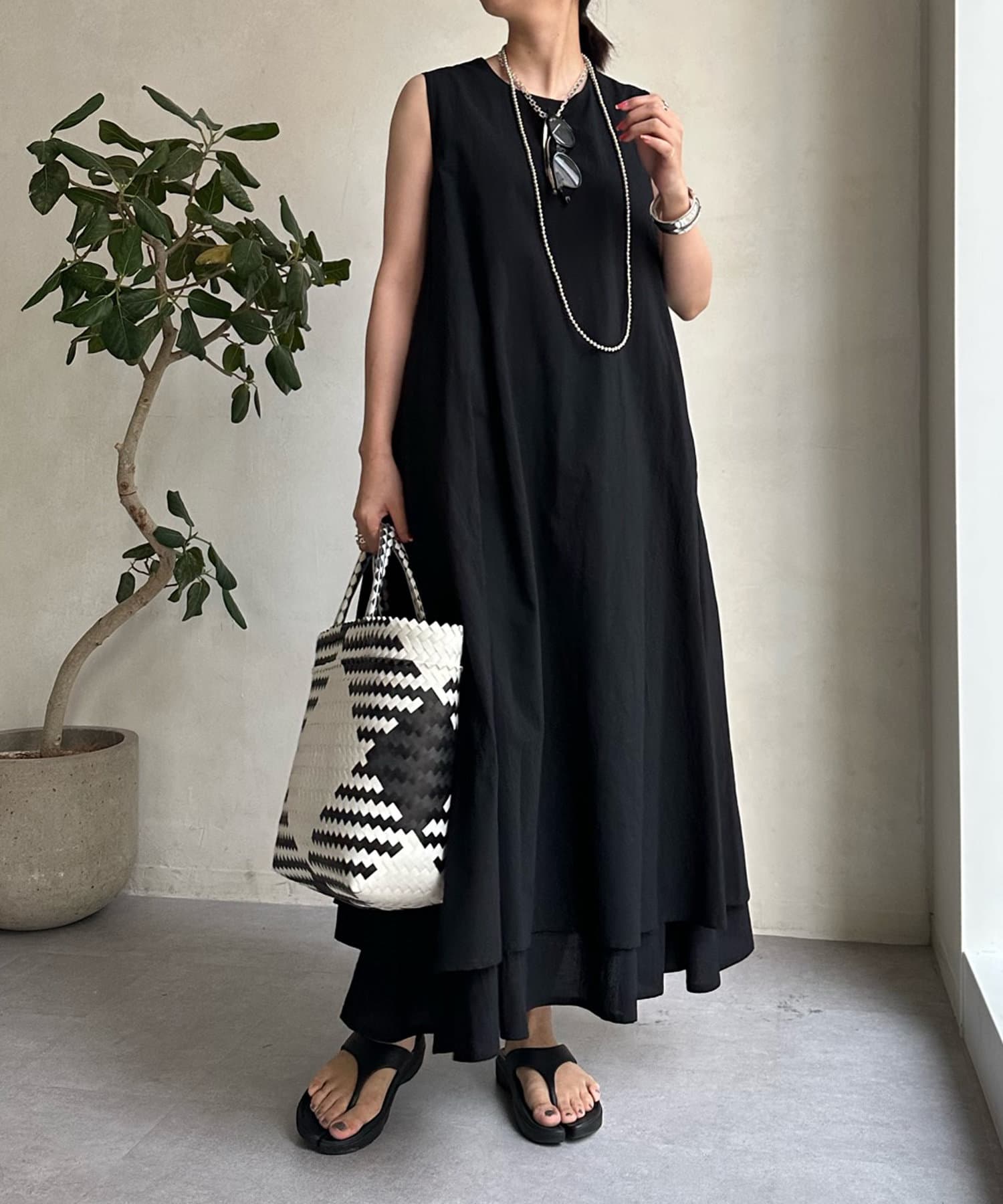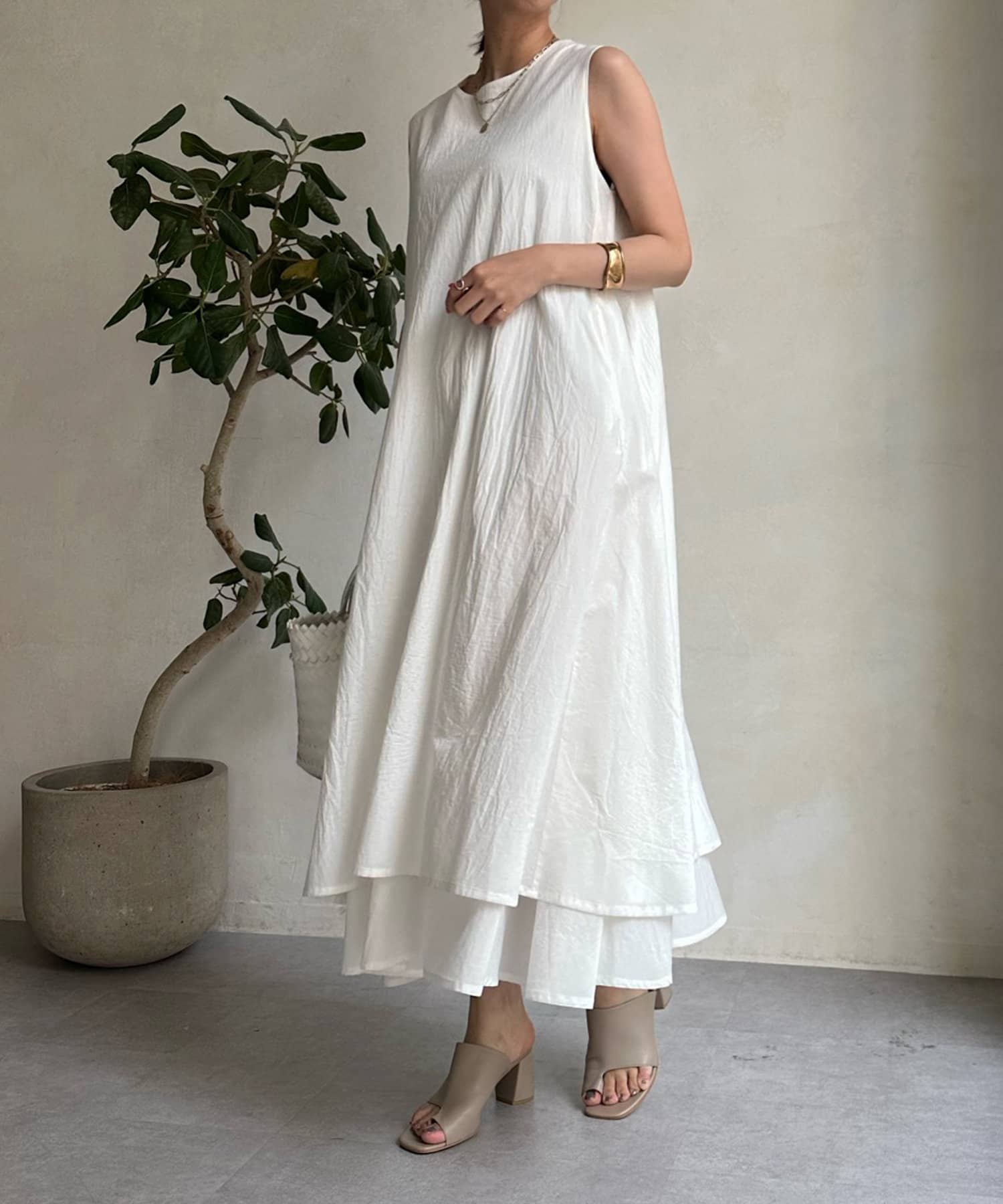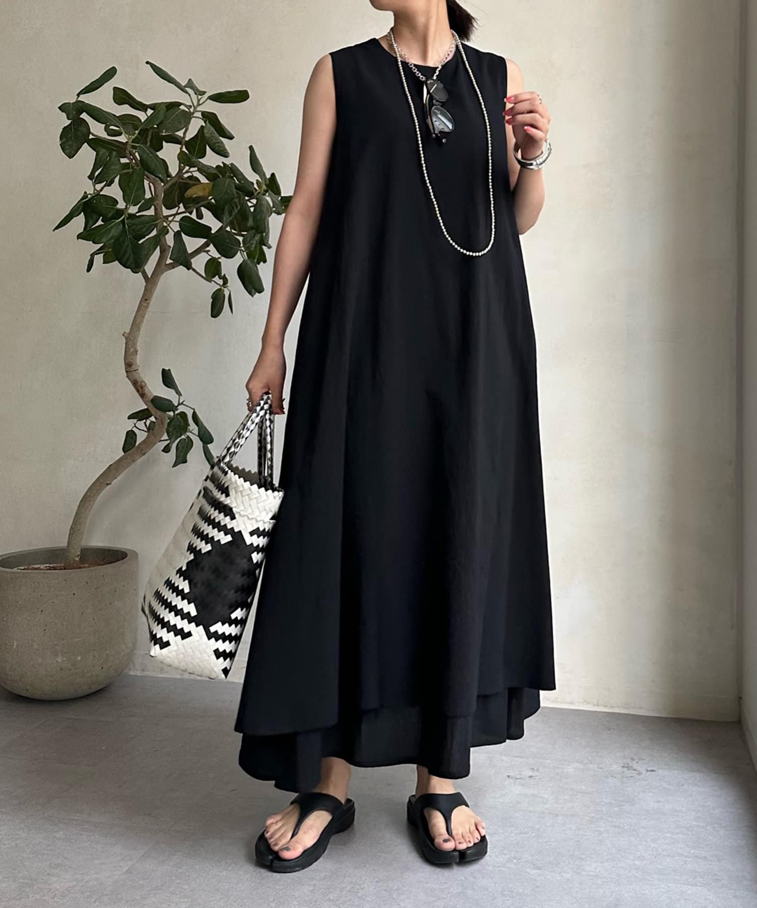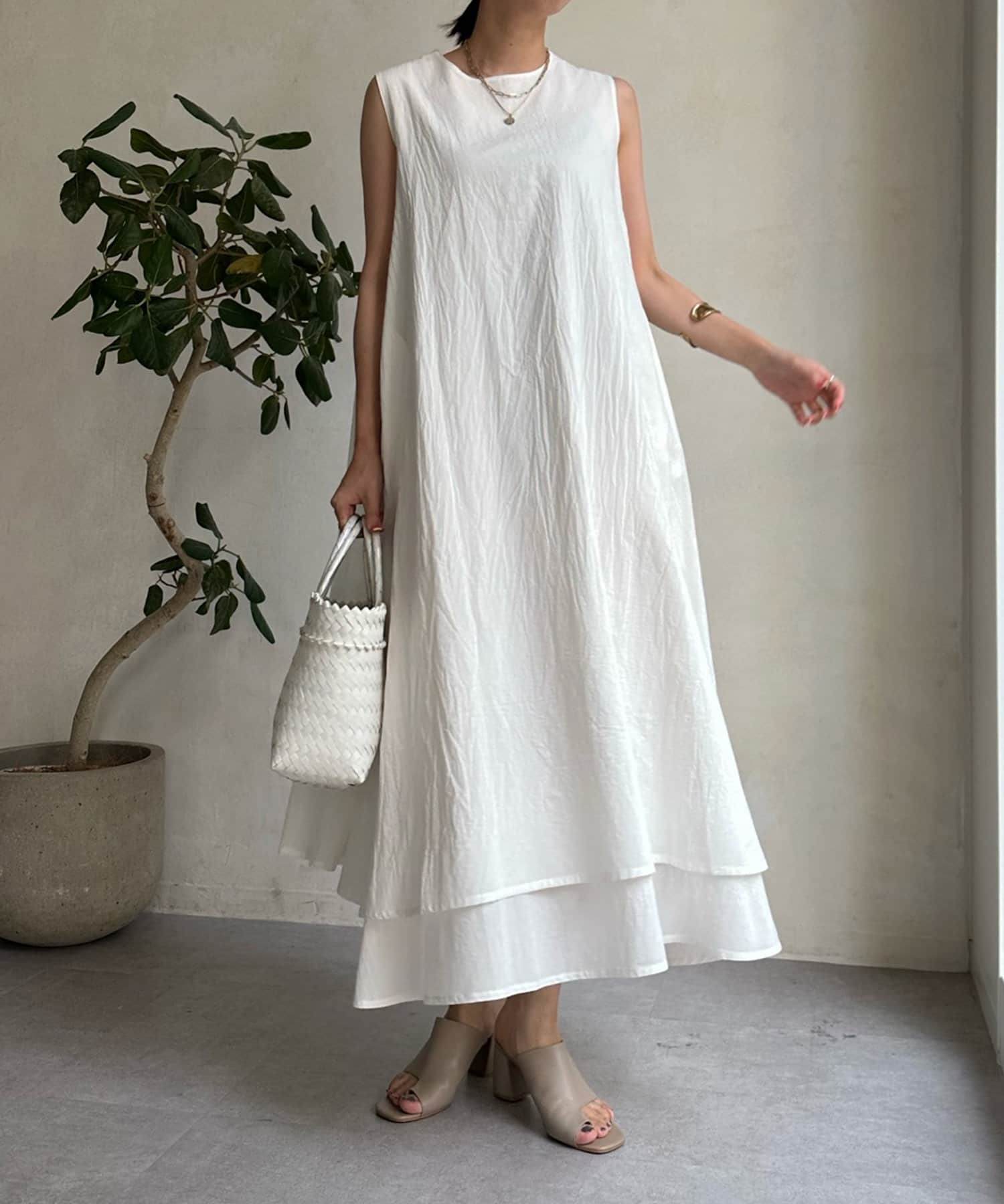 このワンピースだけで十分に存在感を発揮してくれるので、真夏も暑い日も簡単におしゃれが叶うアイテムとして大活躍。