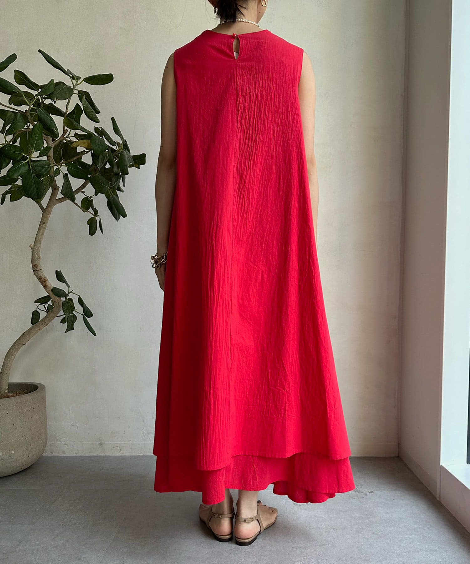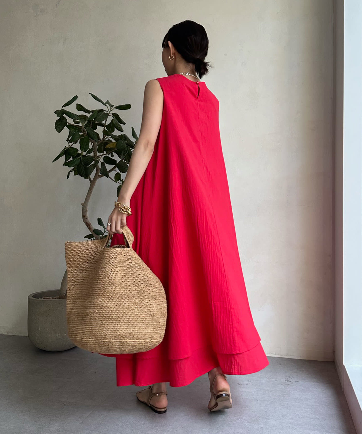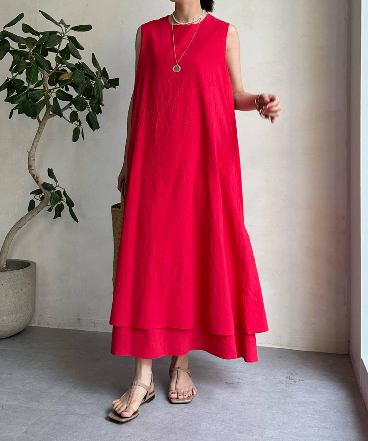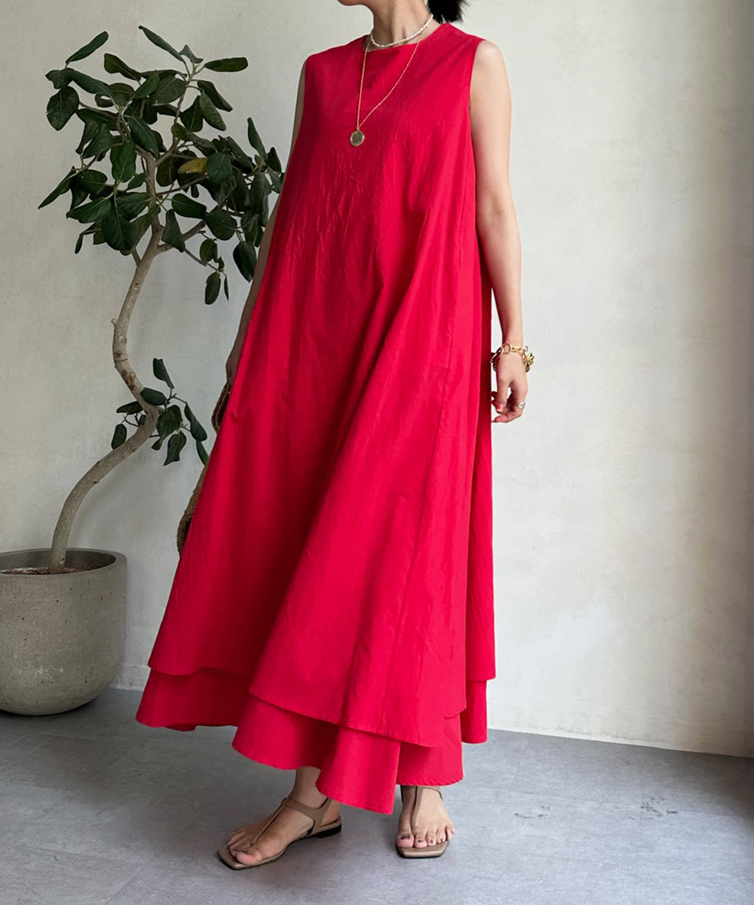 このワンピースだけで十分に存在感を発揮してくれるので、真夏も暑い日も簡単におしゃれが叶うアイテムとして大活躍。