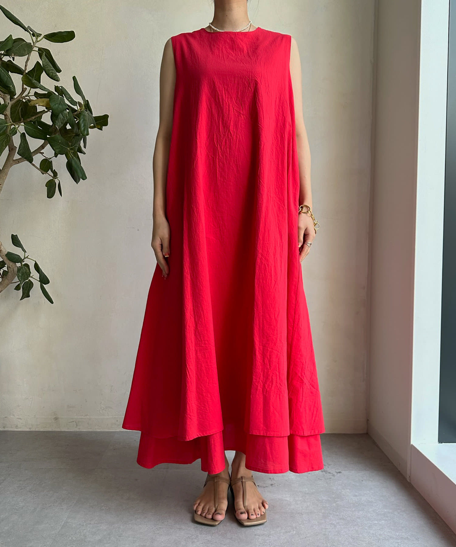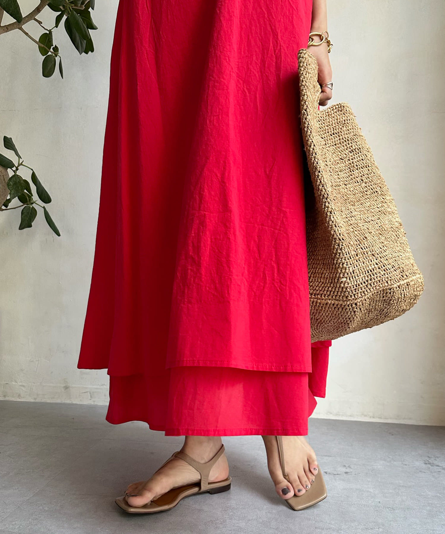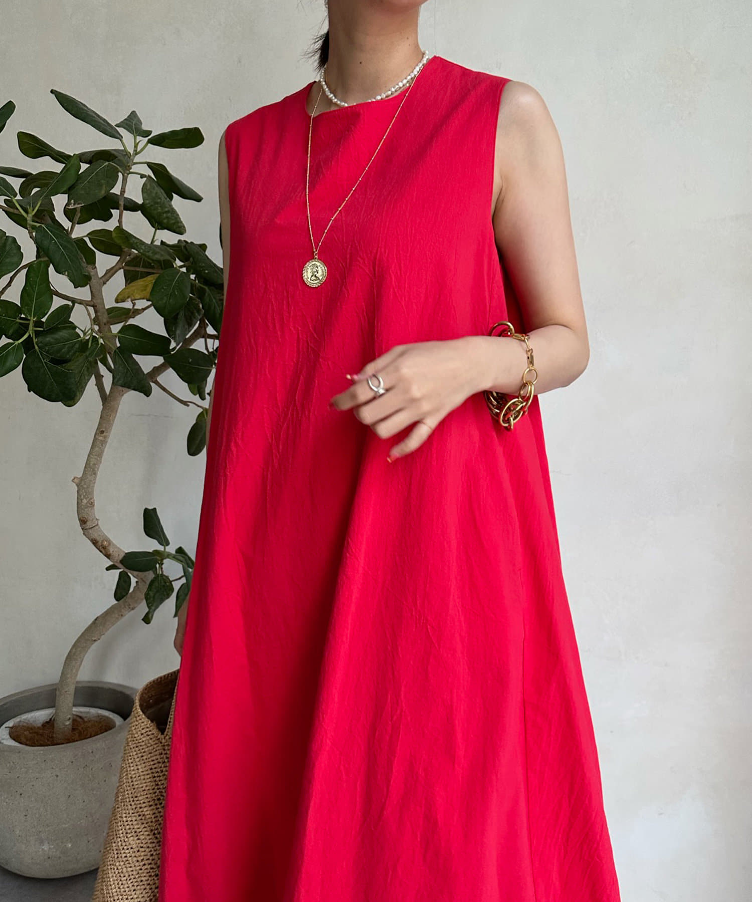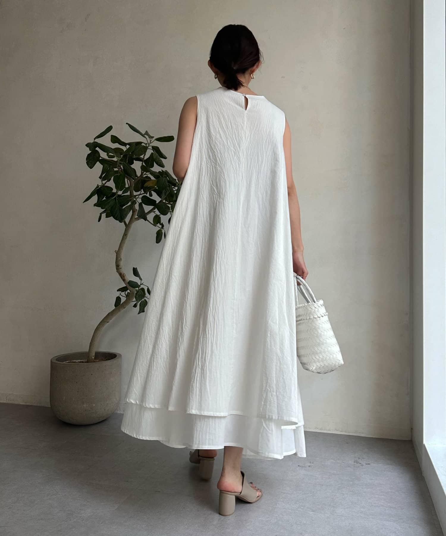 このワンピースだけで十分に存在感を発揮してくれるので、真夏も暑い日も簡単におしゃれが叶うアイテムとして大活躍。