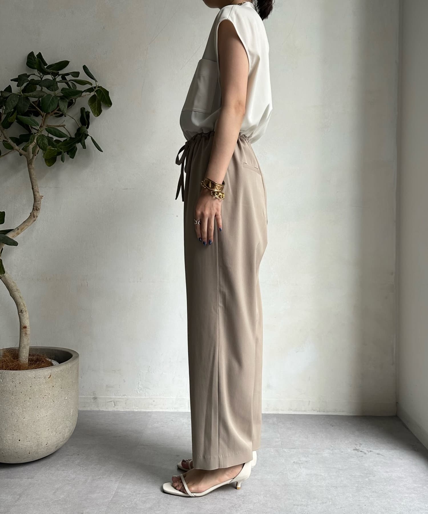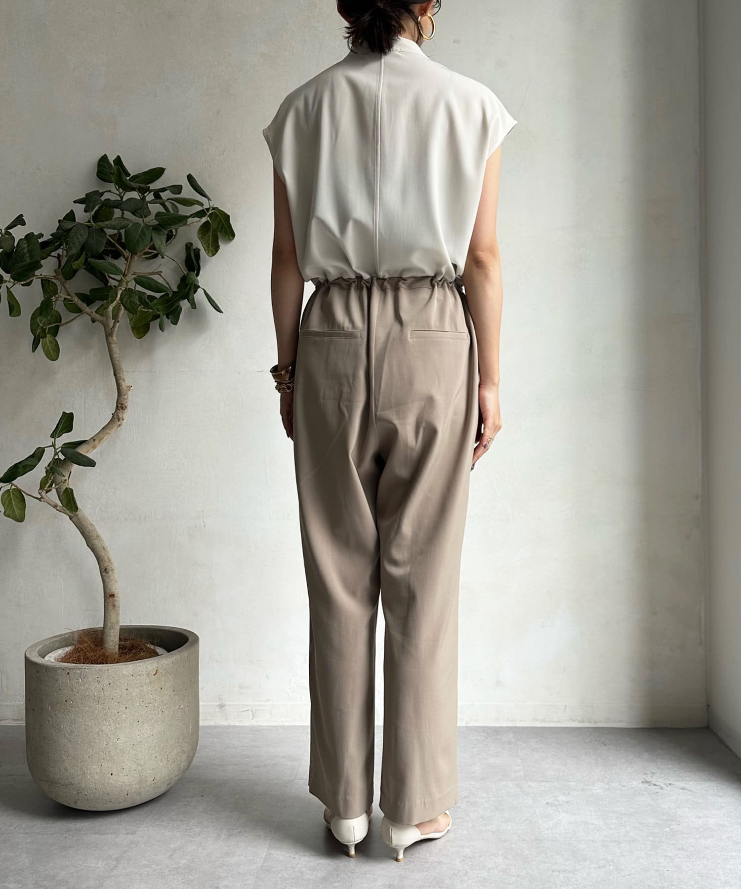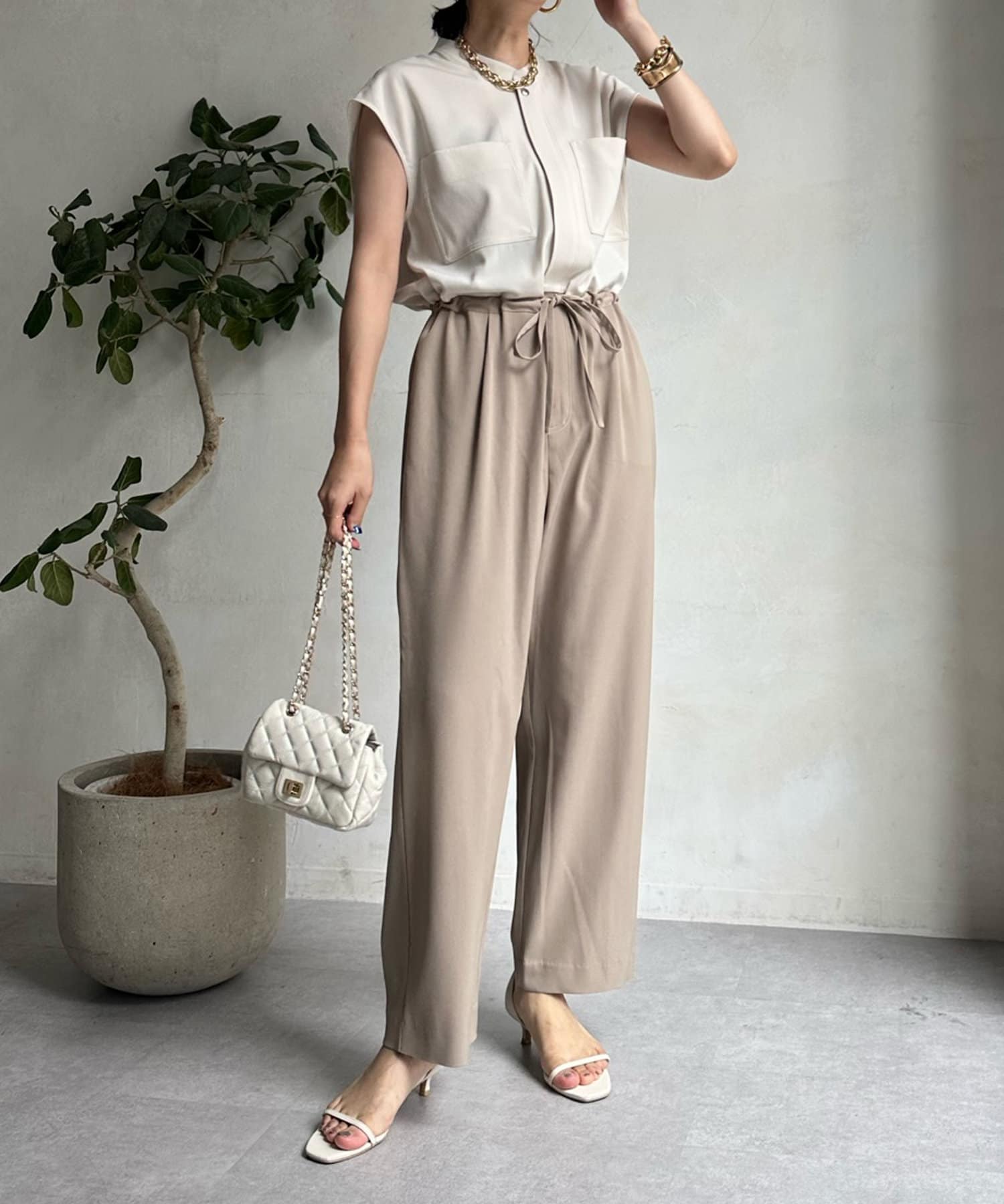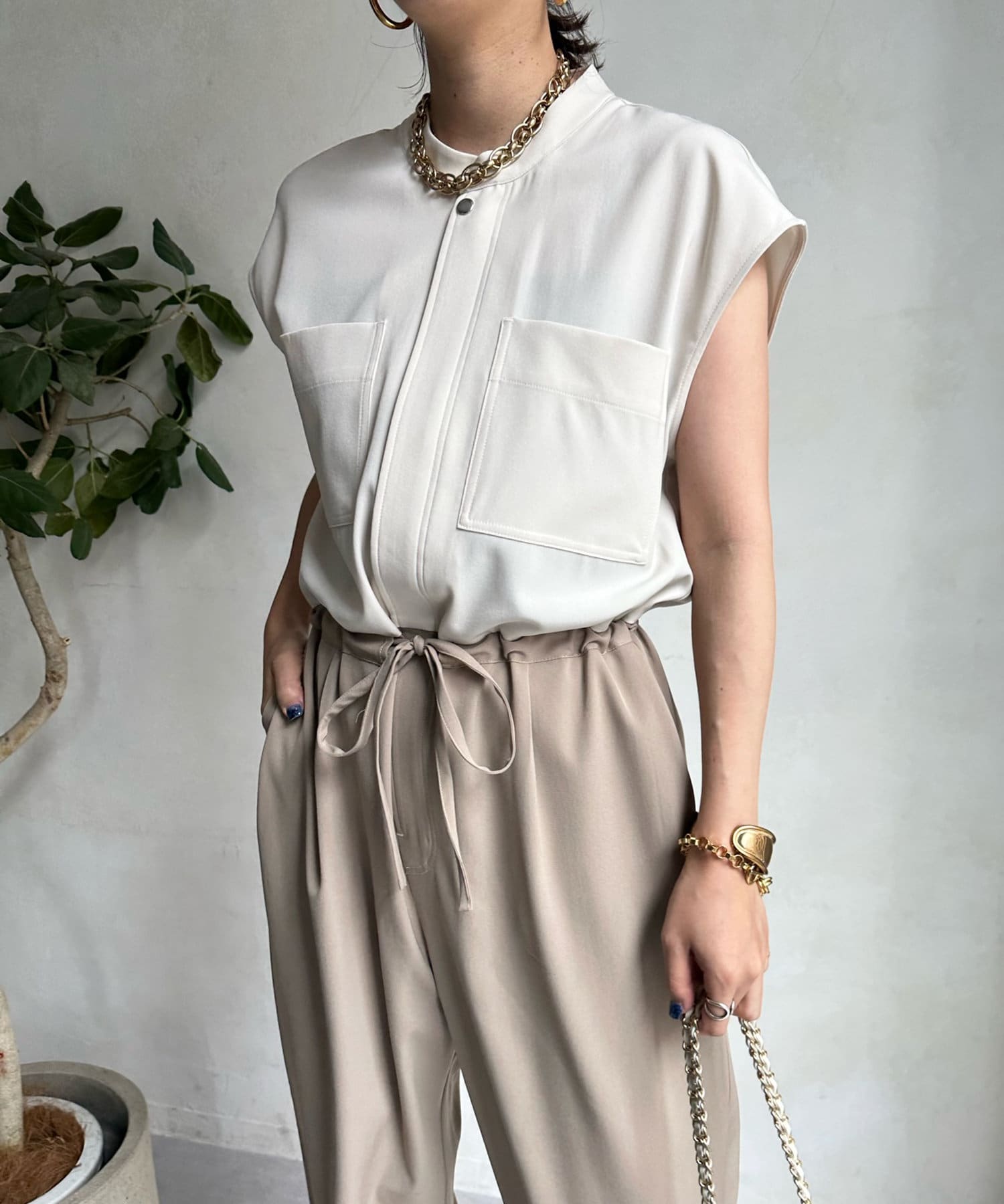カジュアルなワークディティールと落ち感のあるシルエットがマッチした、好バランスな大人コンビネゾンに仕上げました。