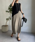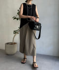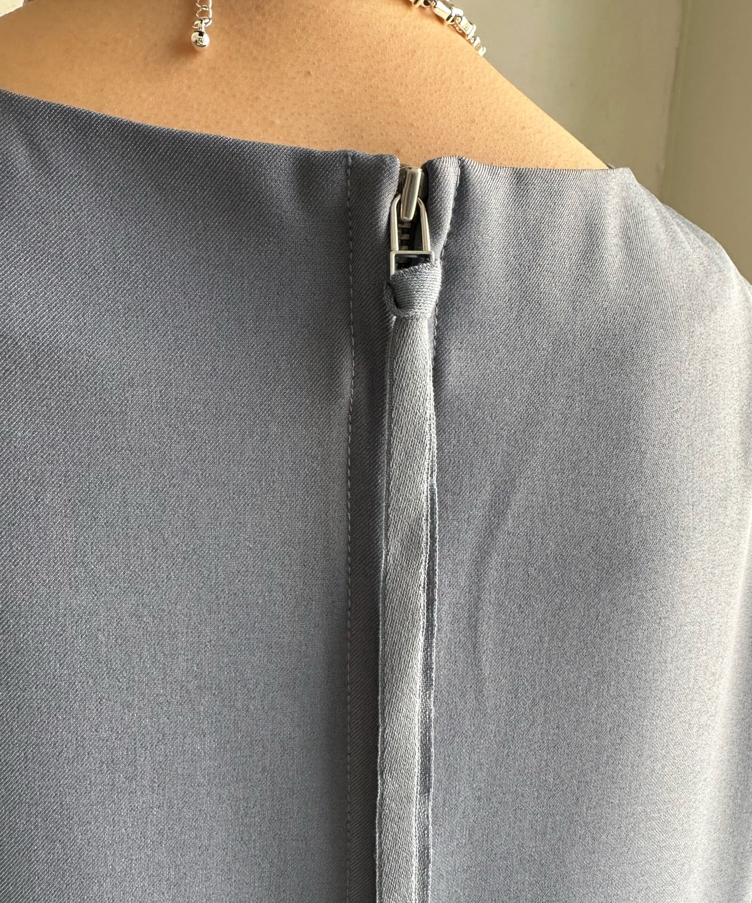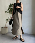 裾にスリットと、表面斜めに切り替えを加えることで全体的にすっきりした印象に。