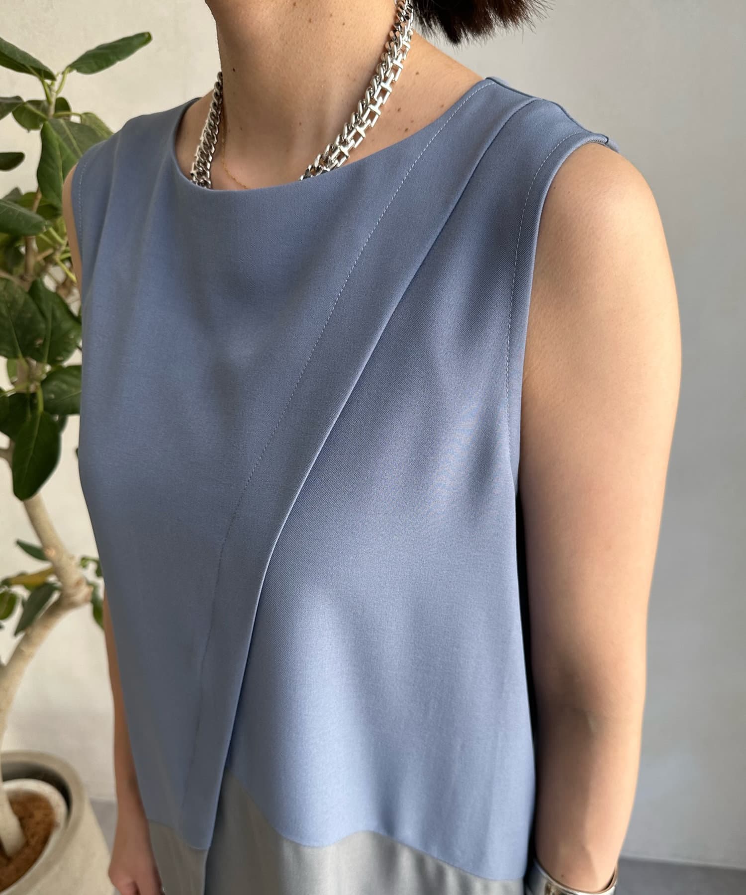 暑い季節に嬉しい肌当たりのいい素材感で、シンプルで使い勝手のいいアウトラインの中に、 バイカラーでアクセントを加えました。