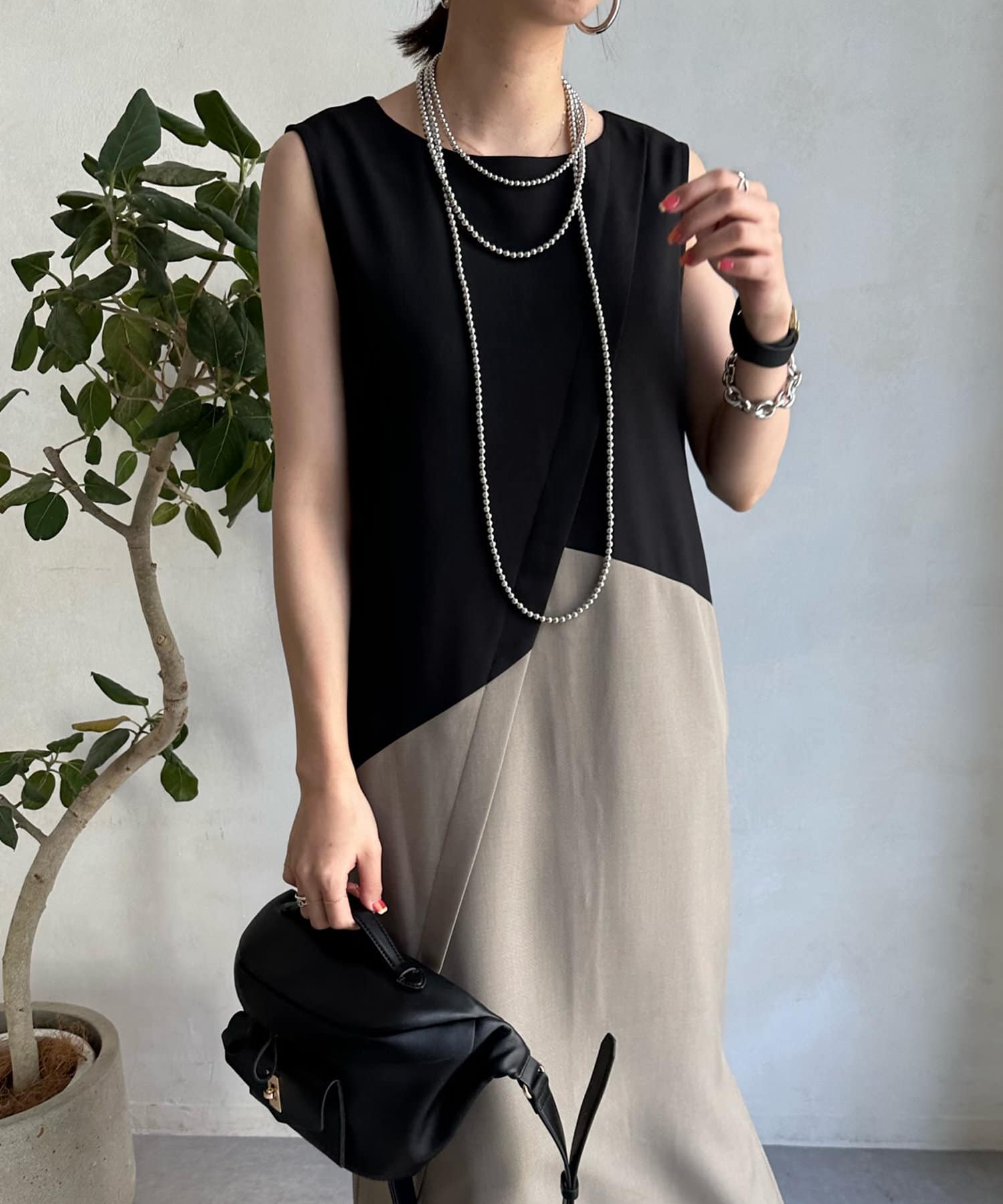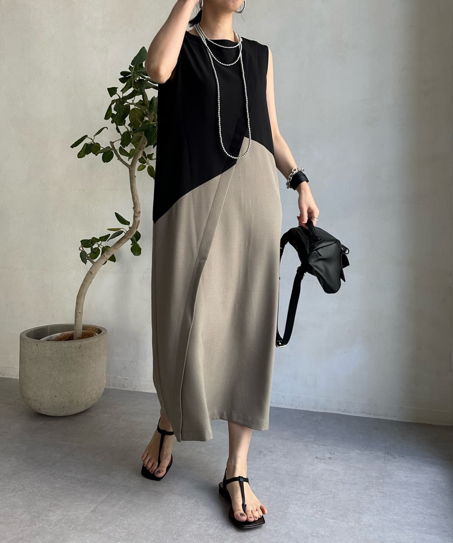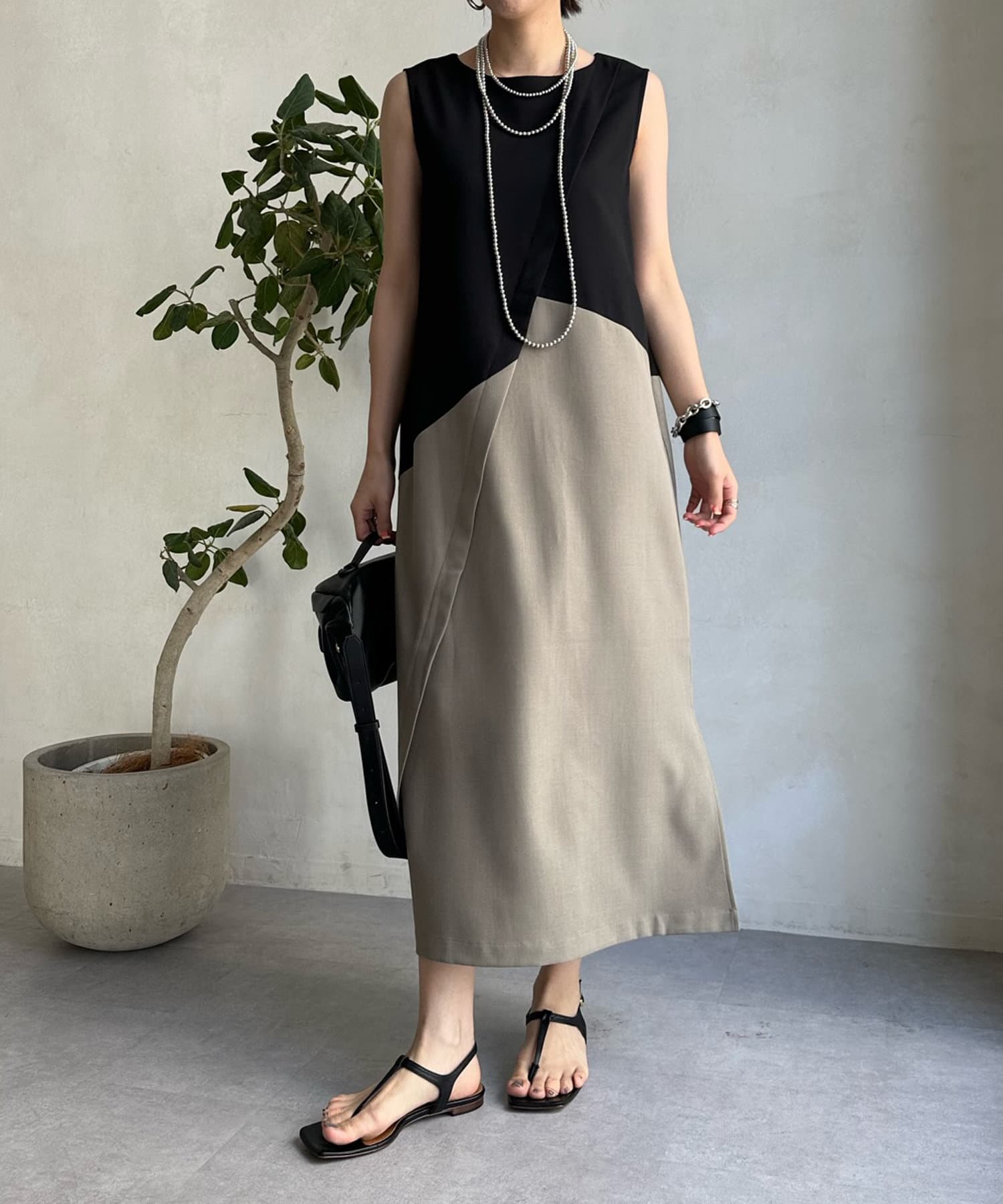 1枚で様になる、夏に活躍すること間違いなしのバイカラーワンピース。