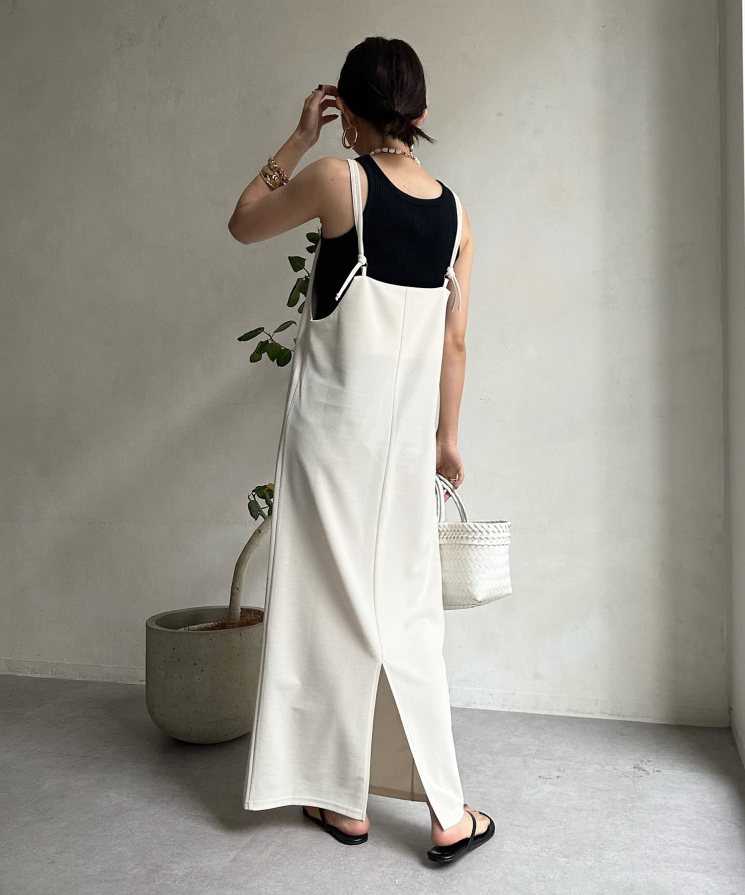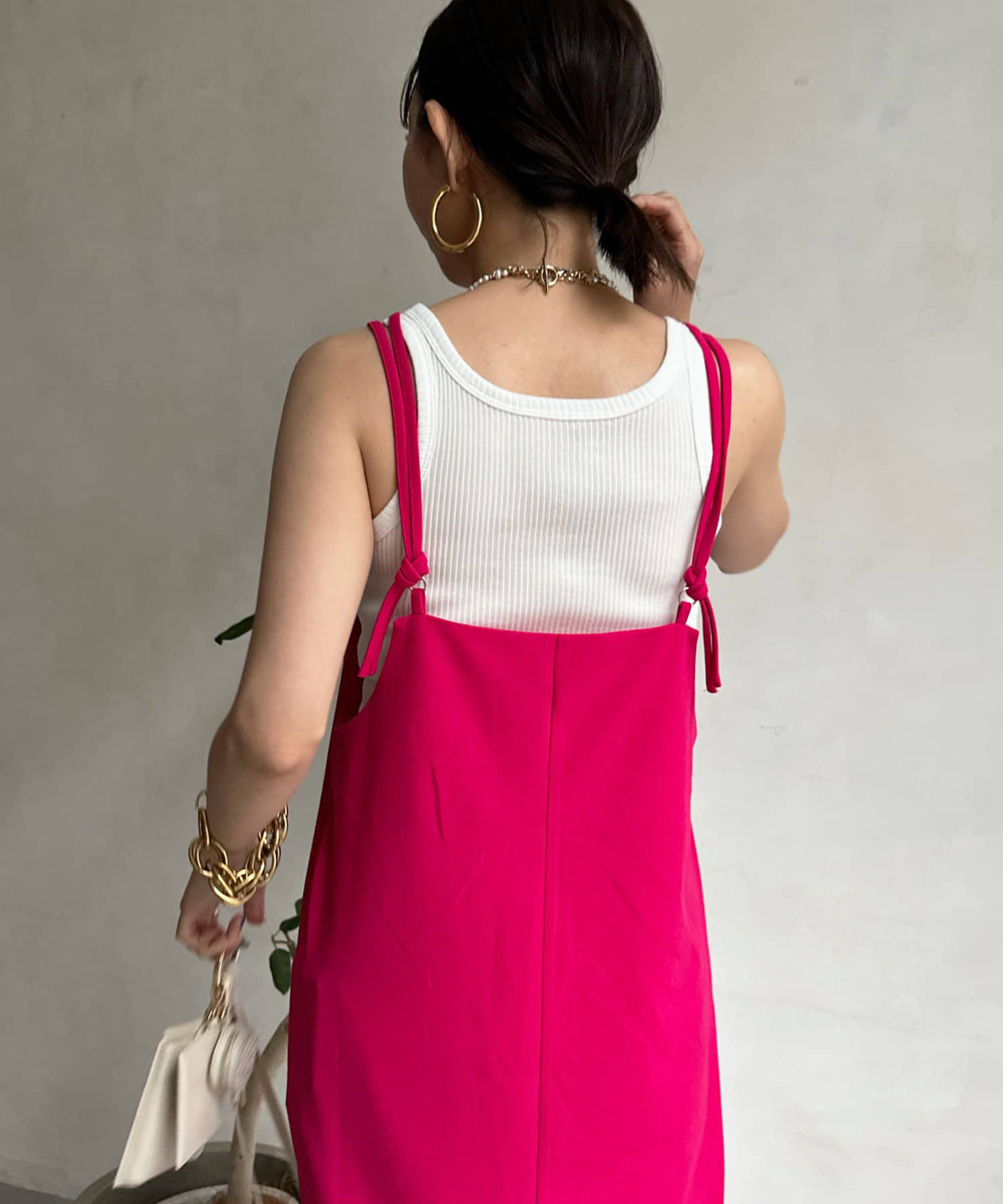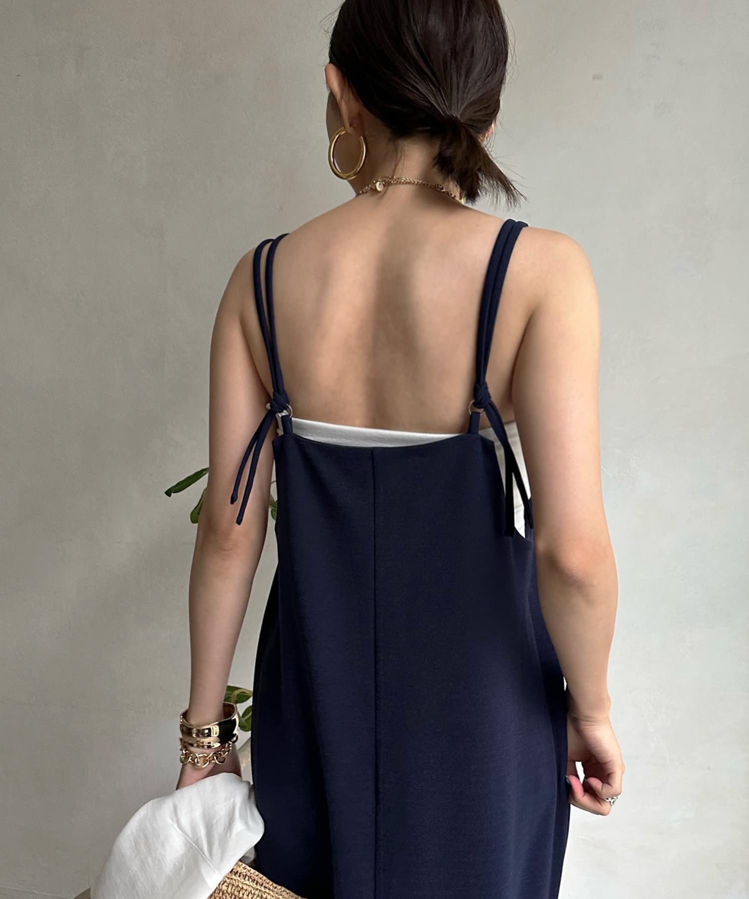 2本の肩紐はお好みの結び方でアレンジして、着こなしを楽しんで頂けます◎