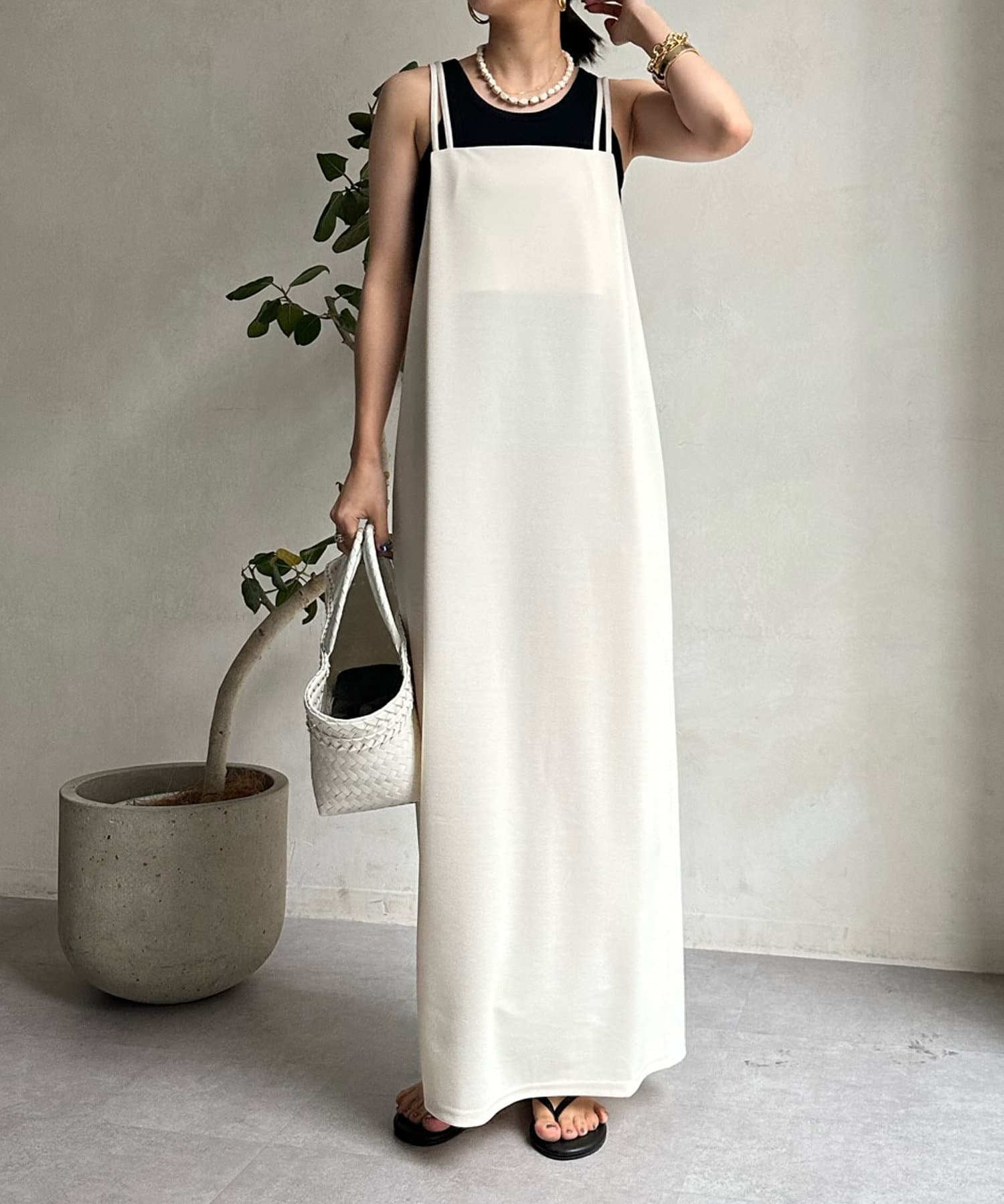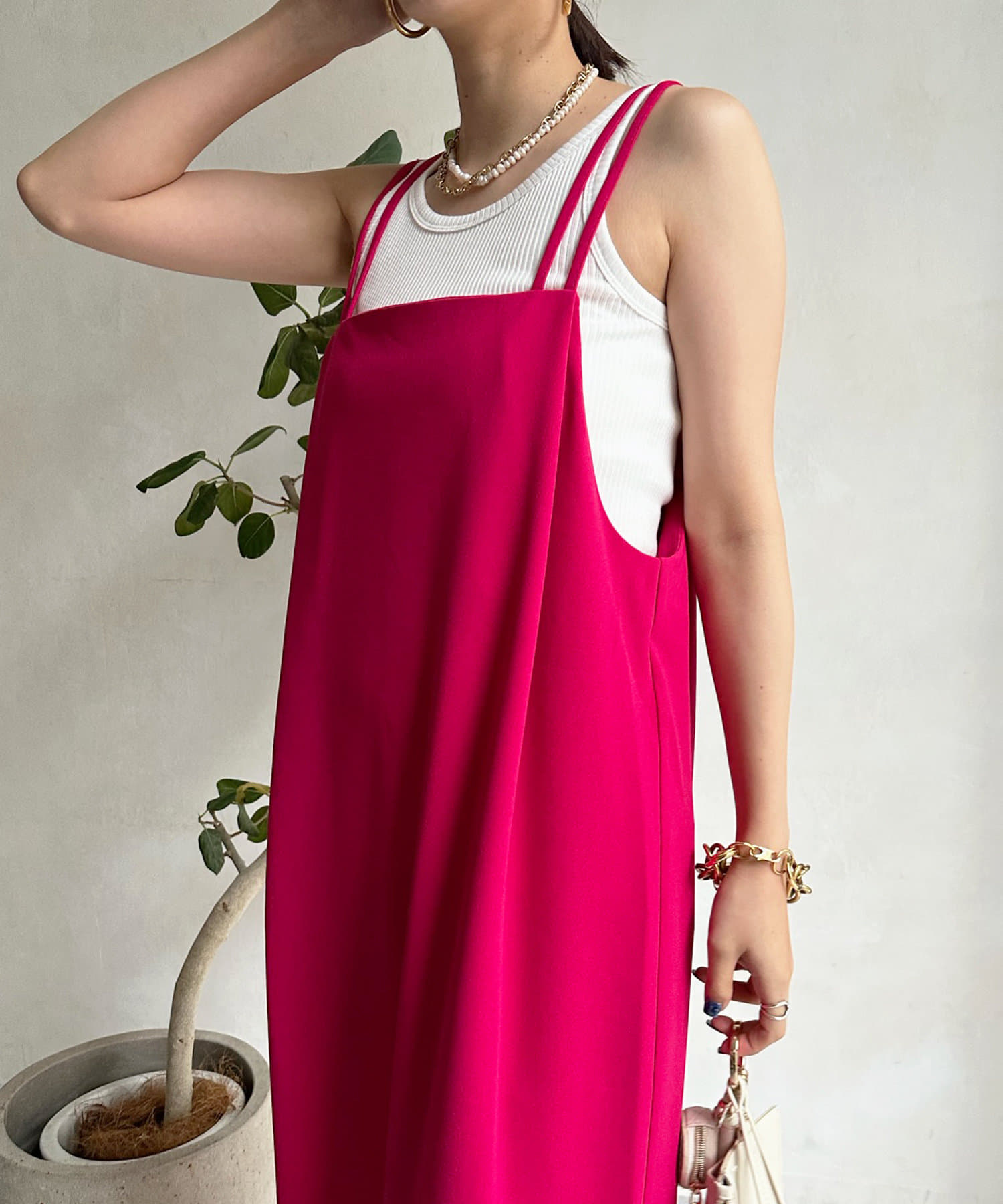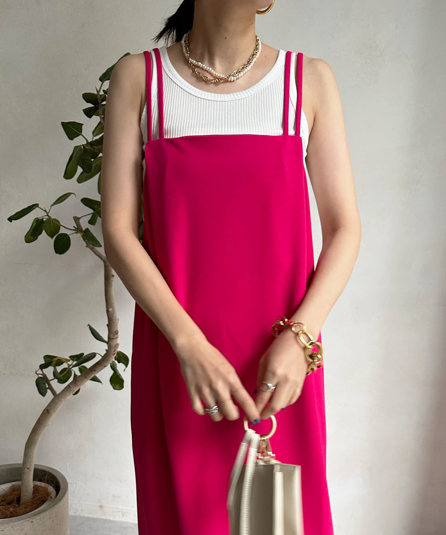 2本の肩紐はお好みの結び方でアレンジして、着こなしを楽しんで頂けます◎