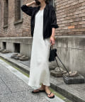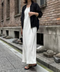 デコルテを綺麗に見せてくれる、程よいネックラインの開き具合で、大人の余裕感を醸します。