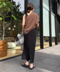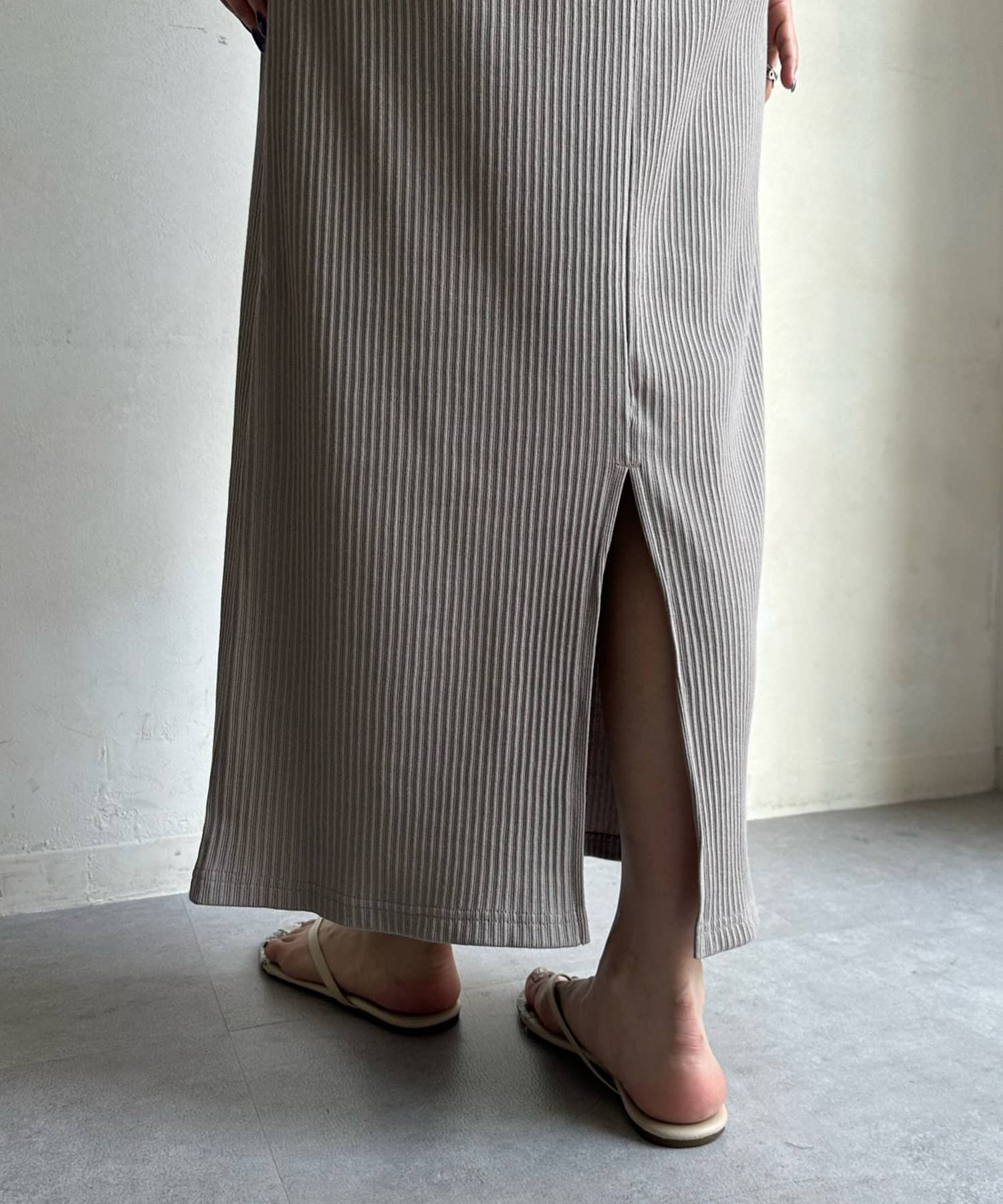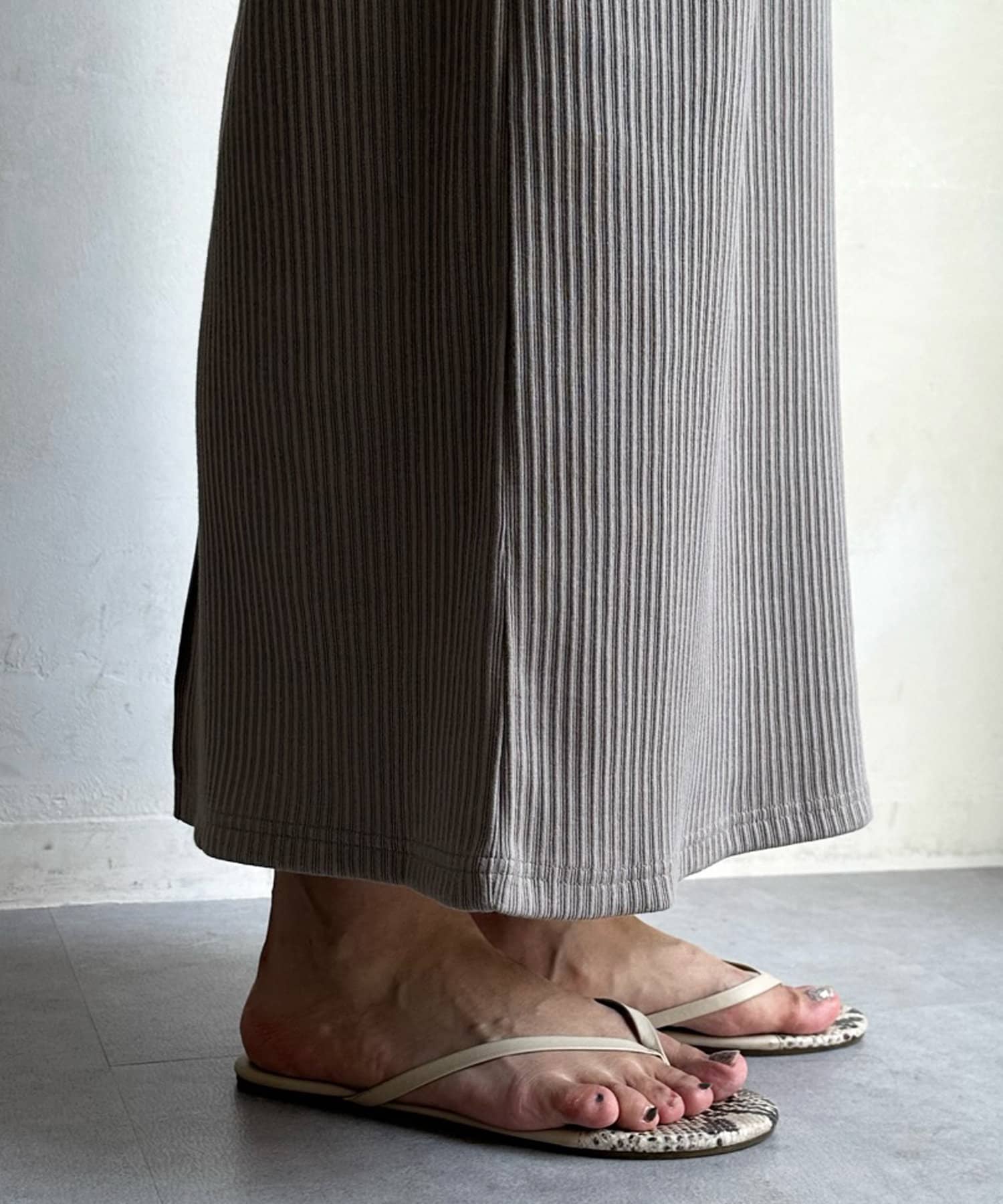 伸びのいいリブ素材がストレスフリーな上、裾のセンターにはスリットをプラスし、足さばきの良さもキープ。