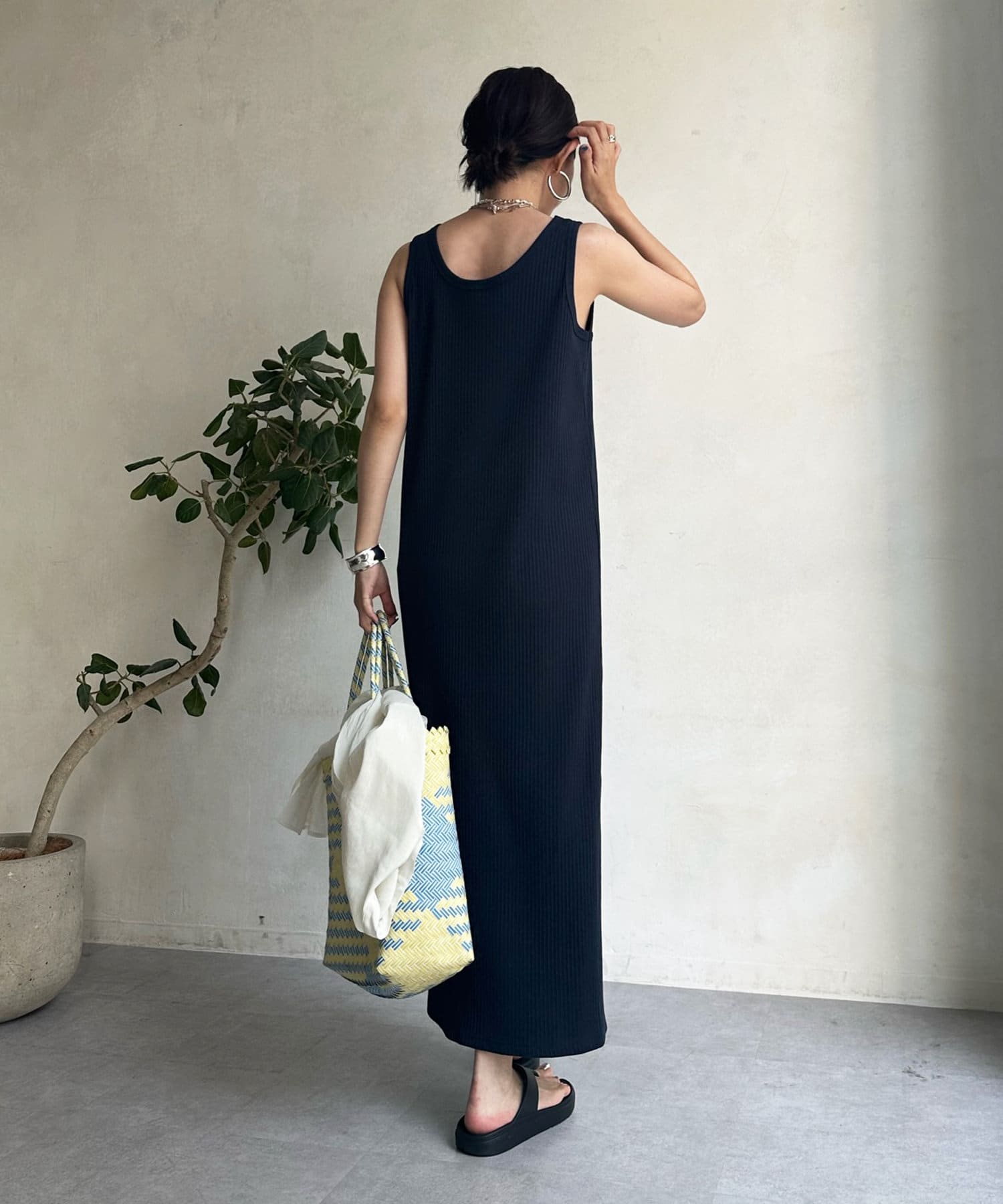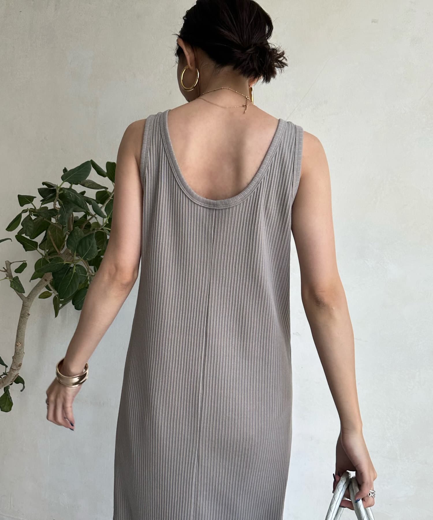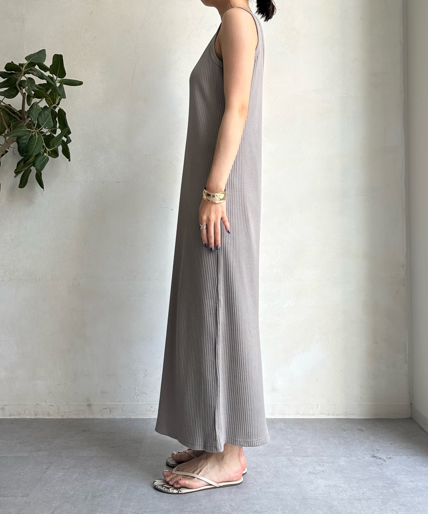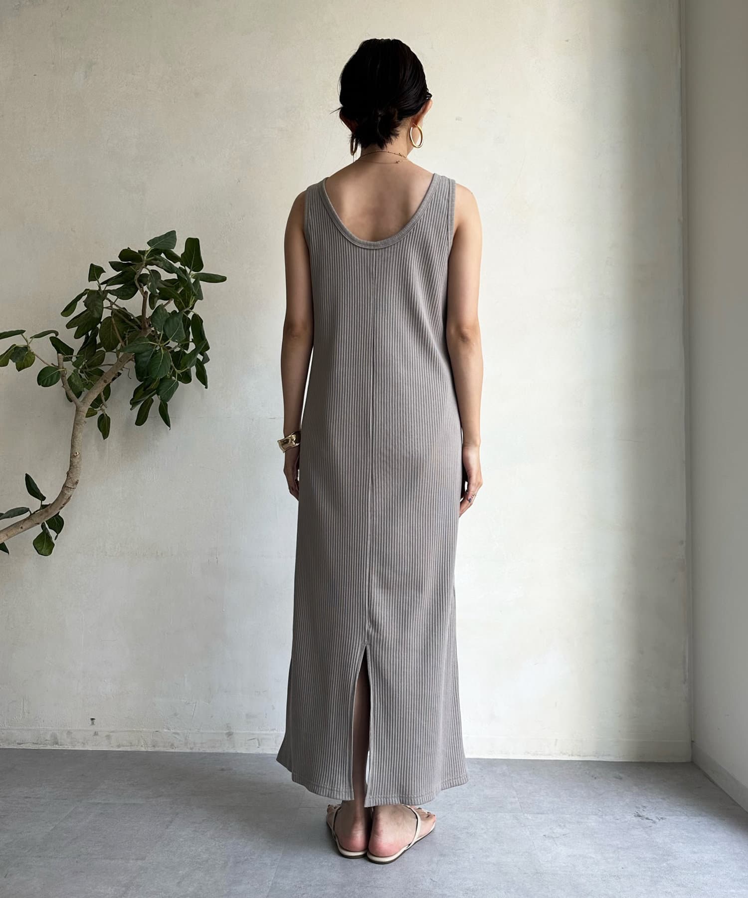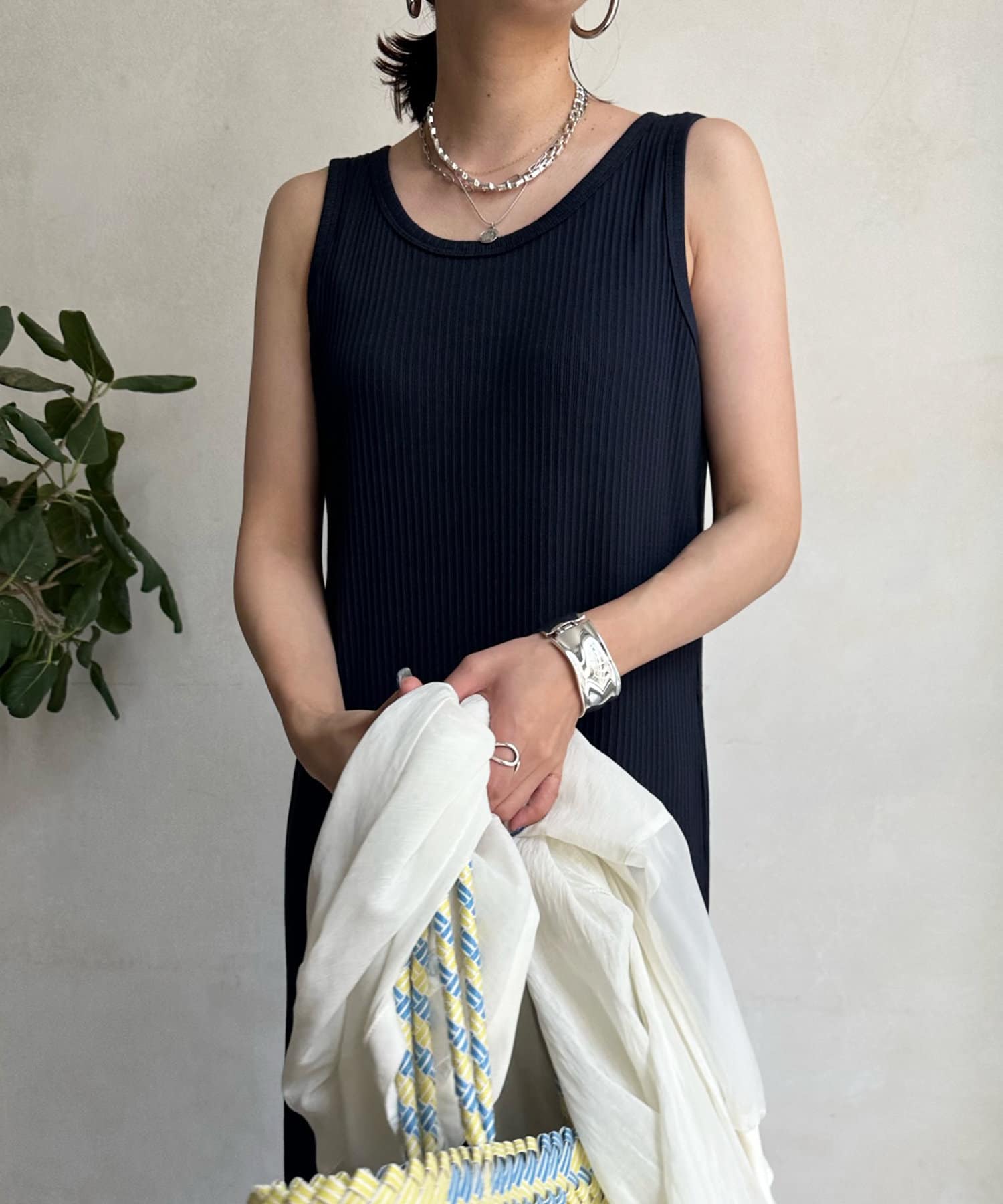 伸びやかなリブ素材で仕上げた前後2wayのタンクワンピース。