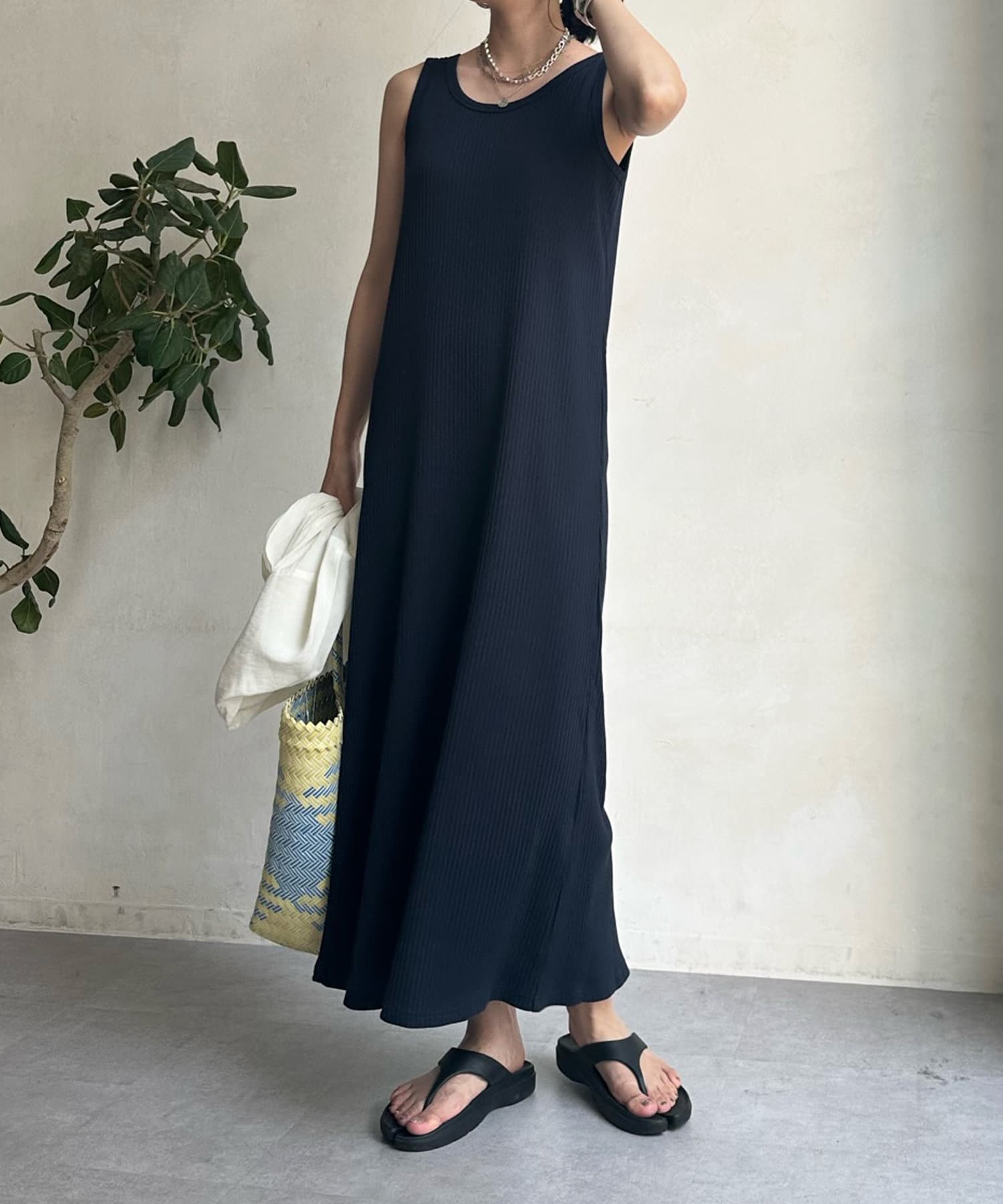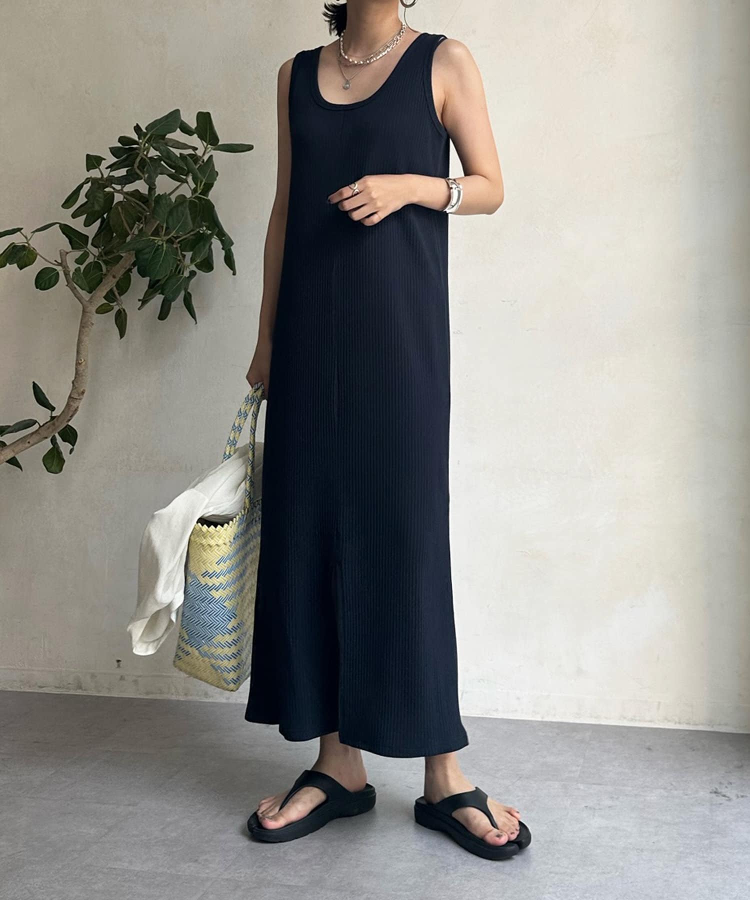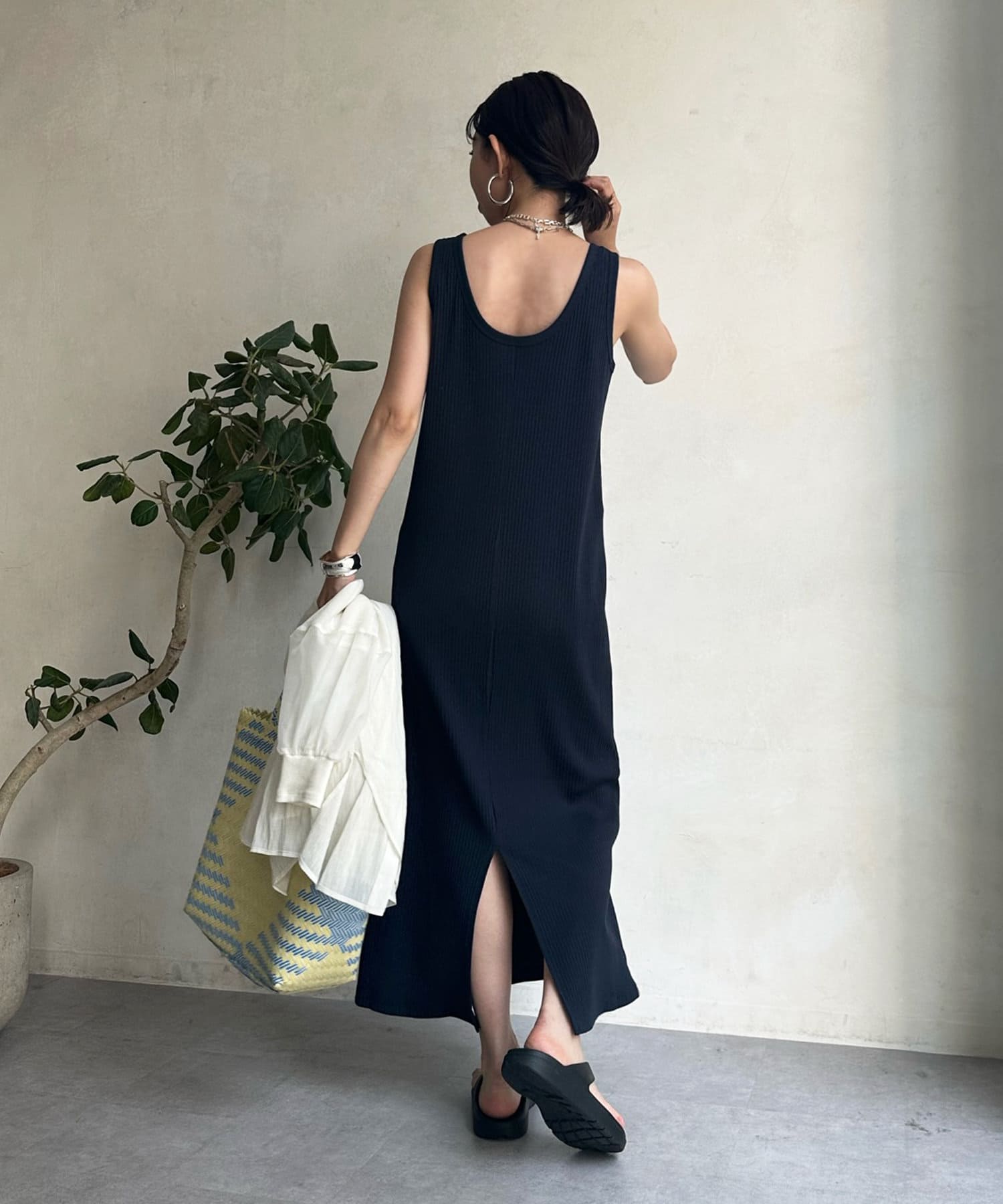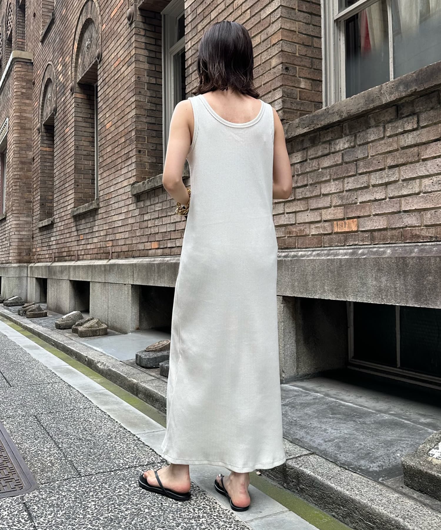 伸びやかなリブ素材で仕上げた前後2wayのタンクワンピース。
