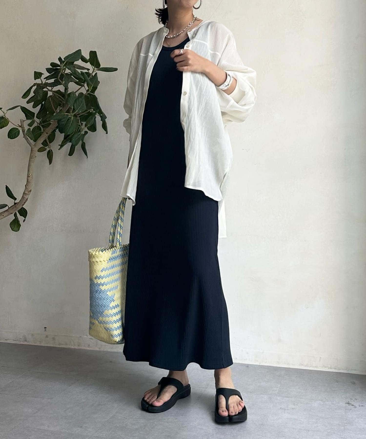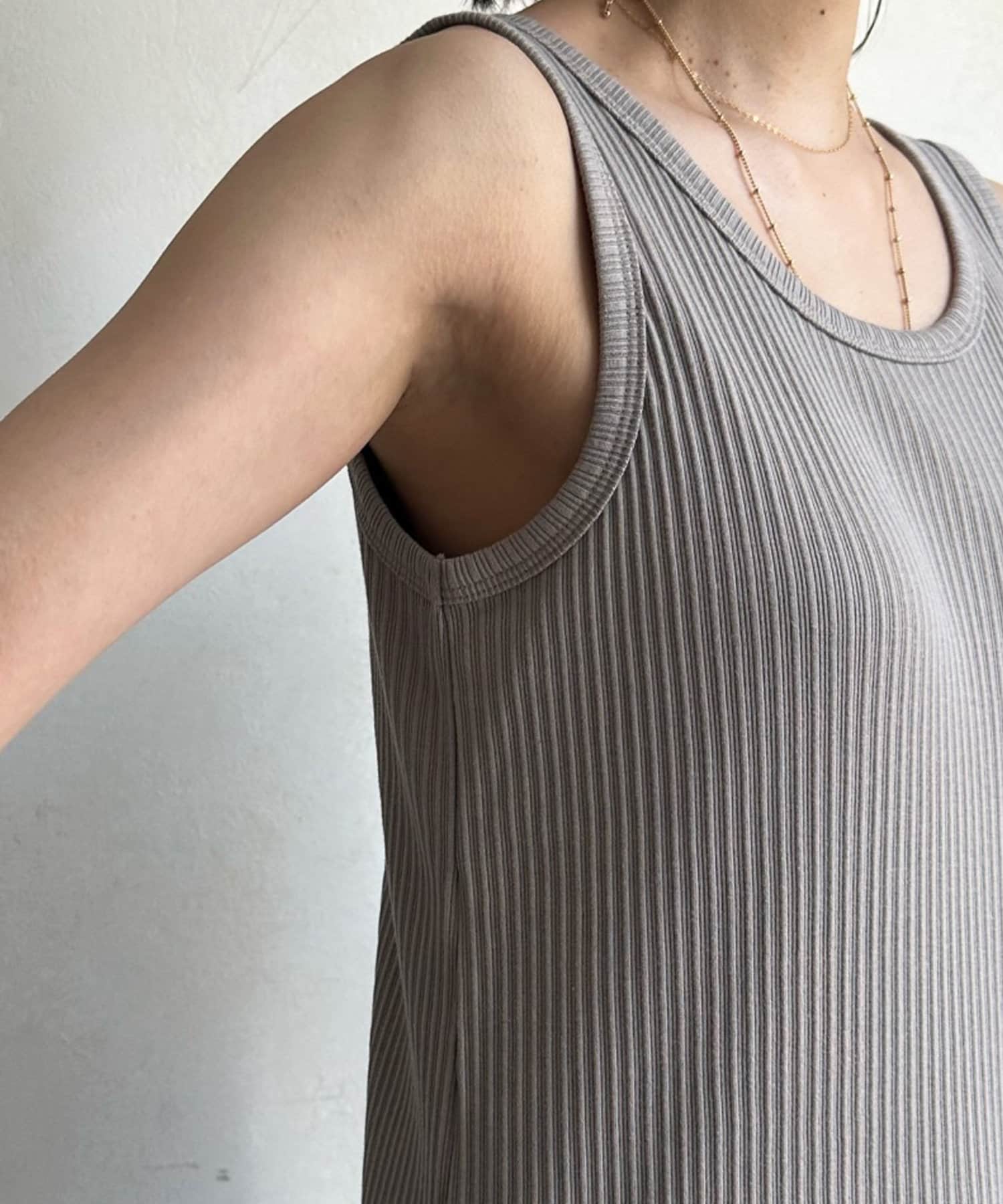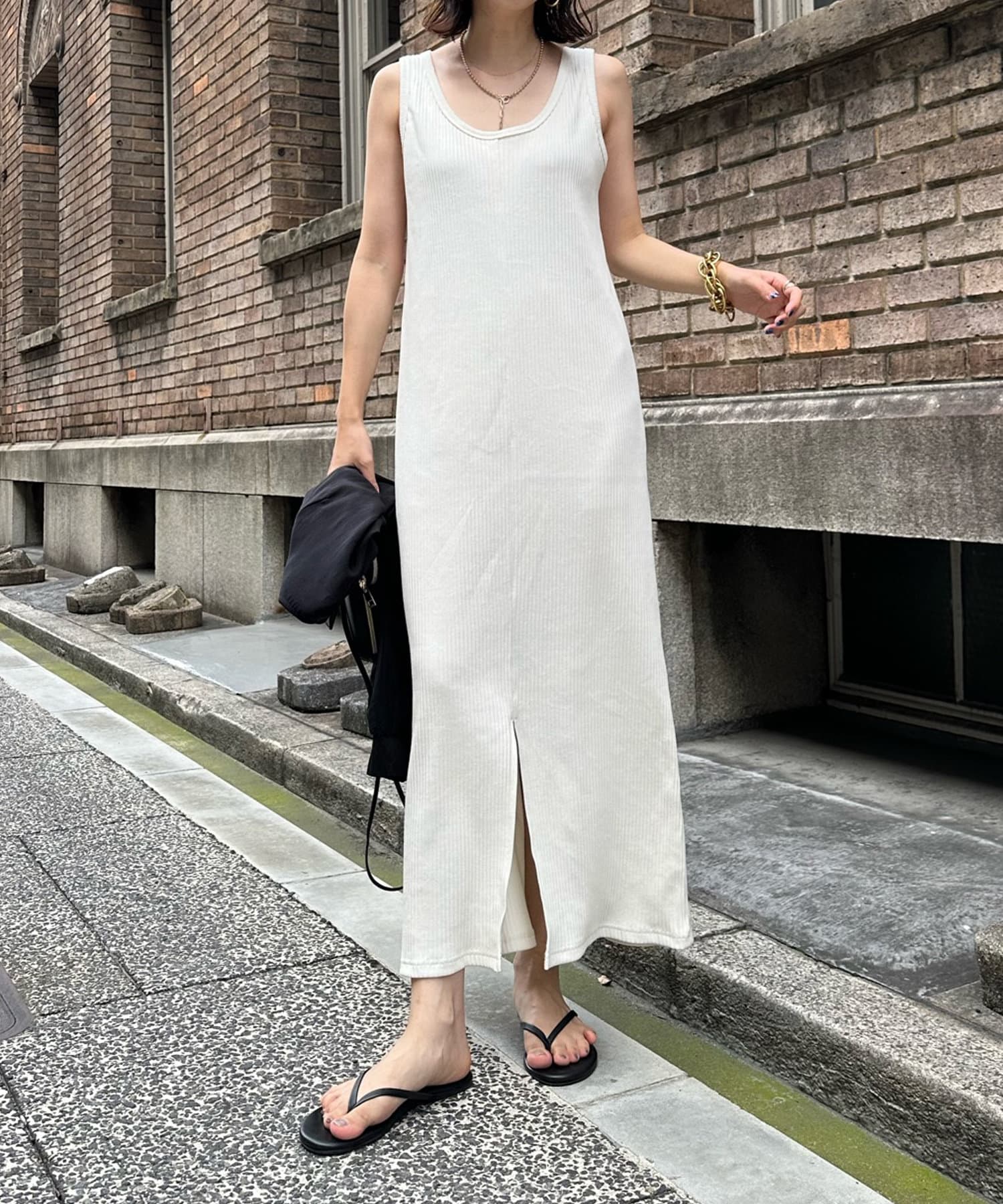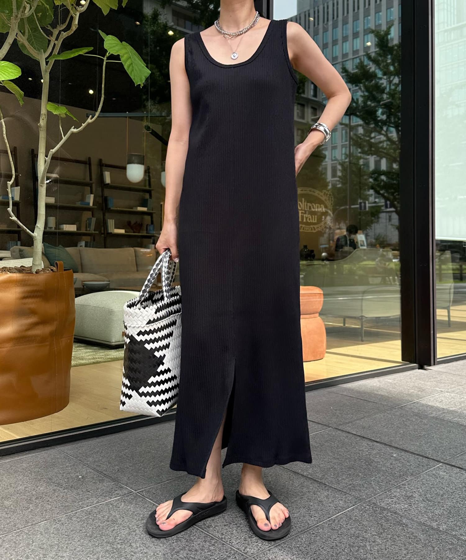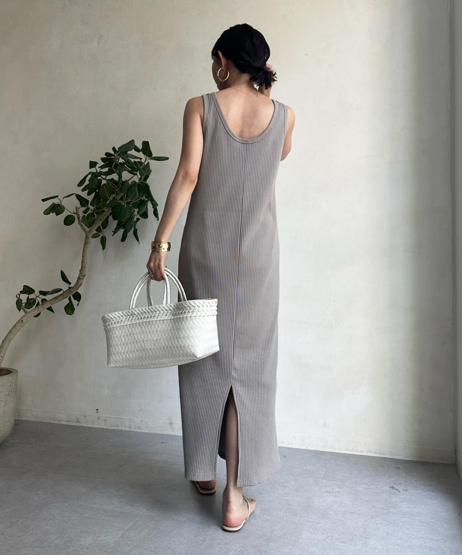 伸びやかなリブ素材で仕上げた前後2wayのタンクワンピース。