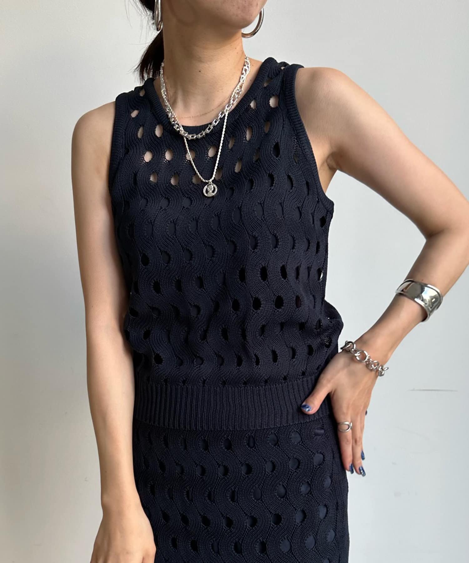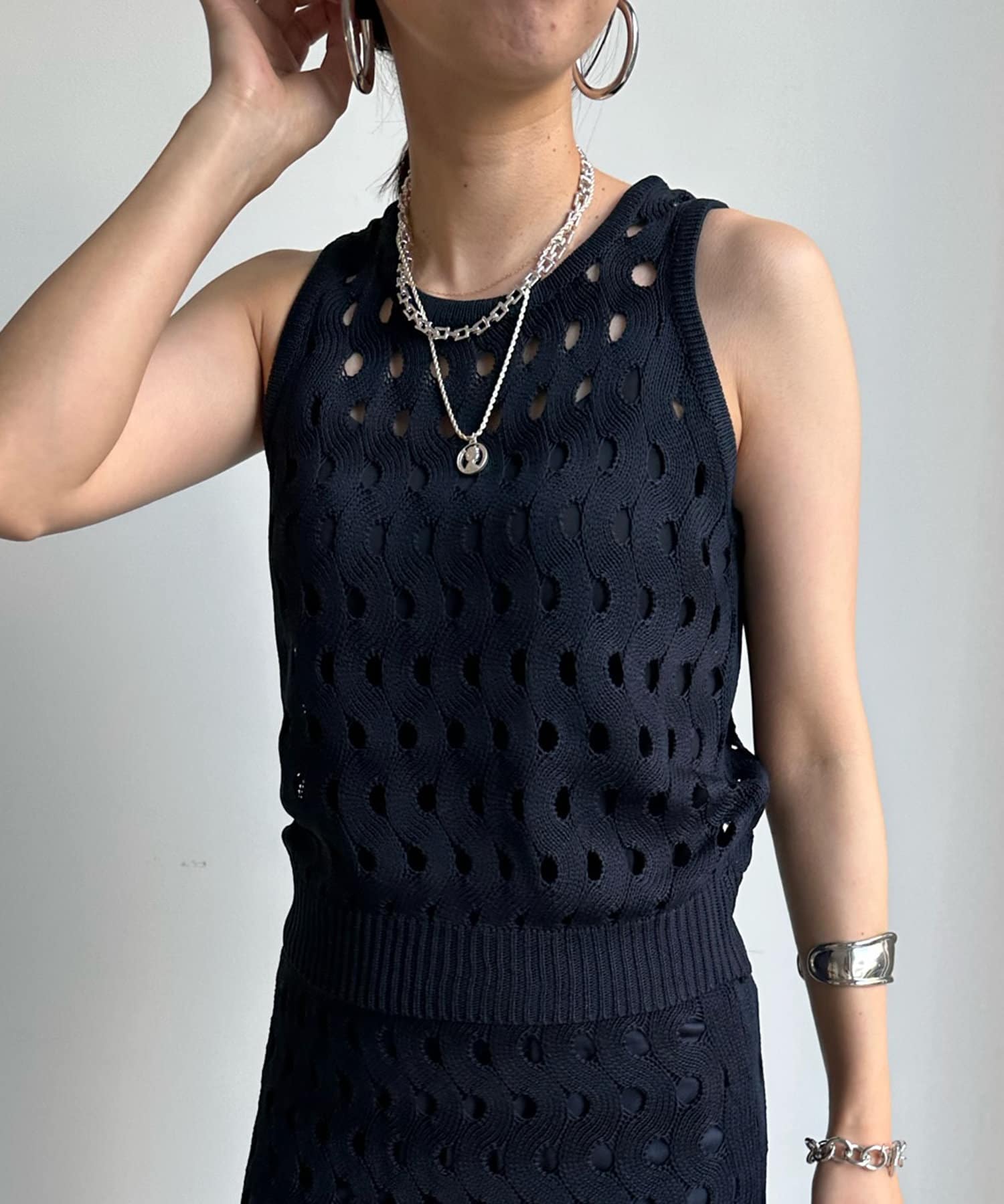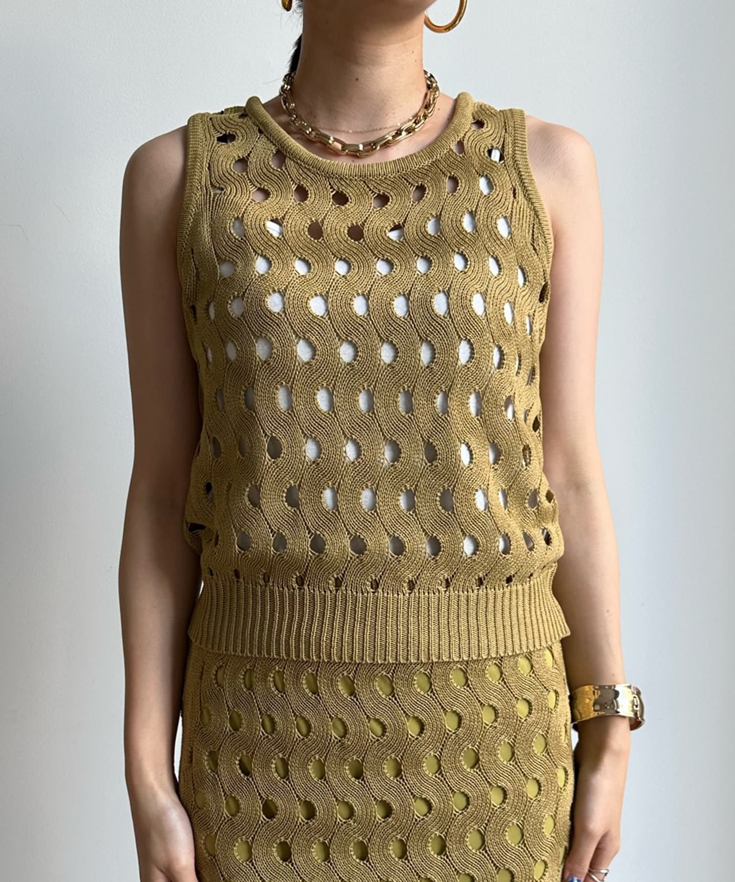 【WEB限定】ウェーブメッシュ編みセットアップ