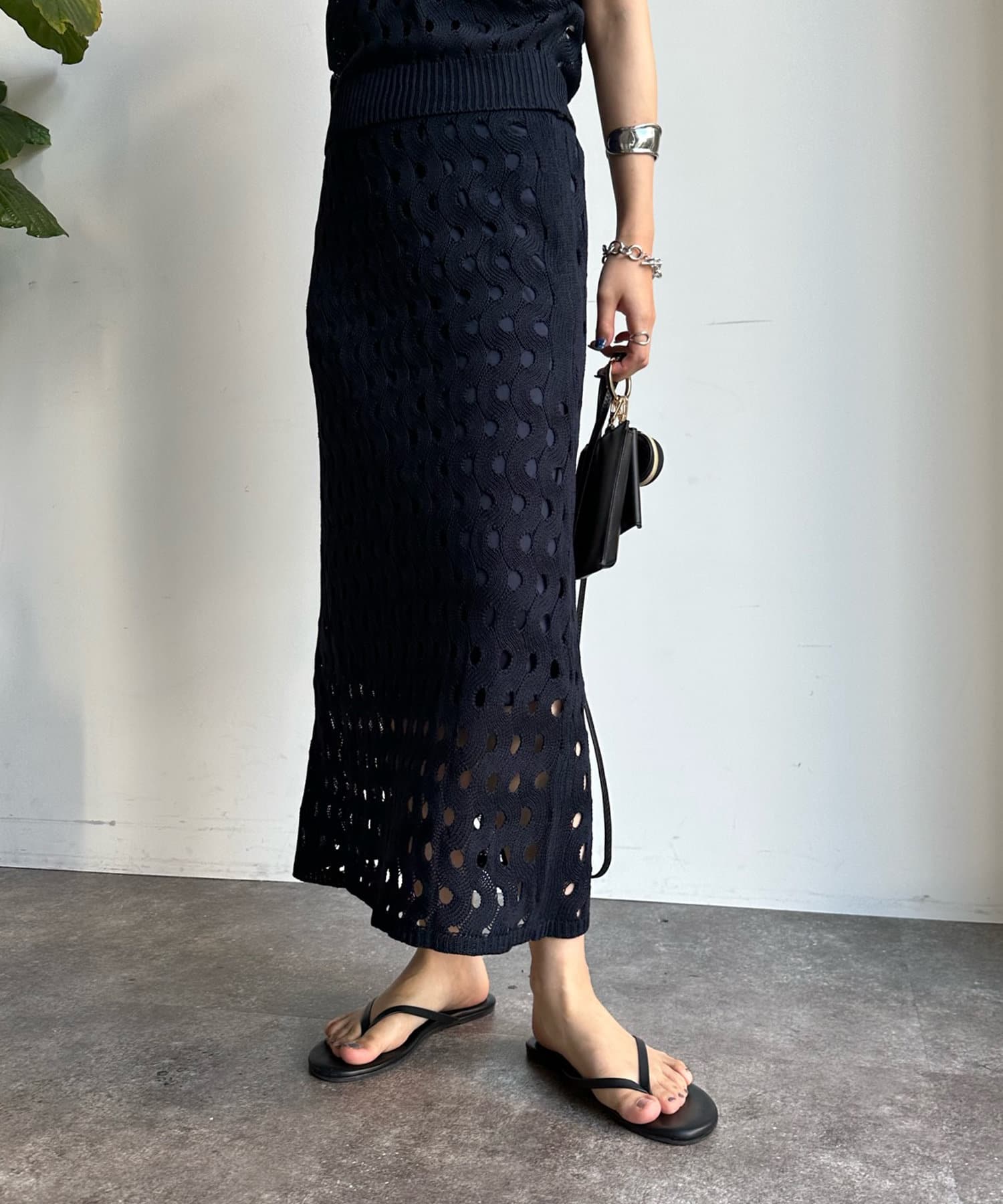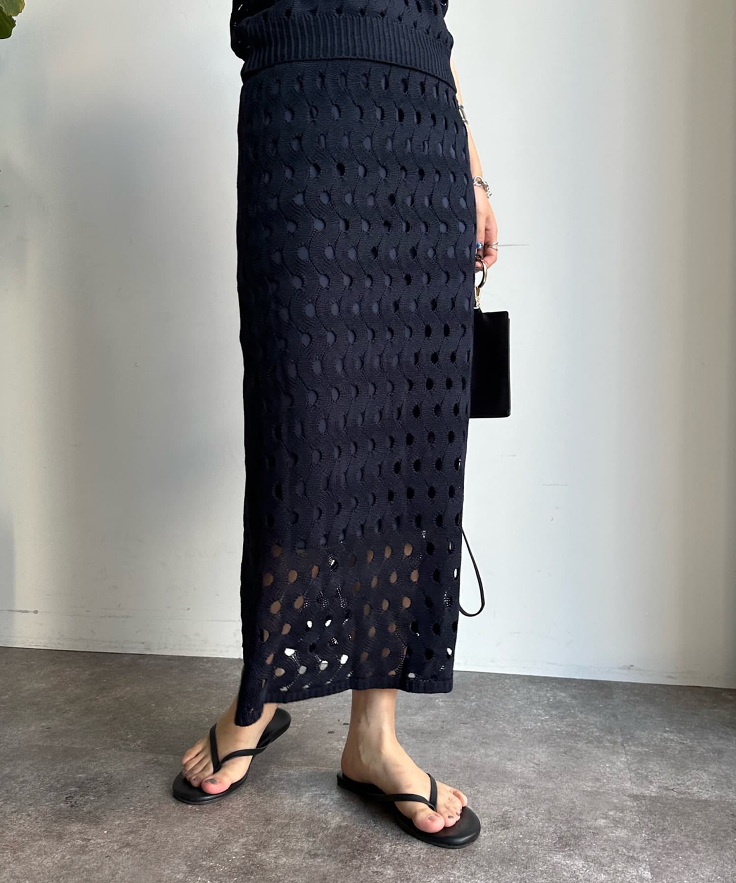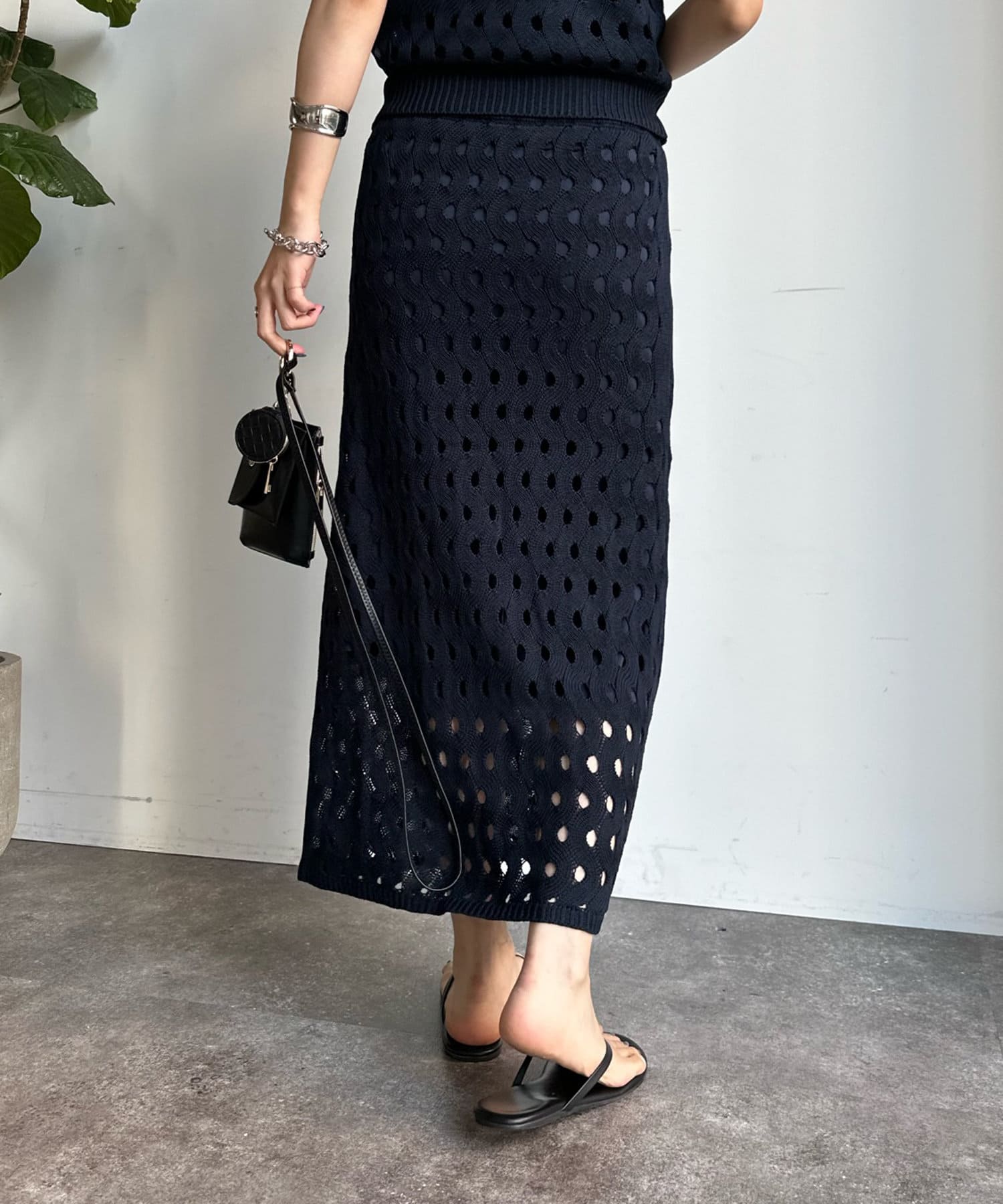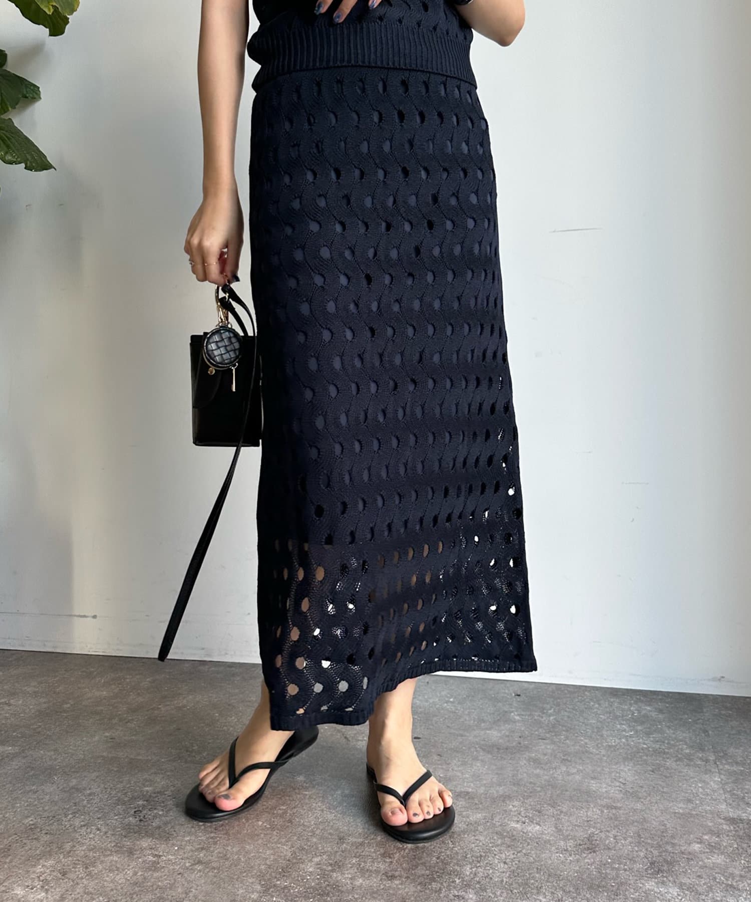 【WEB限定】ウェーブメッシュ編みセットアップ