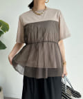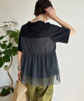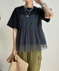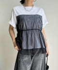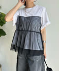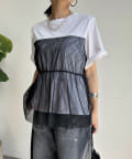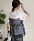 カットソーにチュールのビスチェをレイヤードしたようなデザインの1枚。
